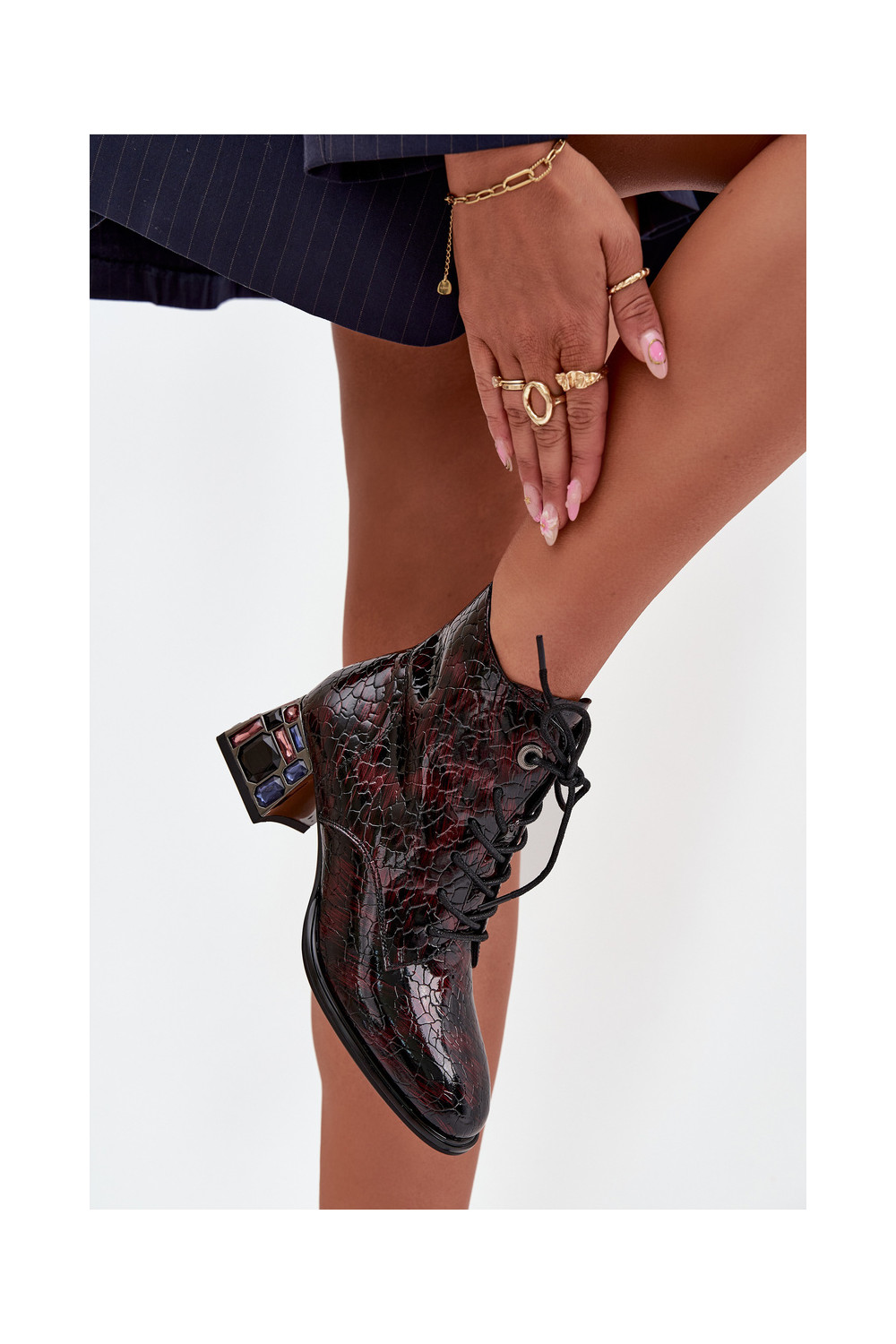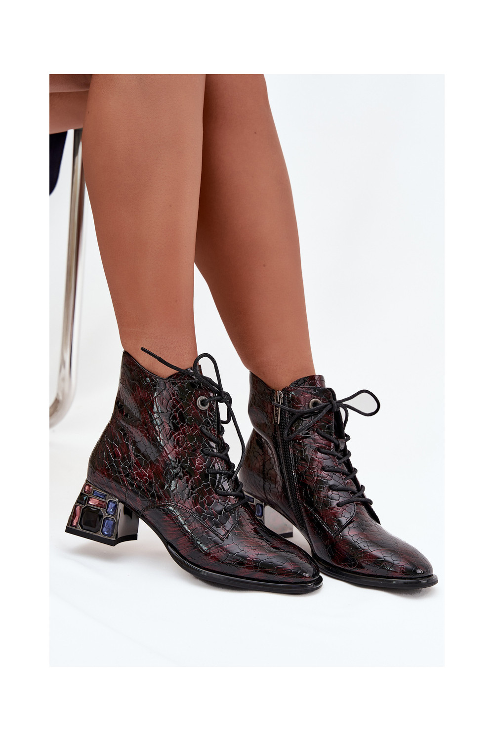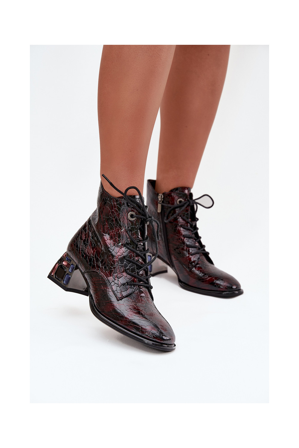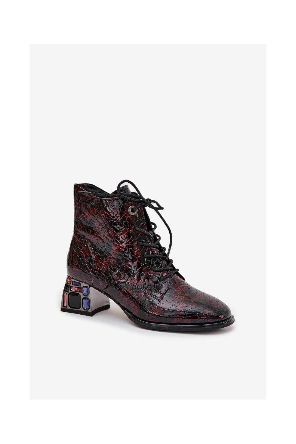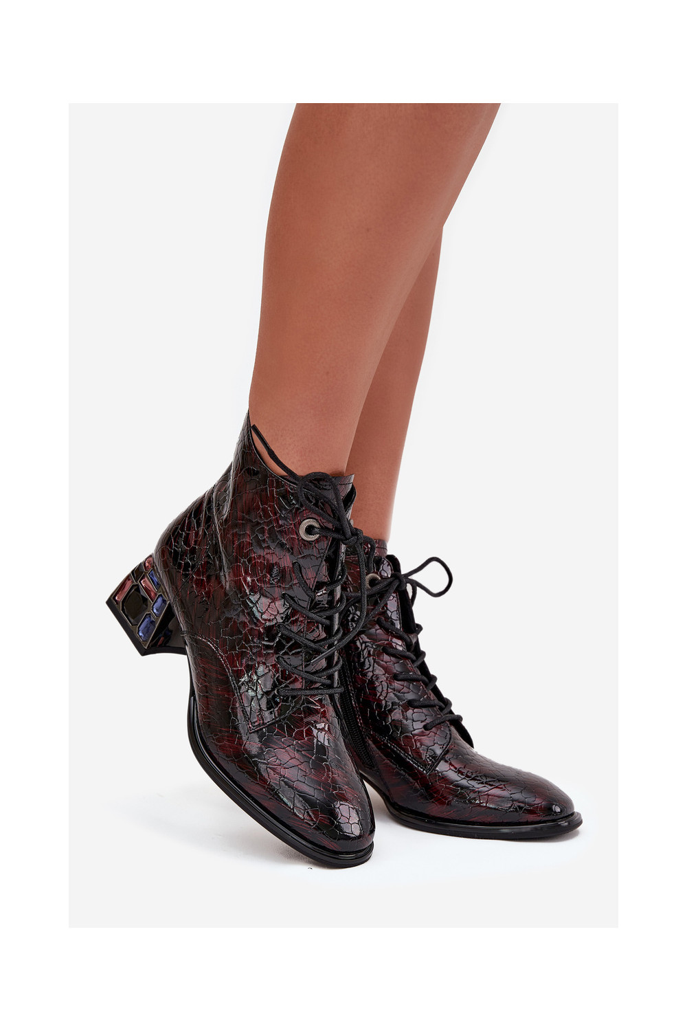 Naisterikkad saapad naturaalnahast lakiefektiga, kontsade ja säravate äärtega Artiker 57C0130 bordoopunased