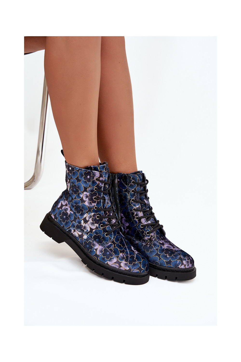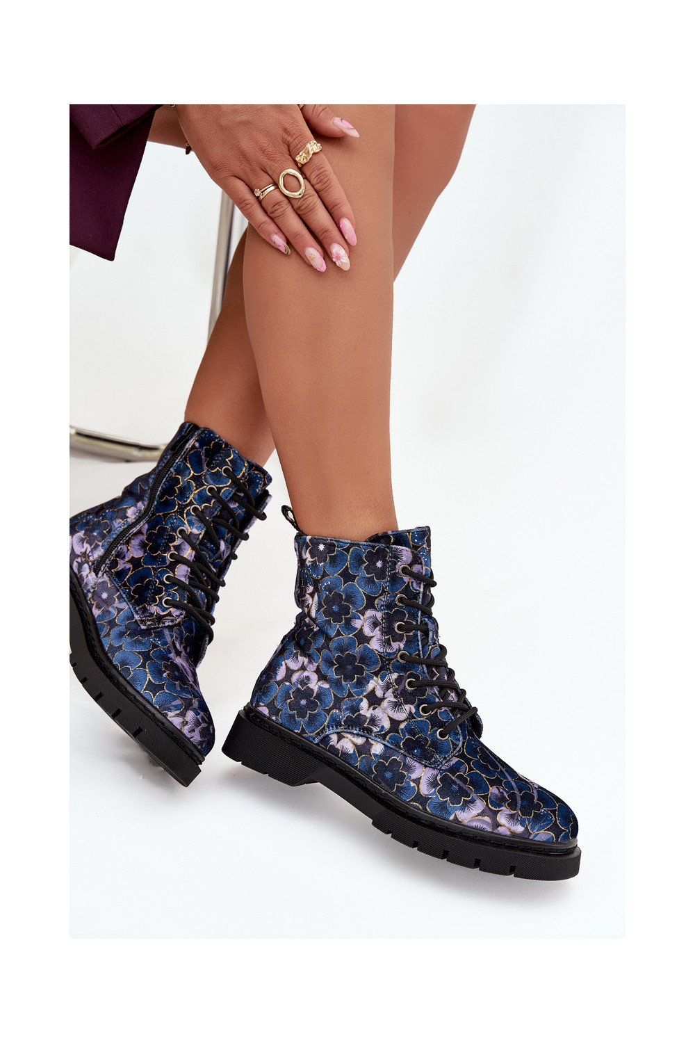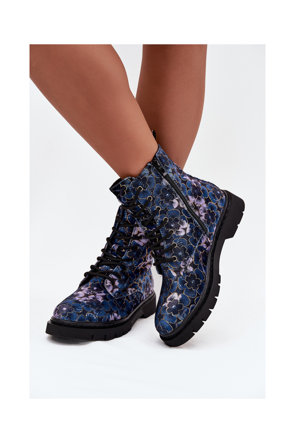 Naiste sooja voodriga saapad lilledega Artiker 57C1052 tumesinise värvi