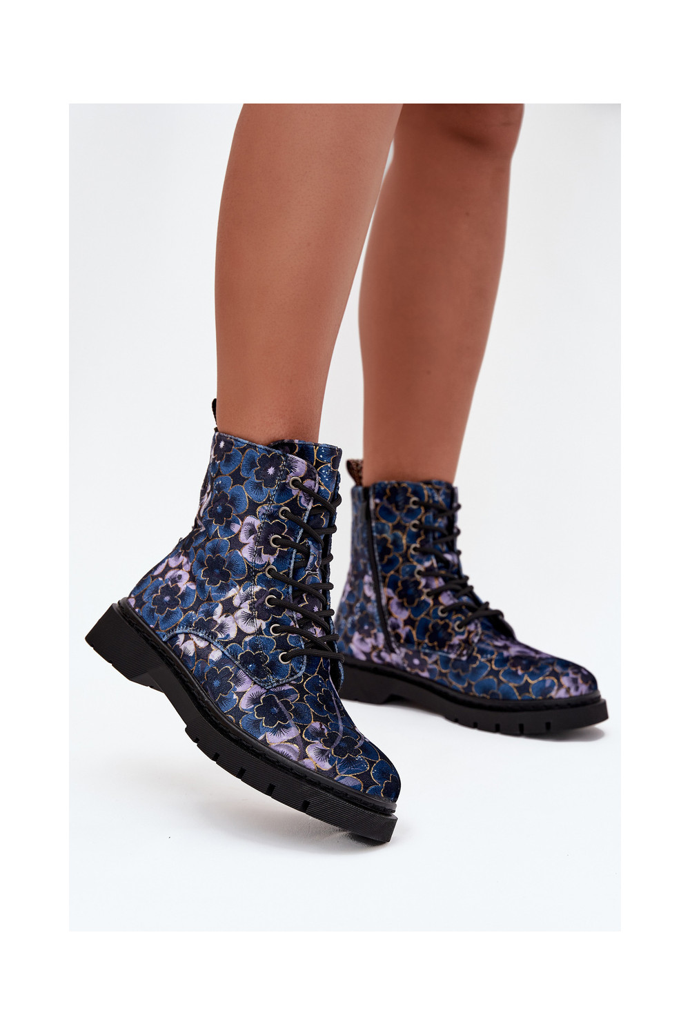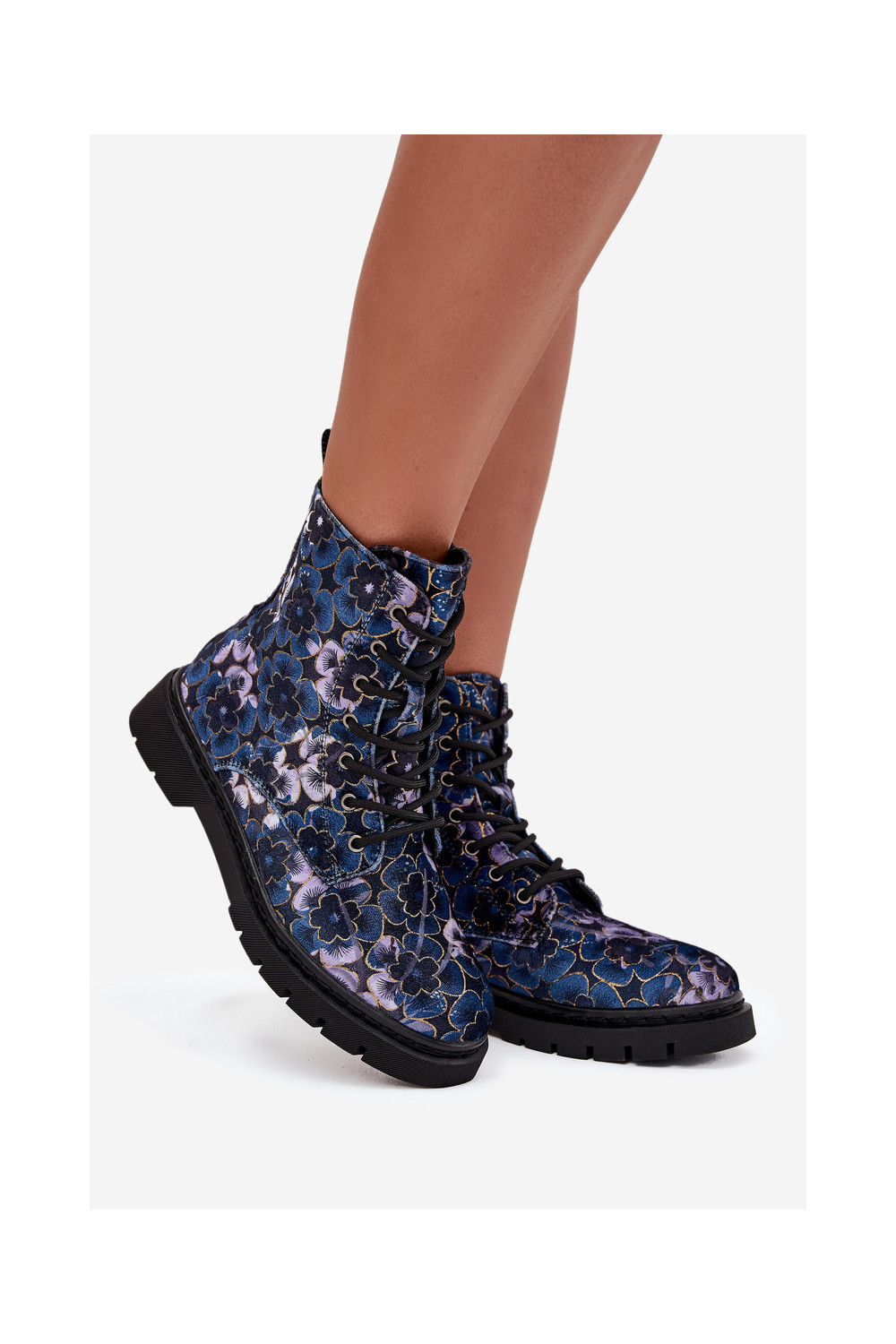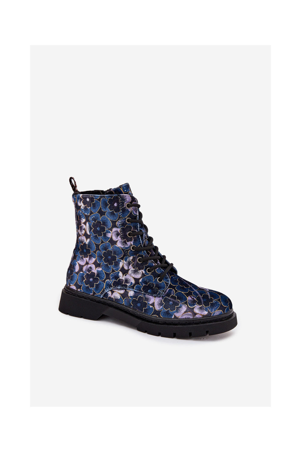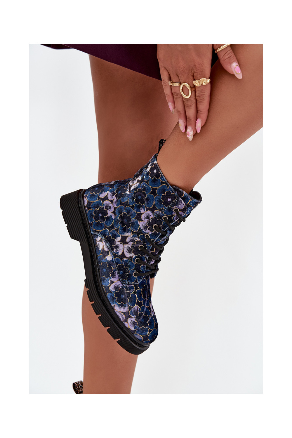 Naiste sooja voodriga saapad lilledega Artiker 57C1052 tumesinise värvi