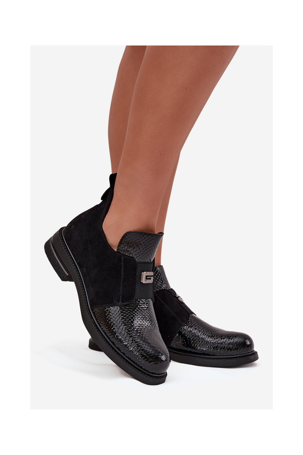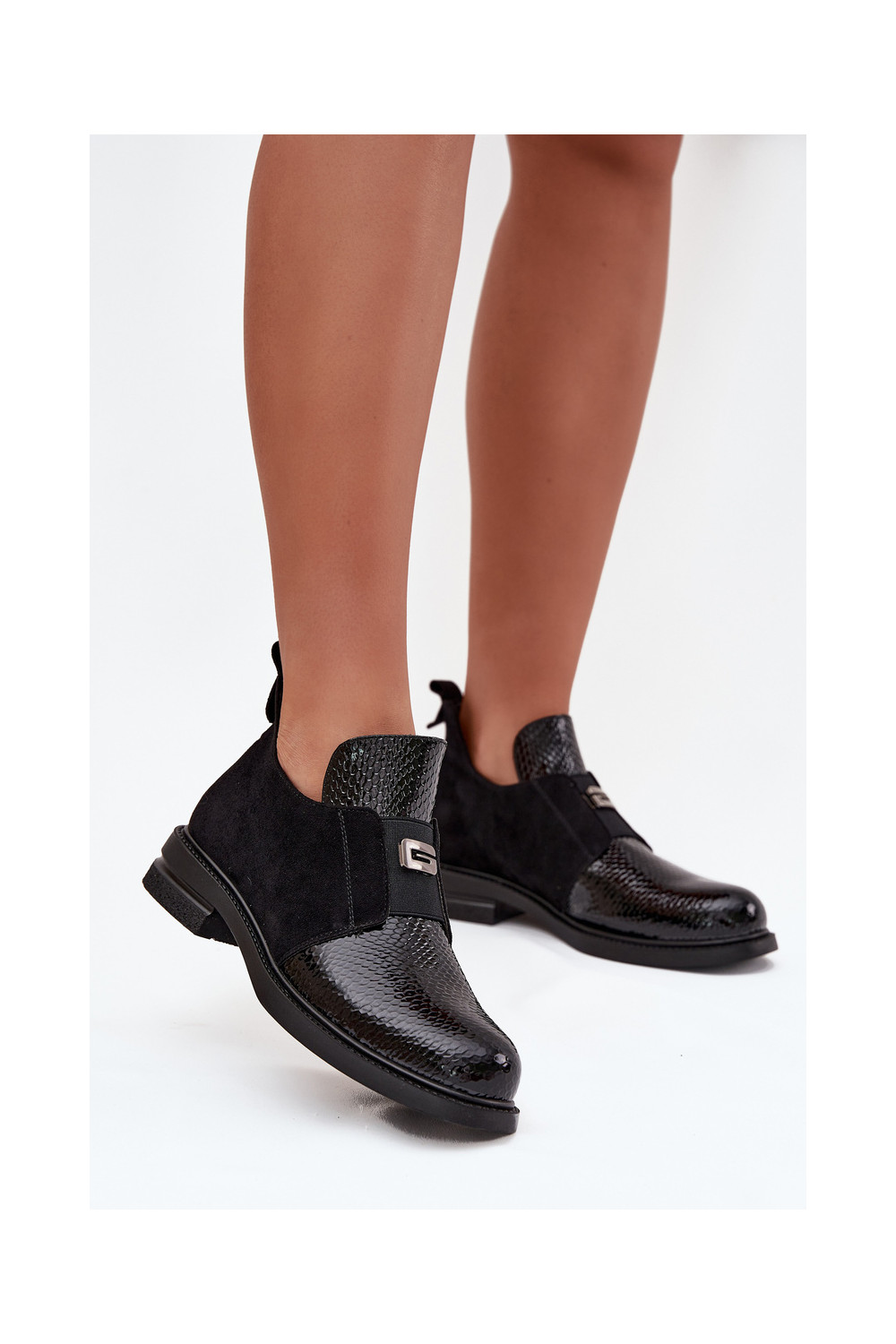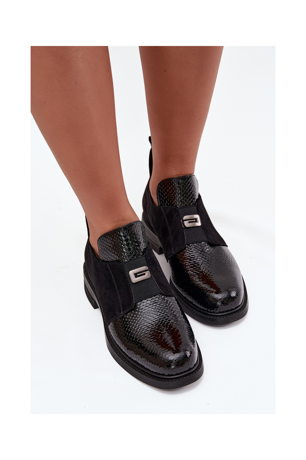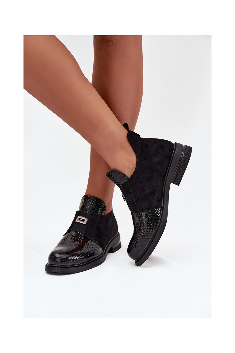 Sooja voodriga naiste madalad kingad lakiefektiga ja kontsadega Vinceza 58560 musta värvi