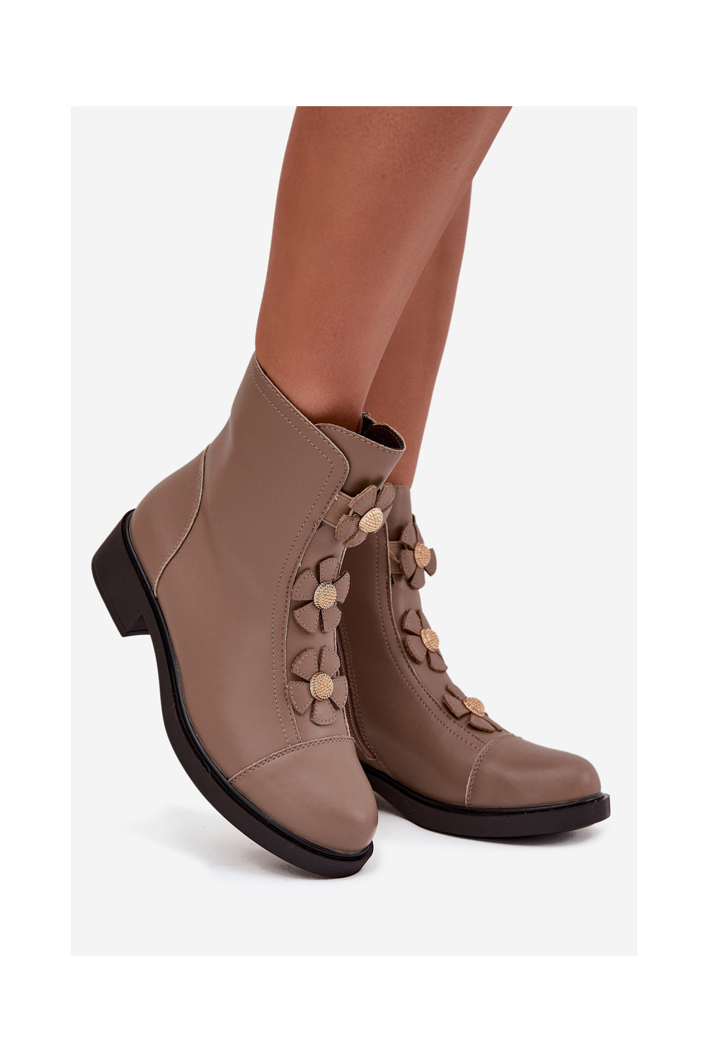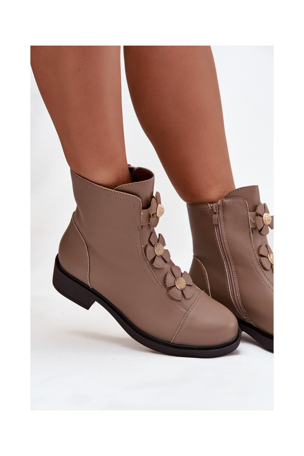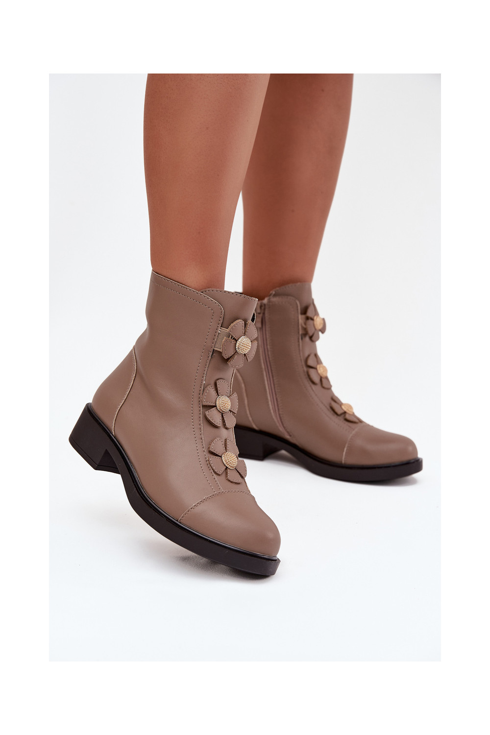 Nahksoojad naiste saapad kaunite lillemotiividega Belverine beeži värvi