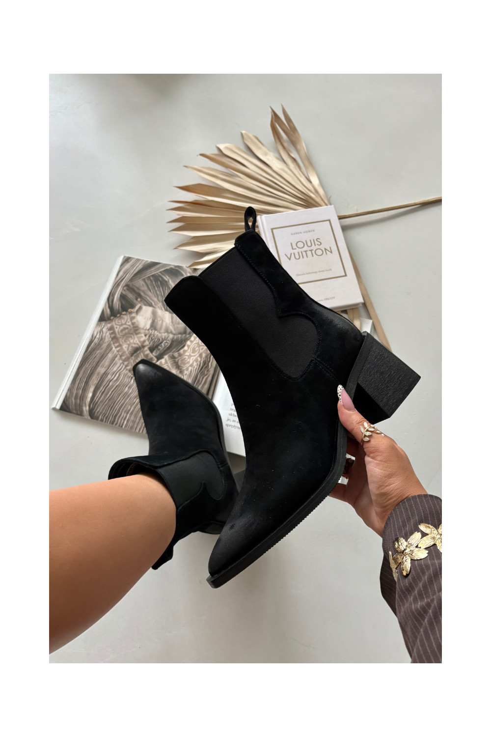 Nahk-zomšist saapad sooja voodriga seest Artiker 57C0049 musta värvi