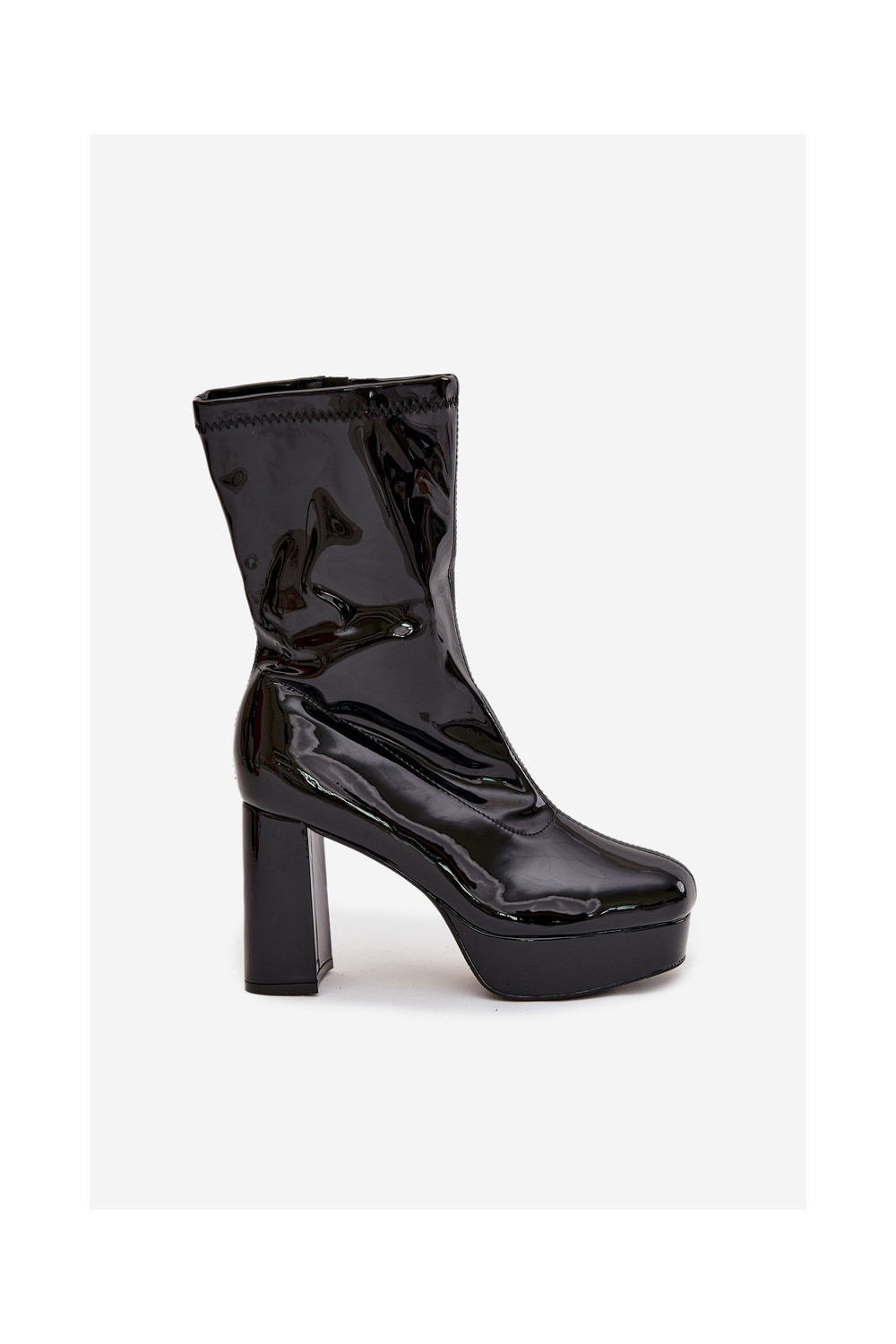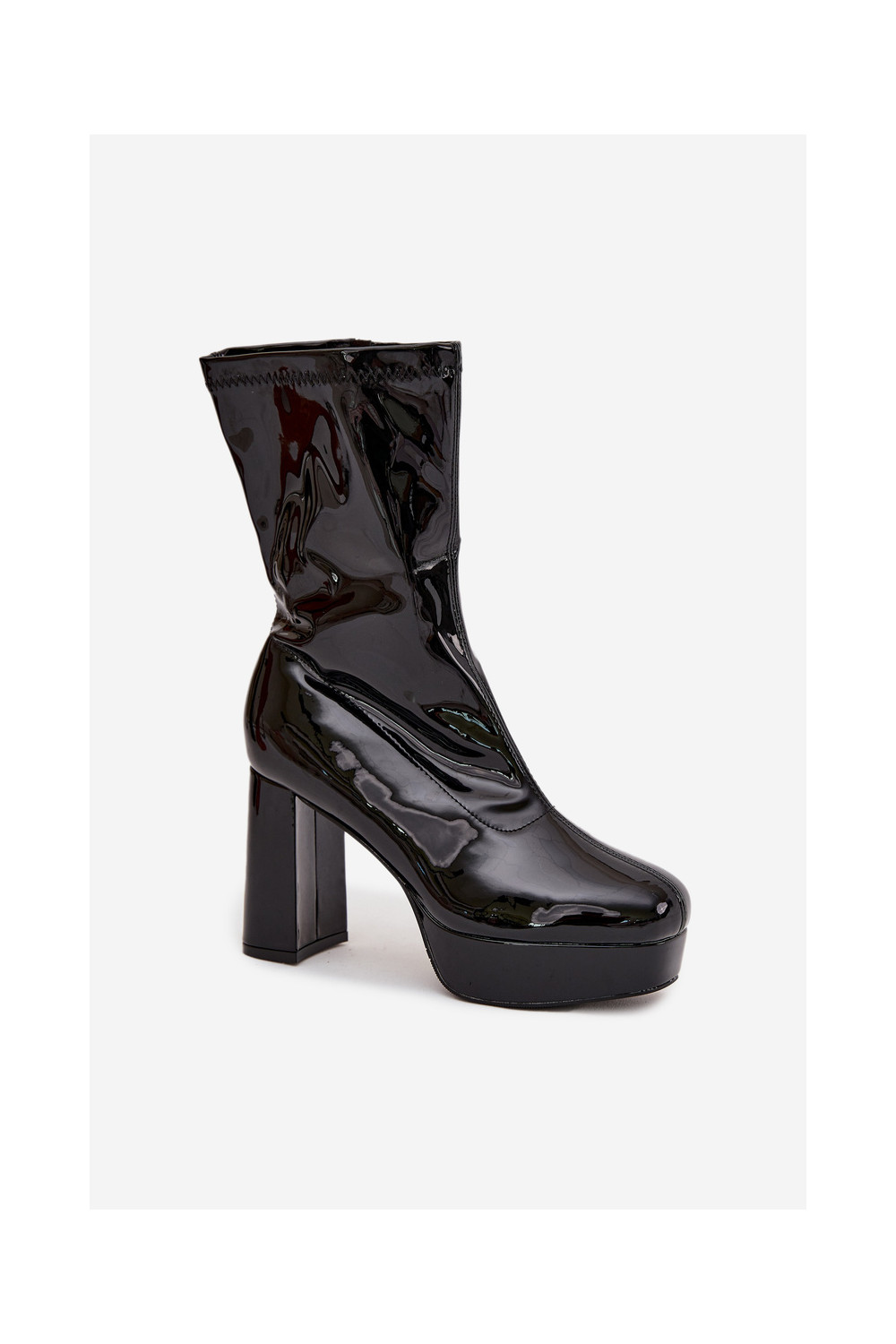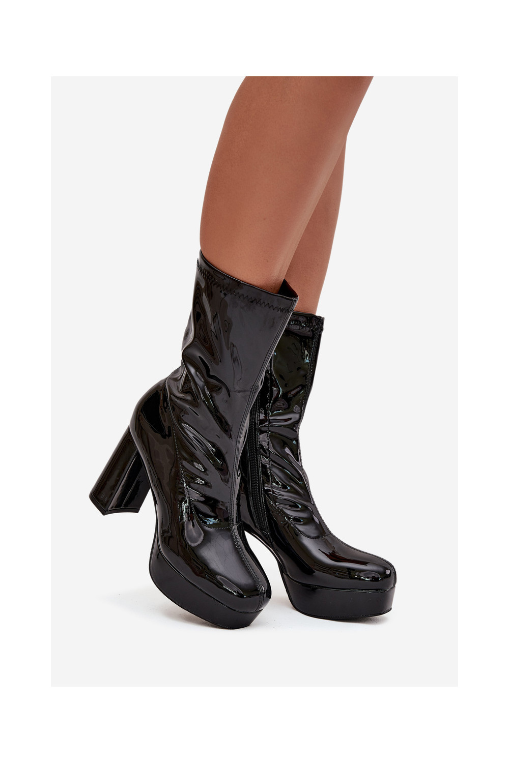 Calvessa lakk-kunstnahast naiste saapad platvormiga ja paksu kontsaga musta värvi