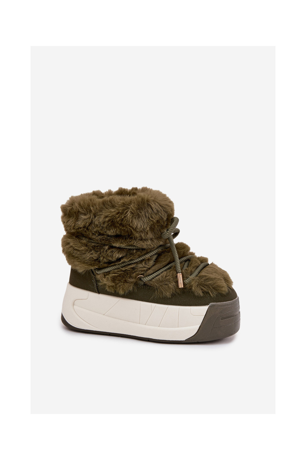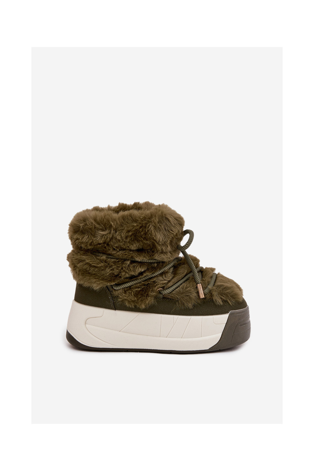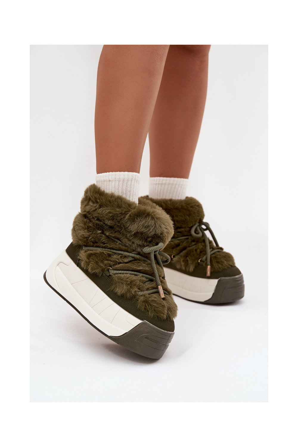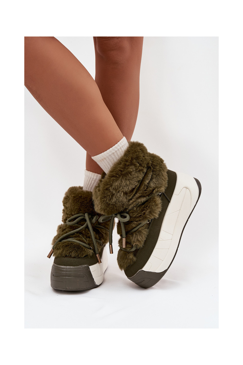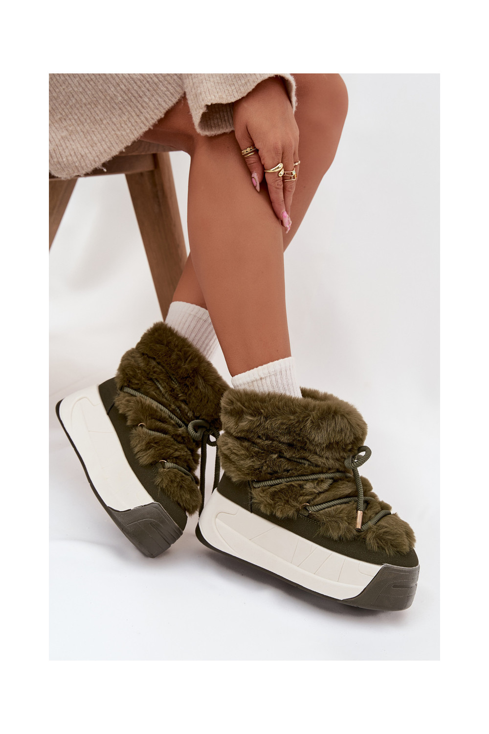 Kalivira naiste lumesaapad platvormiga, stiilsete detailidega ja karvase voodriga khaki värvi