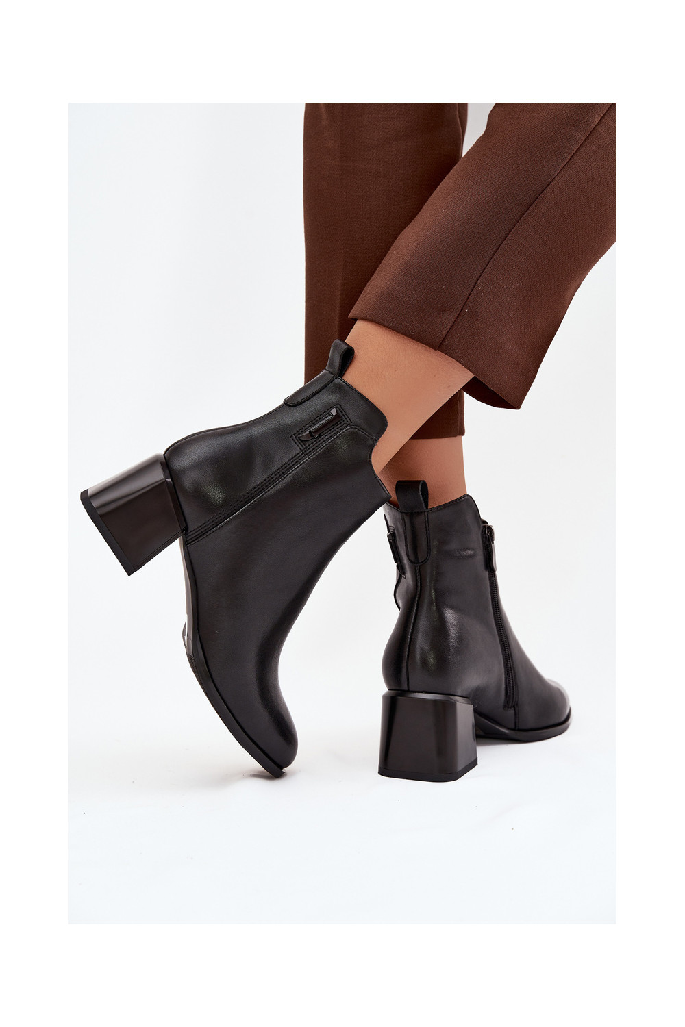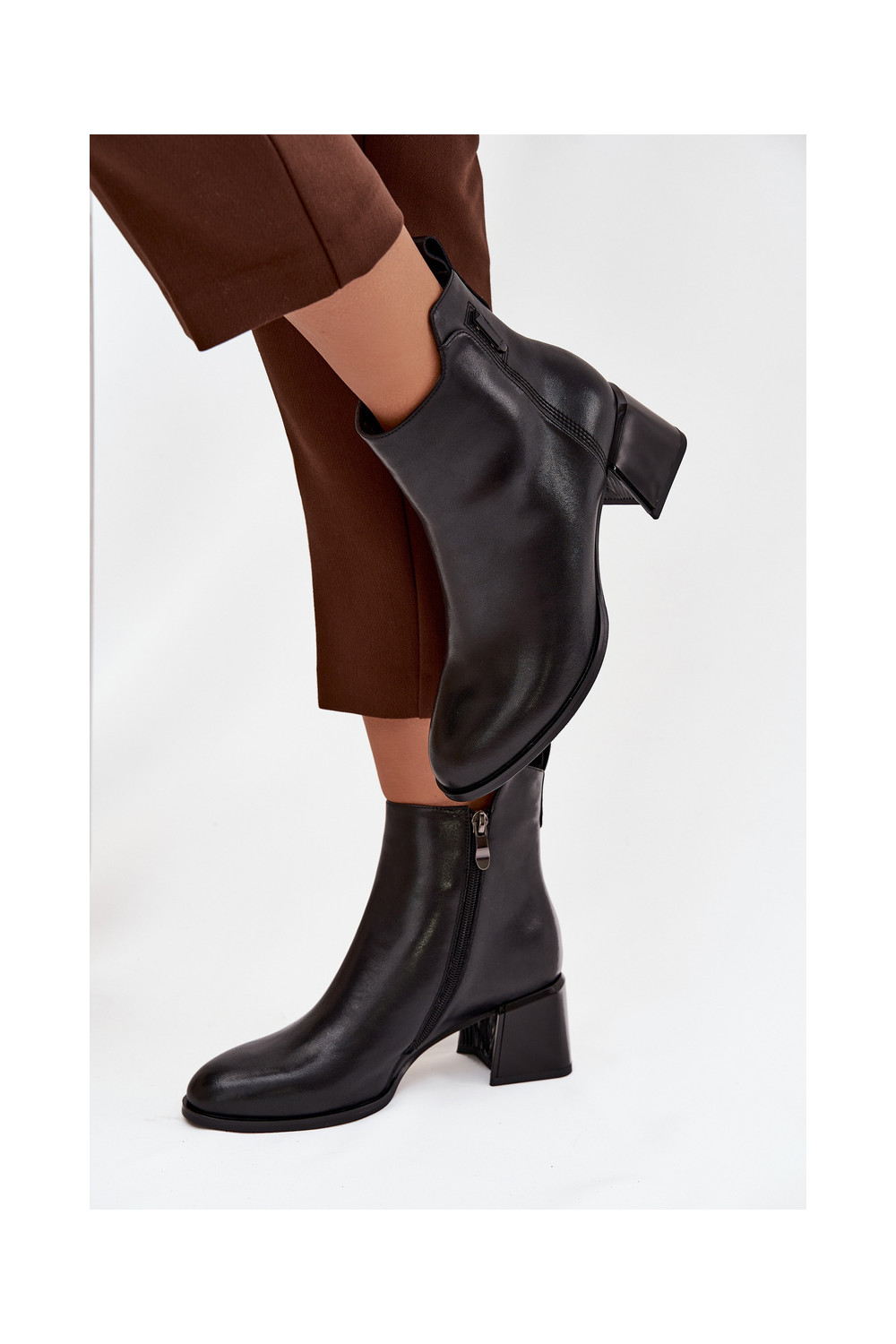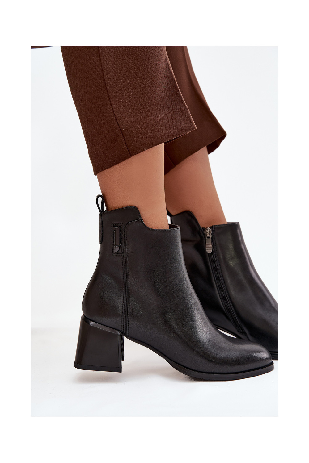 Nolivra sooja voodriga naiste naturaalsest nahast saapad väikeste kontsadega musta värvi