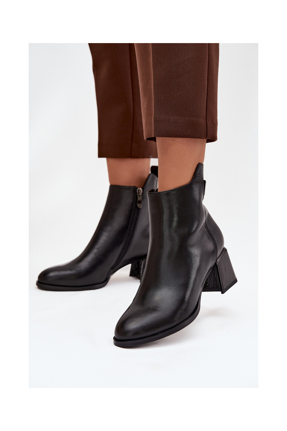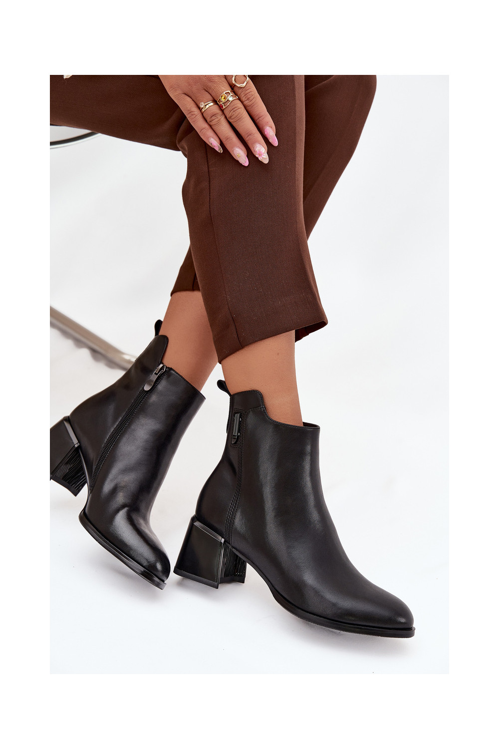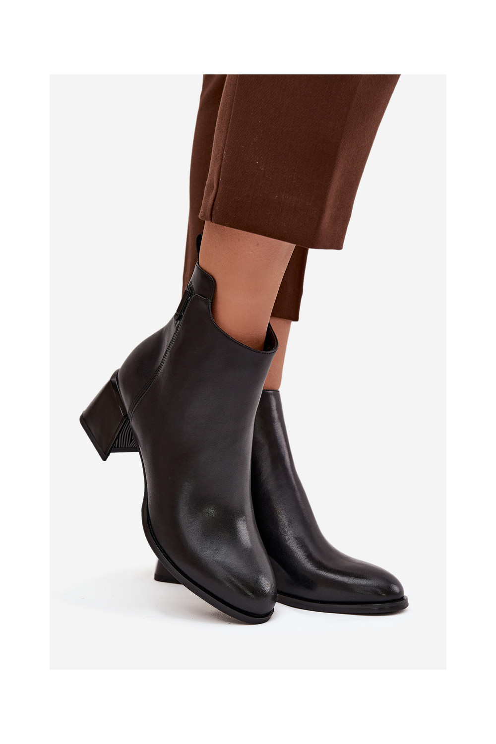 Nolivra sooja voodriga naiste naturaalsest nahast saapad väikeste kontsadega musta värvi