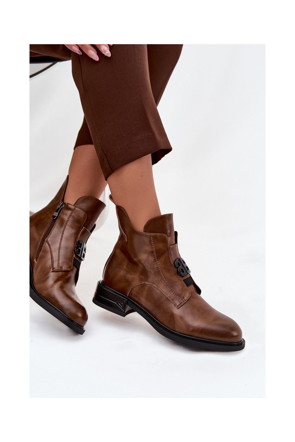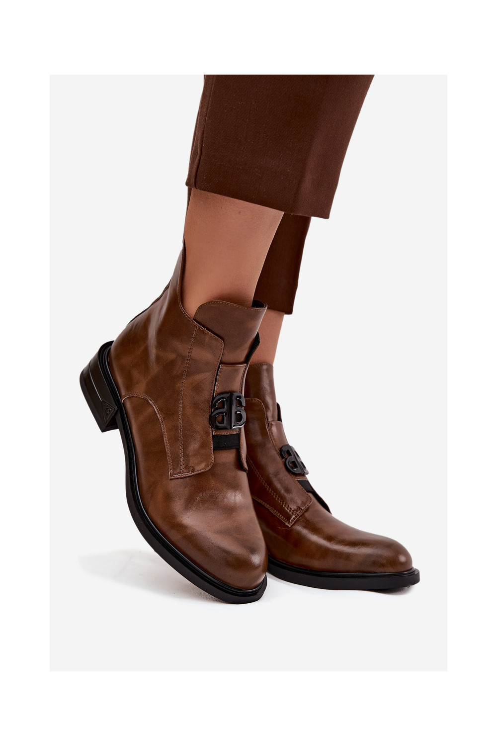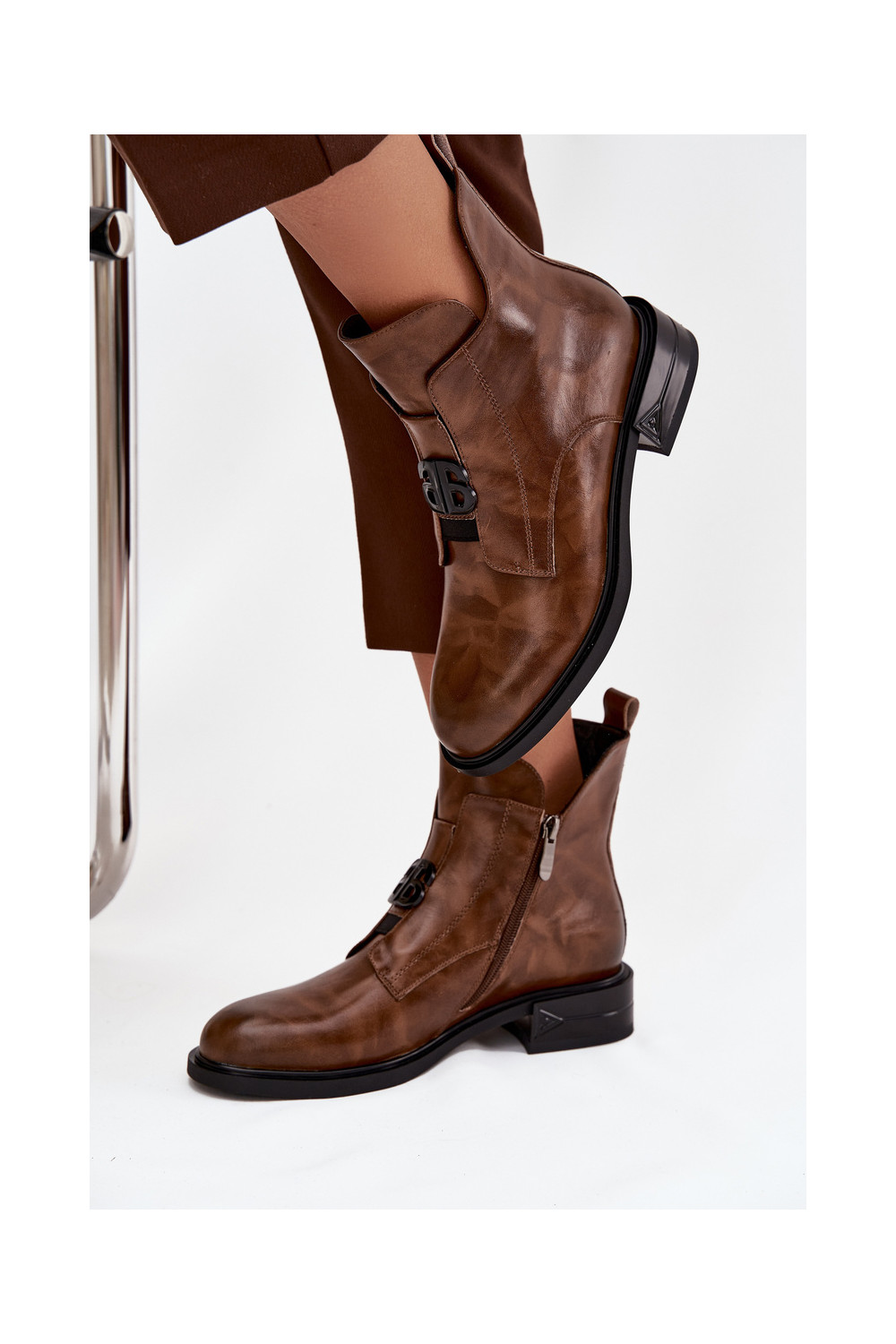 Briselda sooja voodriga nahast naiste saapad kaunistatud detailidega pruuni värvi