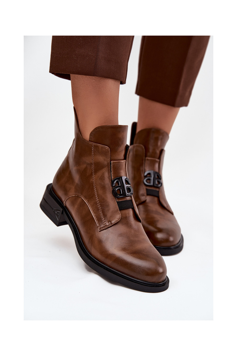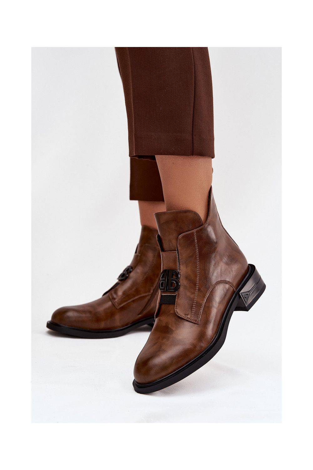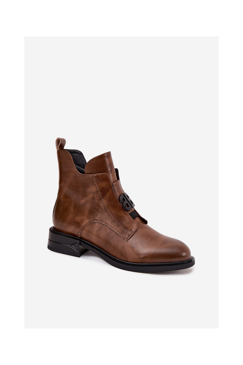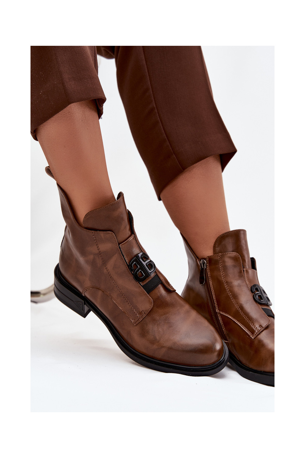 Briselda sooja voodriga nahast naiste saapad kaunistatud detailidega pruuni värvi
