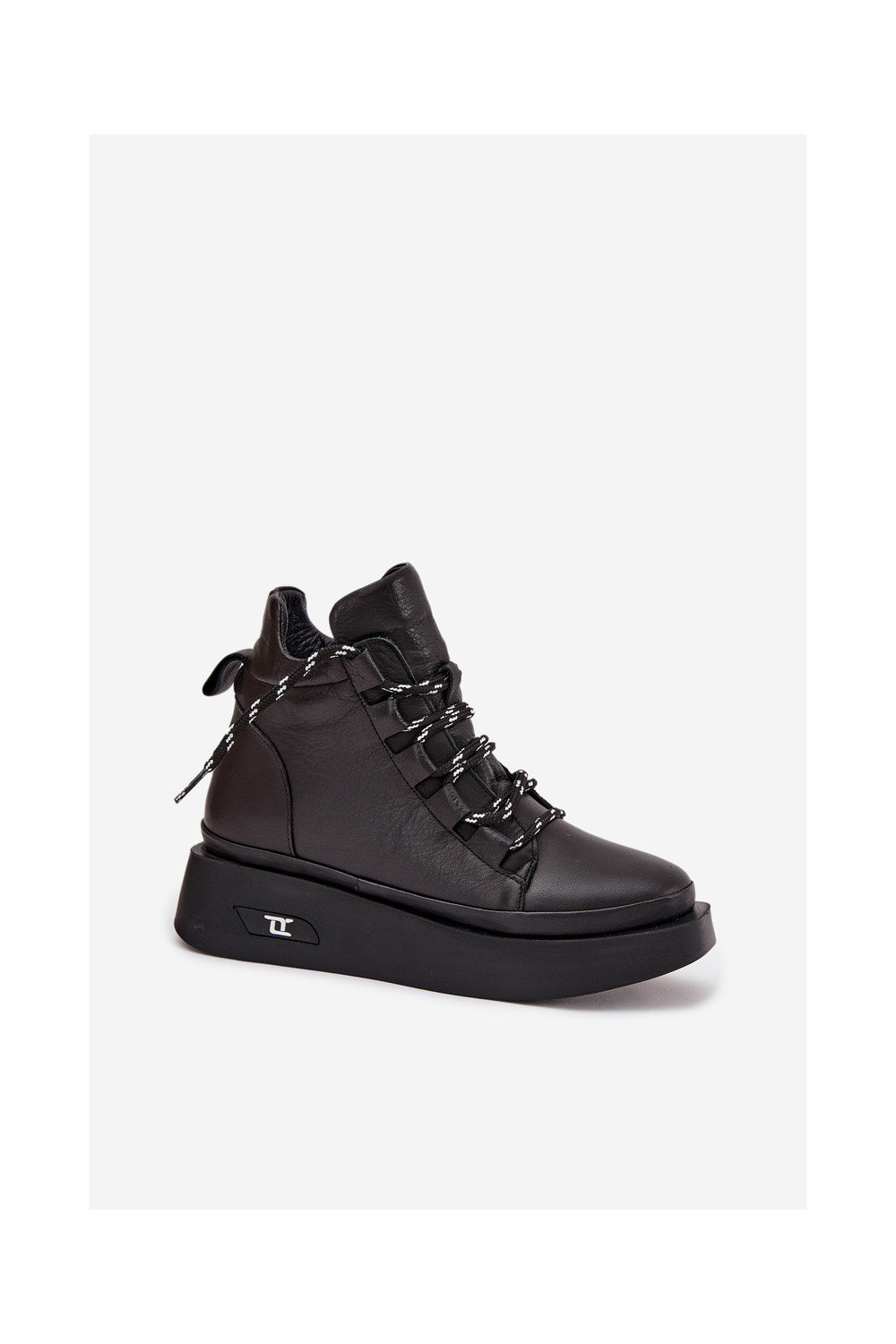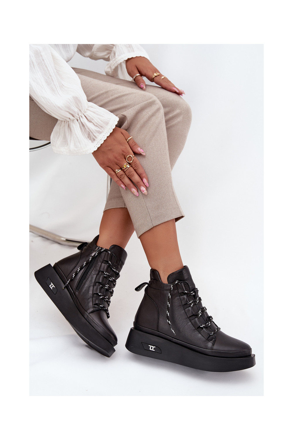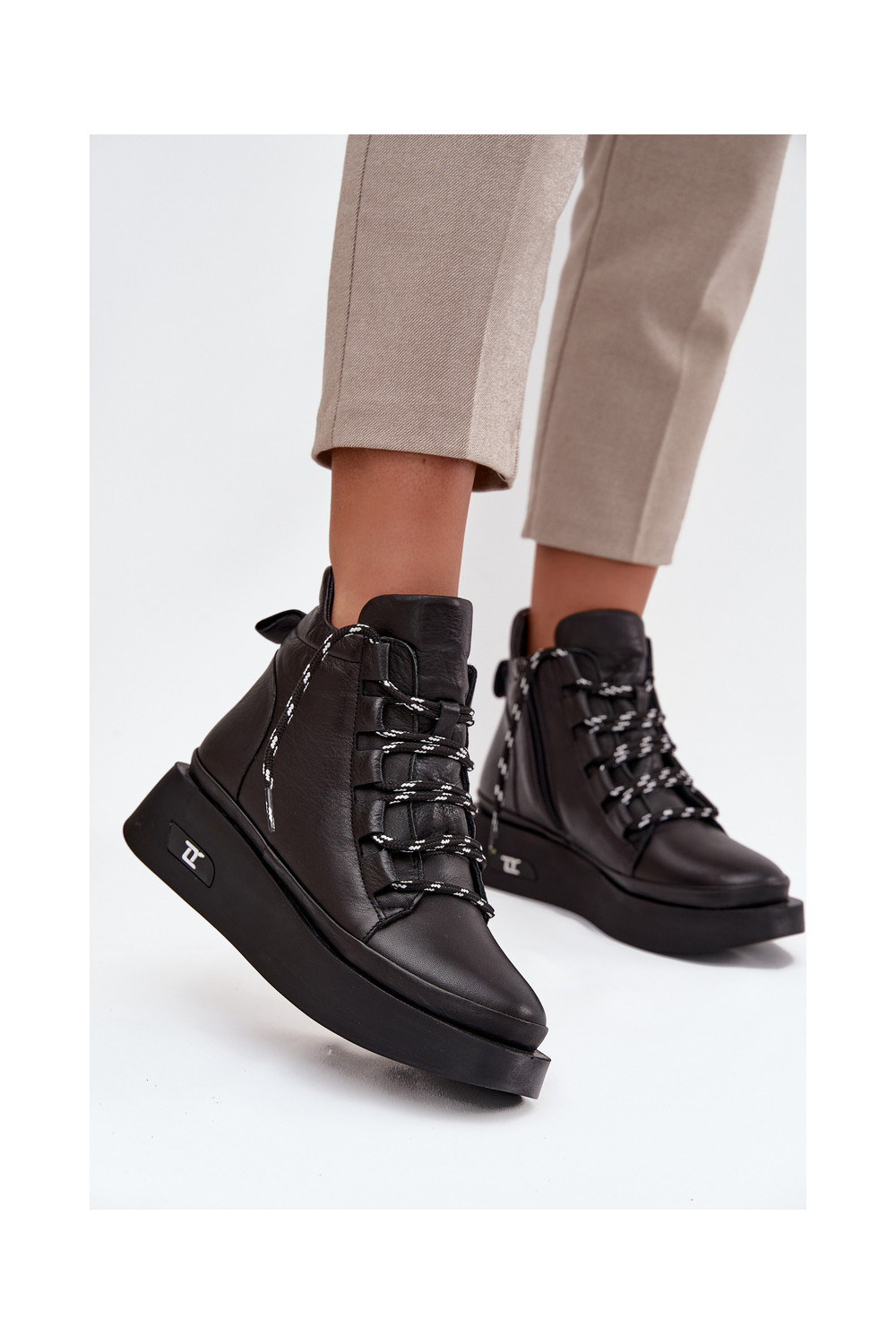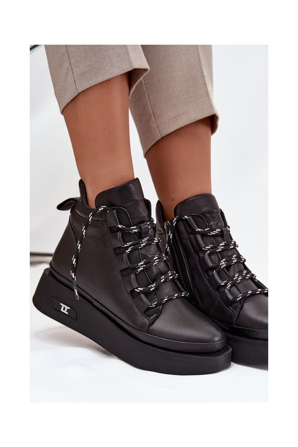 Nahast naiste saapad platvormiga, soojustatud, Artiker 55C0809 musta värvi