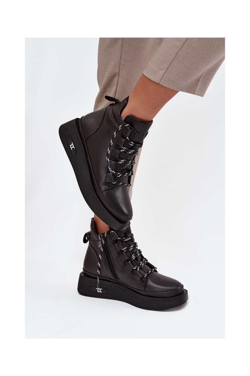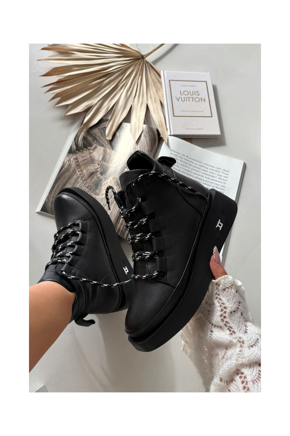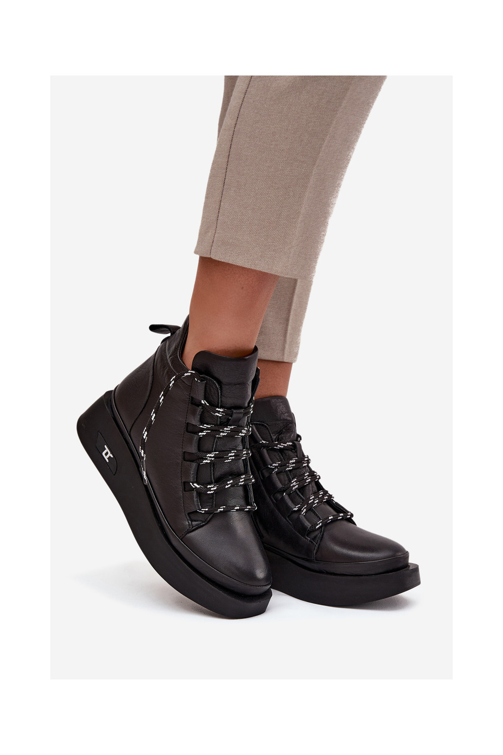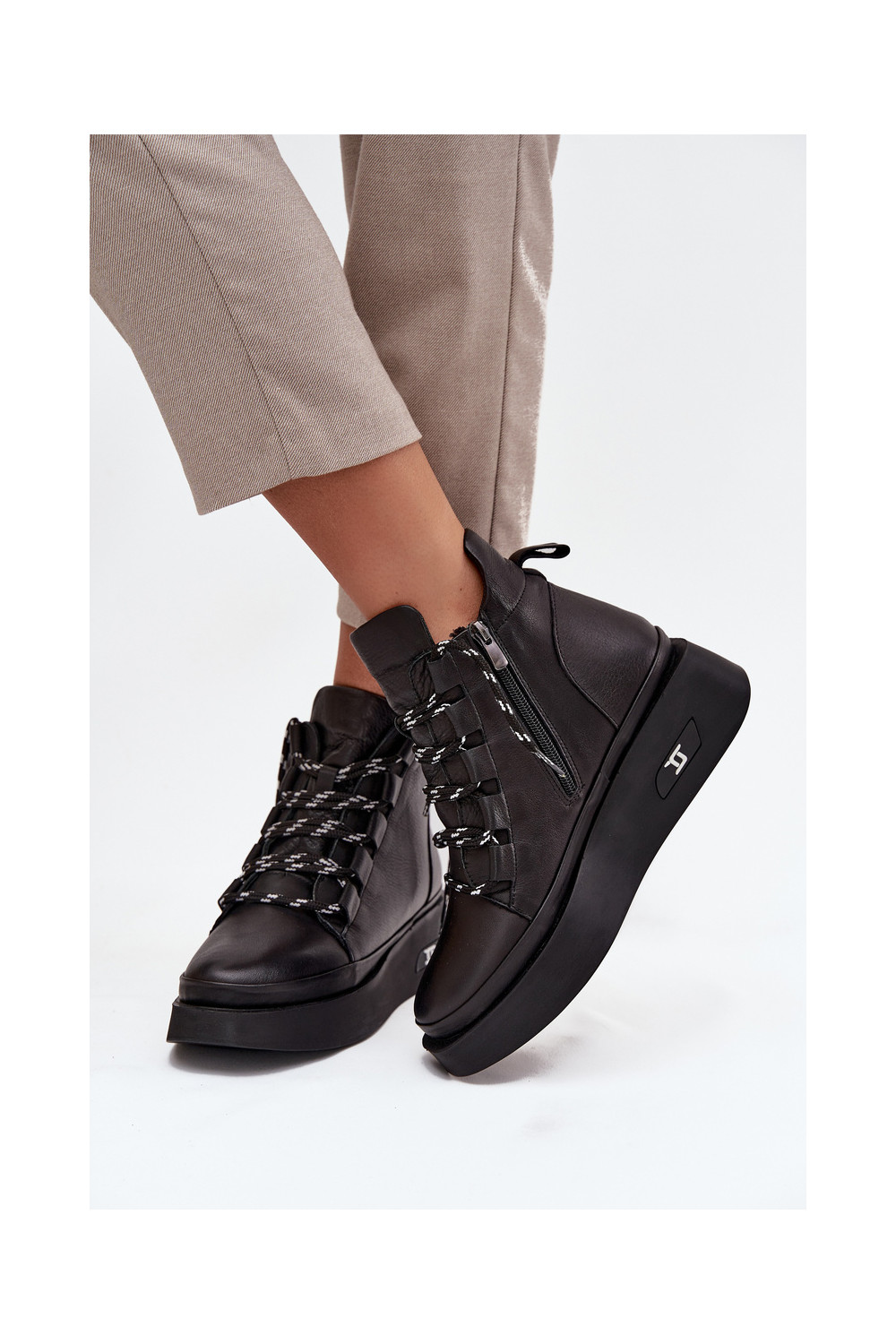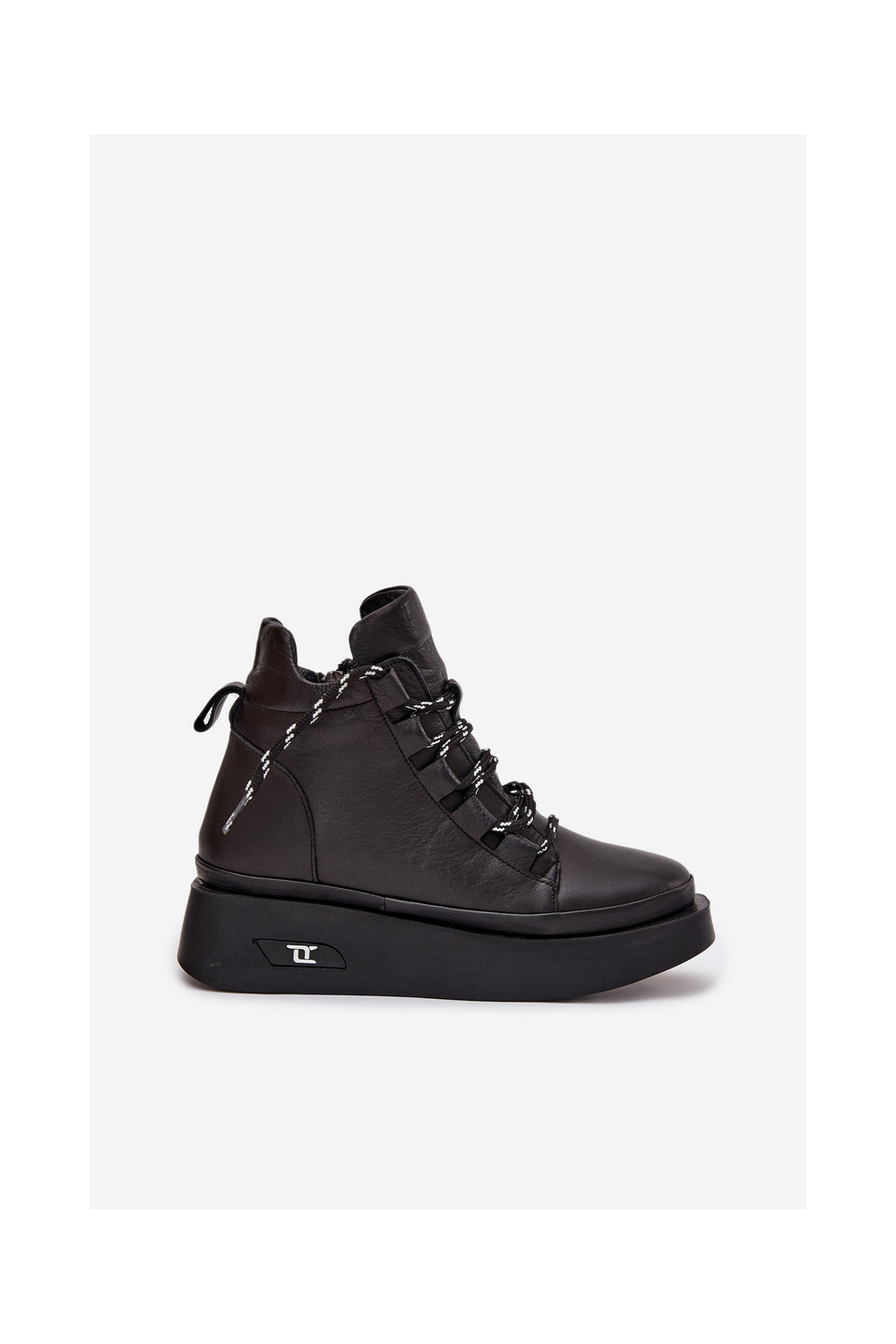 Nahast naiste saapad platvormiga, soojustatud, Artiker 55C0809 musta värvi