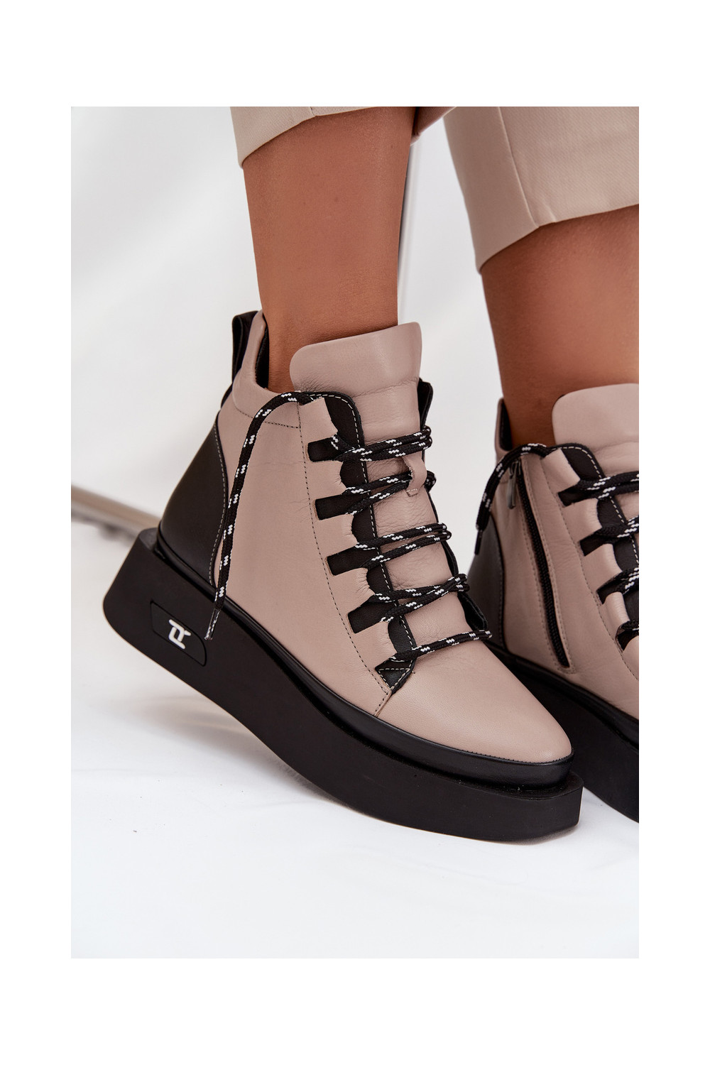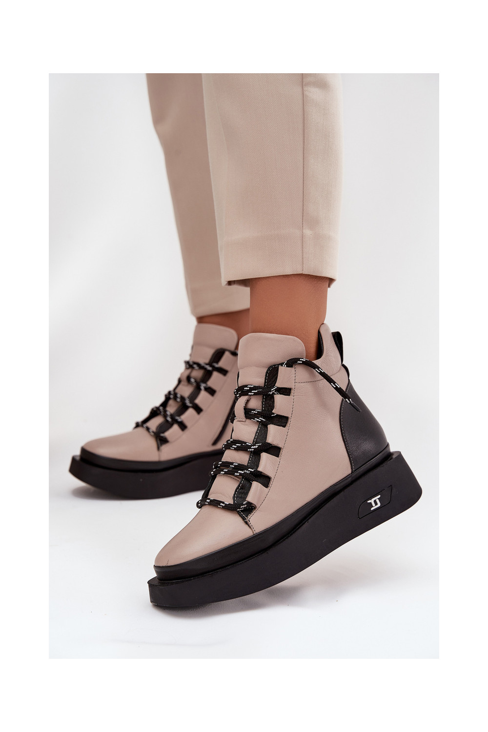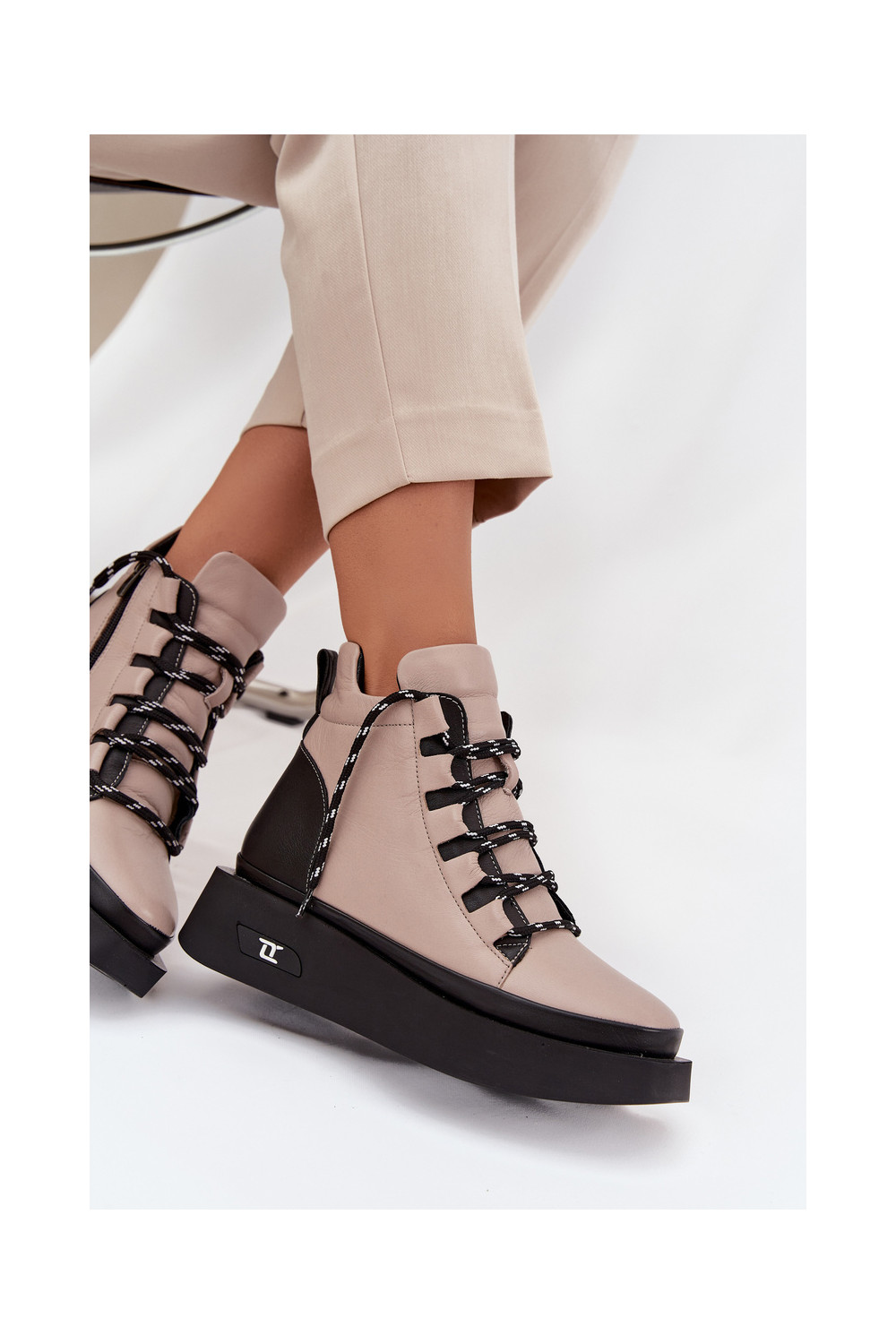 Nahast naiste saapad platvormiga, soojustatud, Artiker 55C0884 beeži värvi