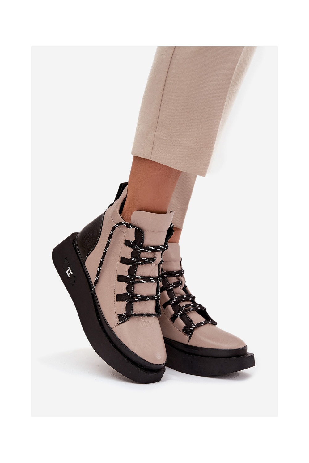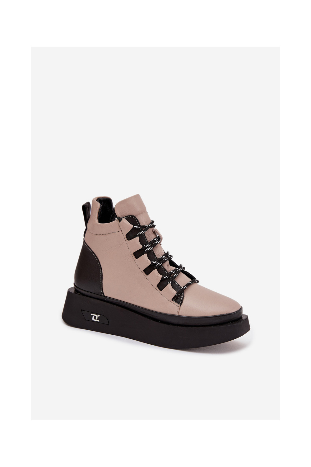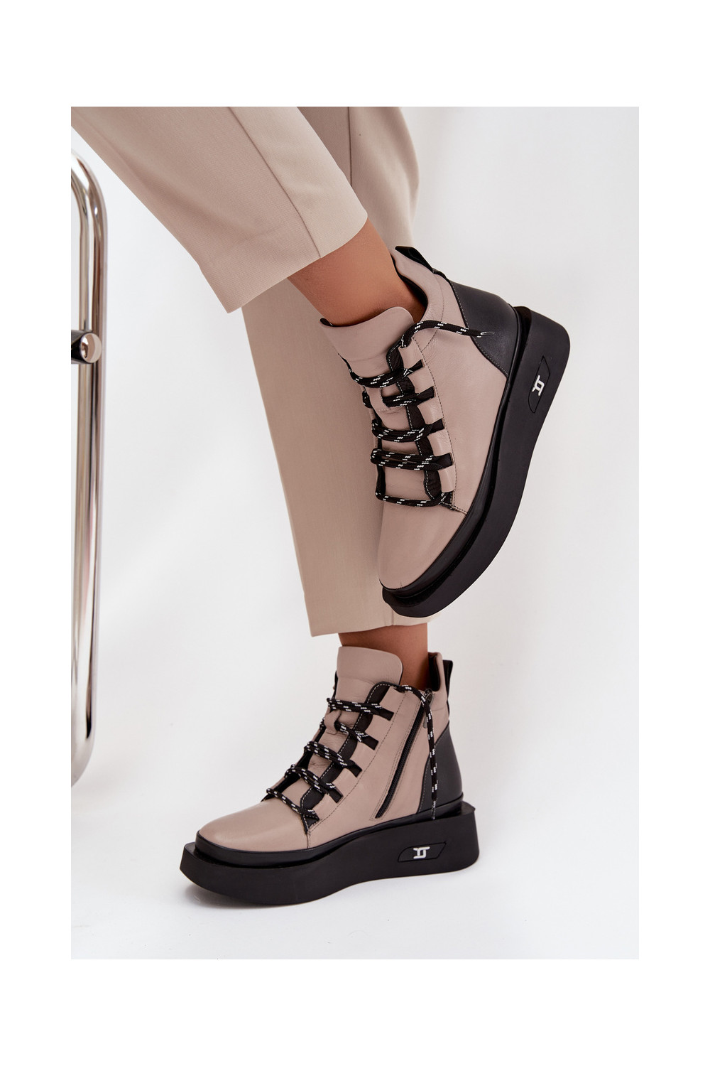 Nahast naiste saapad platvormiga, soojustatud, Artiker 55C0884 beeži värvi