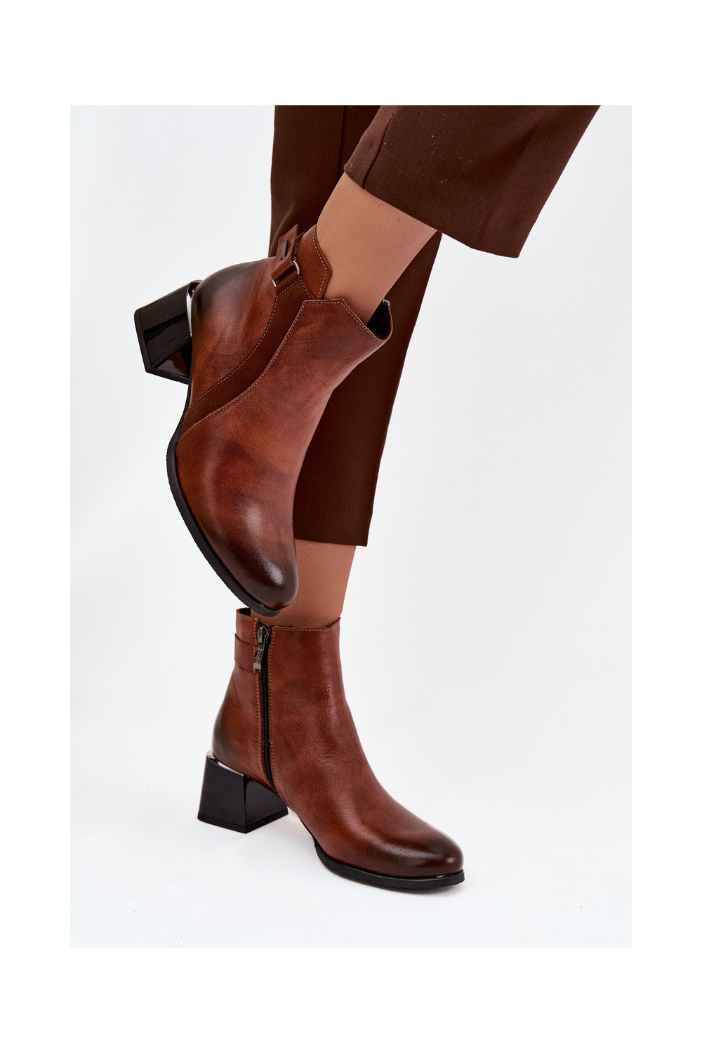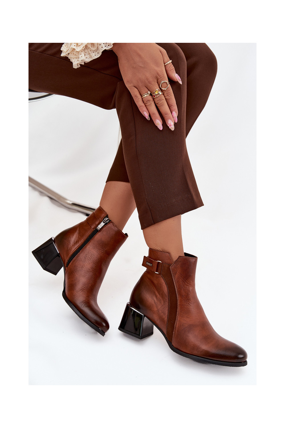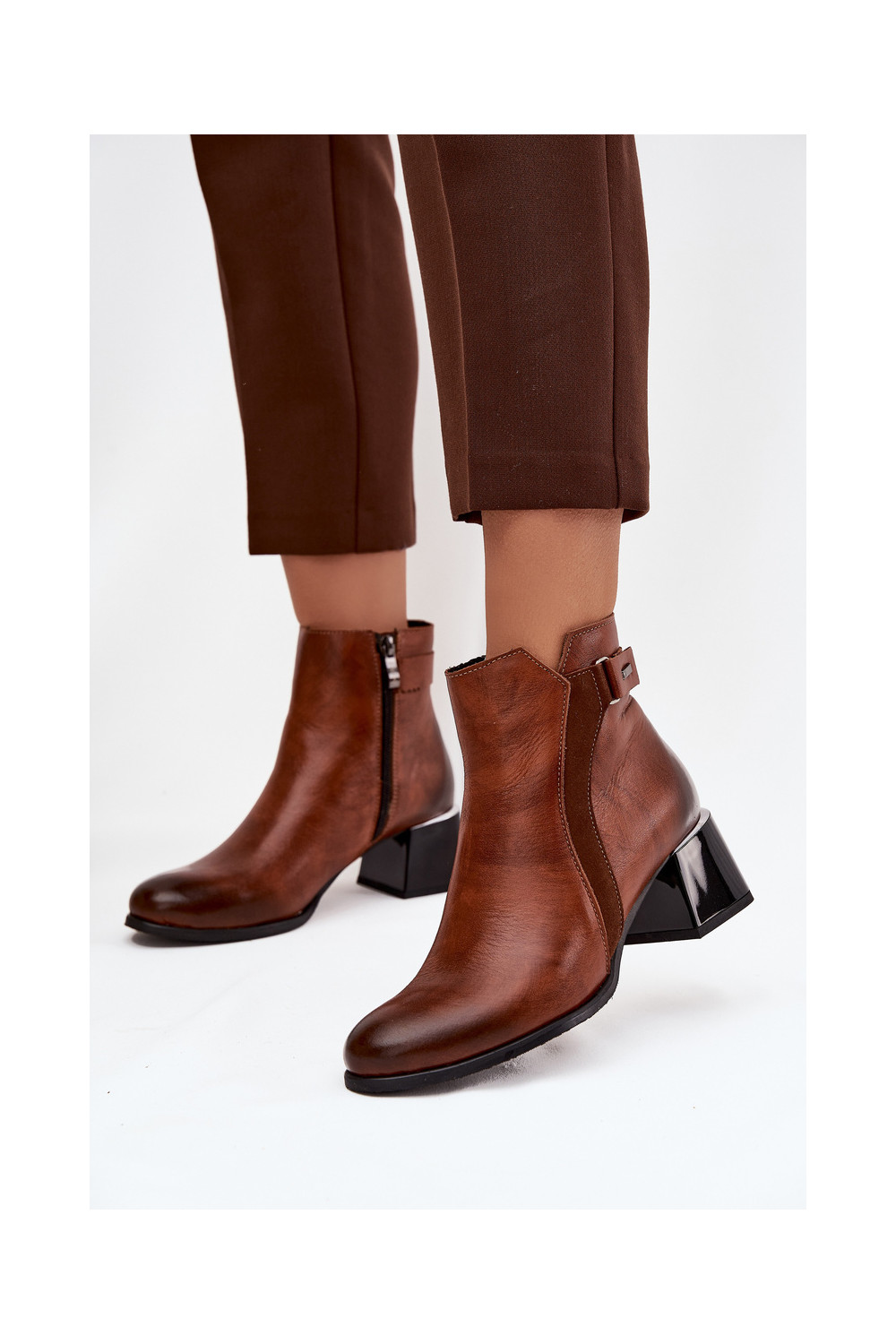 Nahast naiste saapad kontsadega, soojustatud, Zazoo 60563 pruuni värvi