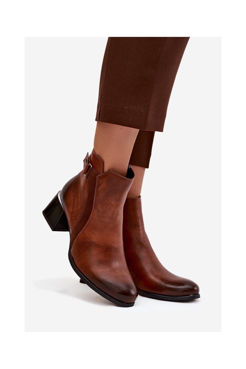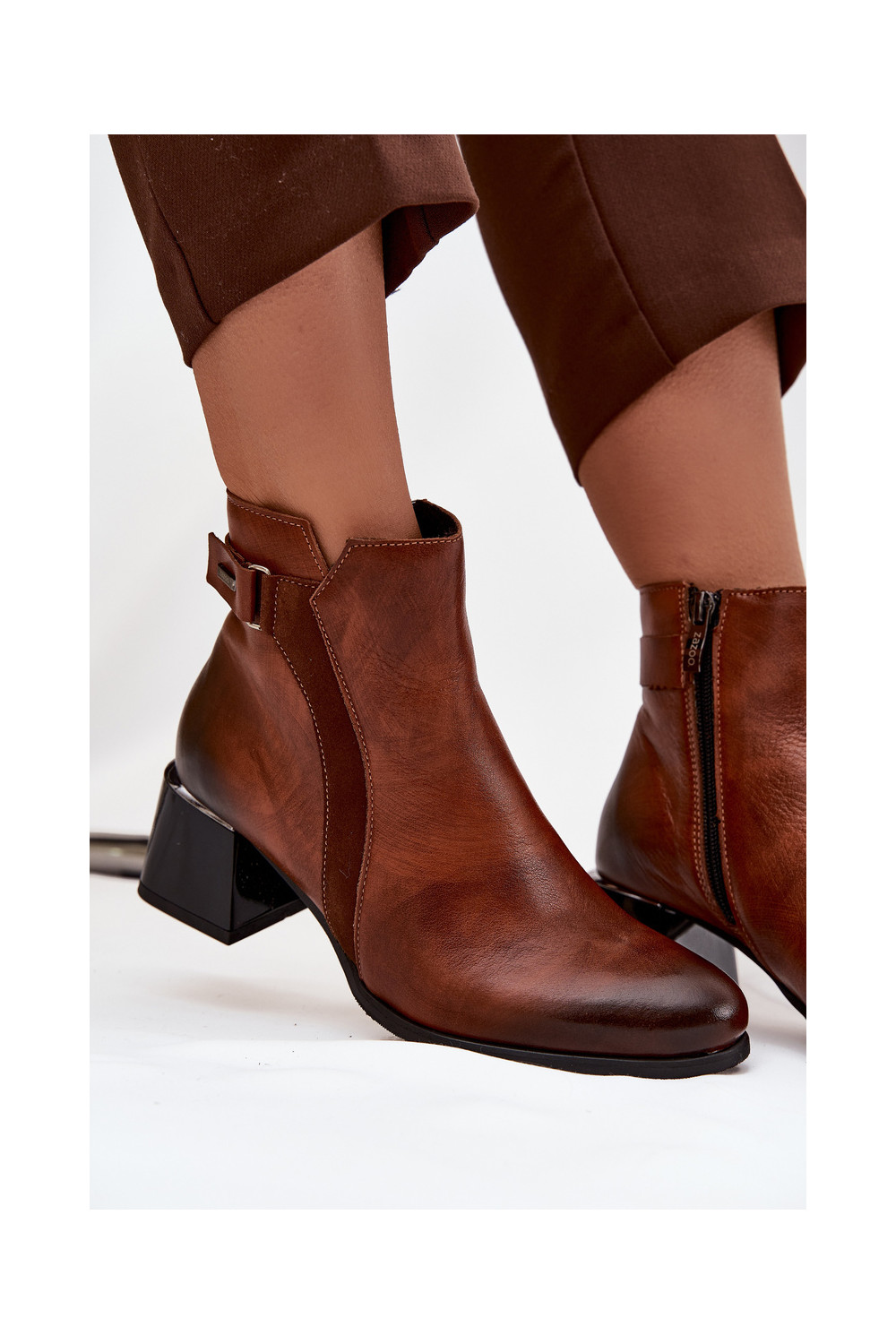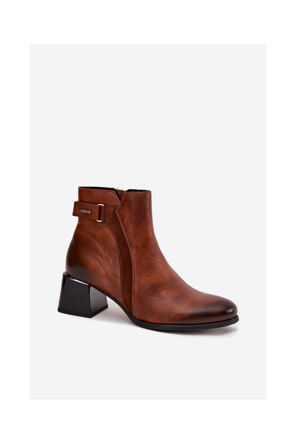 Nahast naiste saapad kontsadega, soojustatud, Zazoo 60563 pruuni värvi