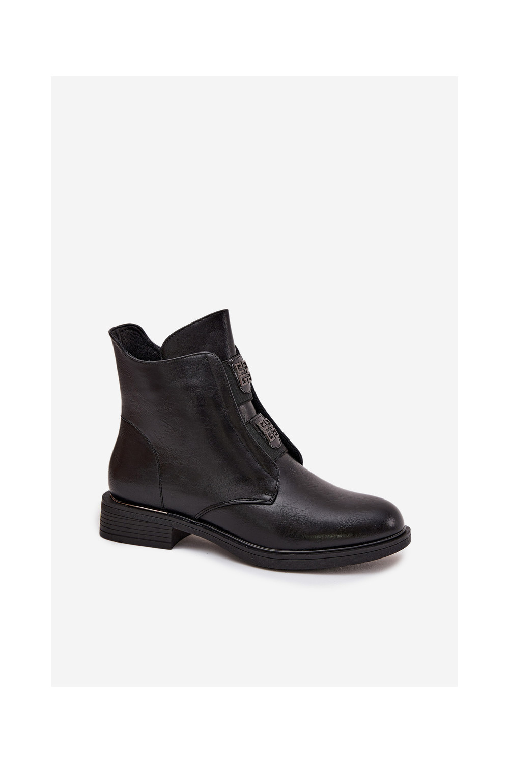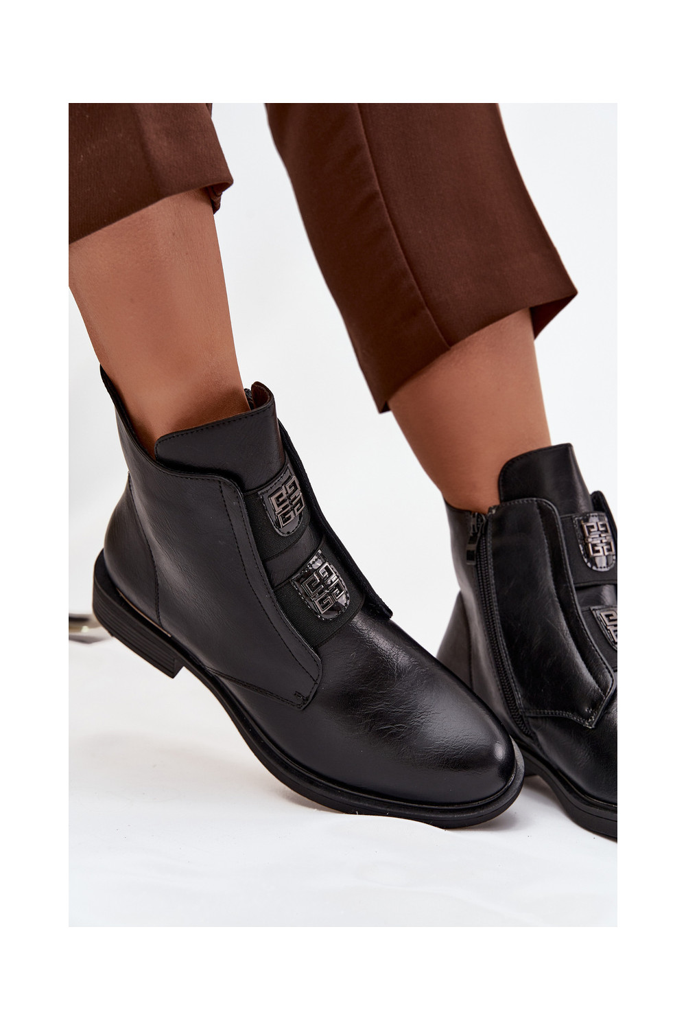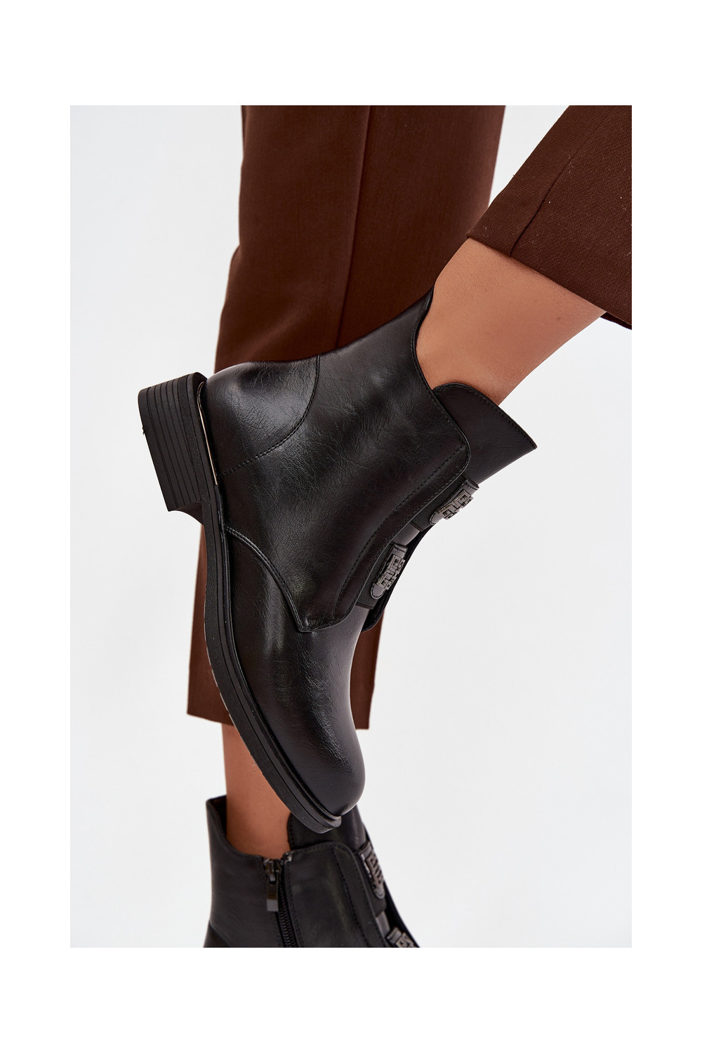 Naiste saapad madalal kontsal kaunite detailidega, soojustatud, musta värvi Tavressa