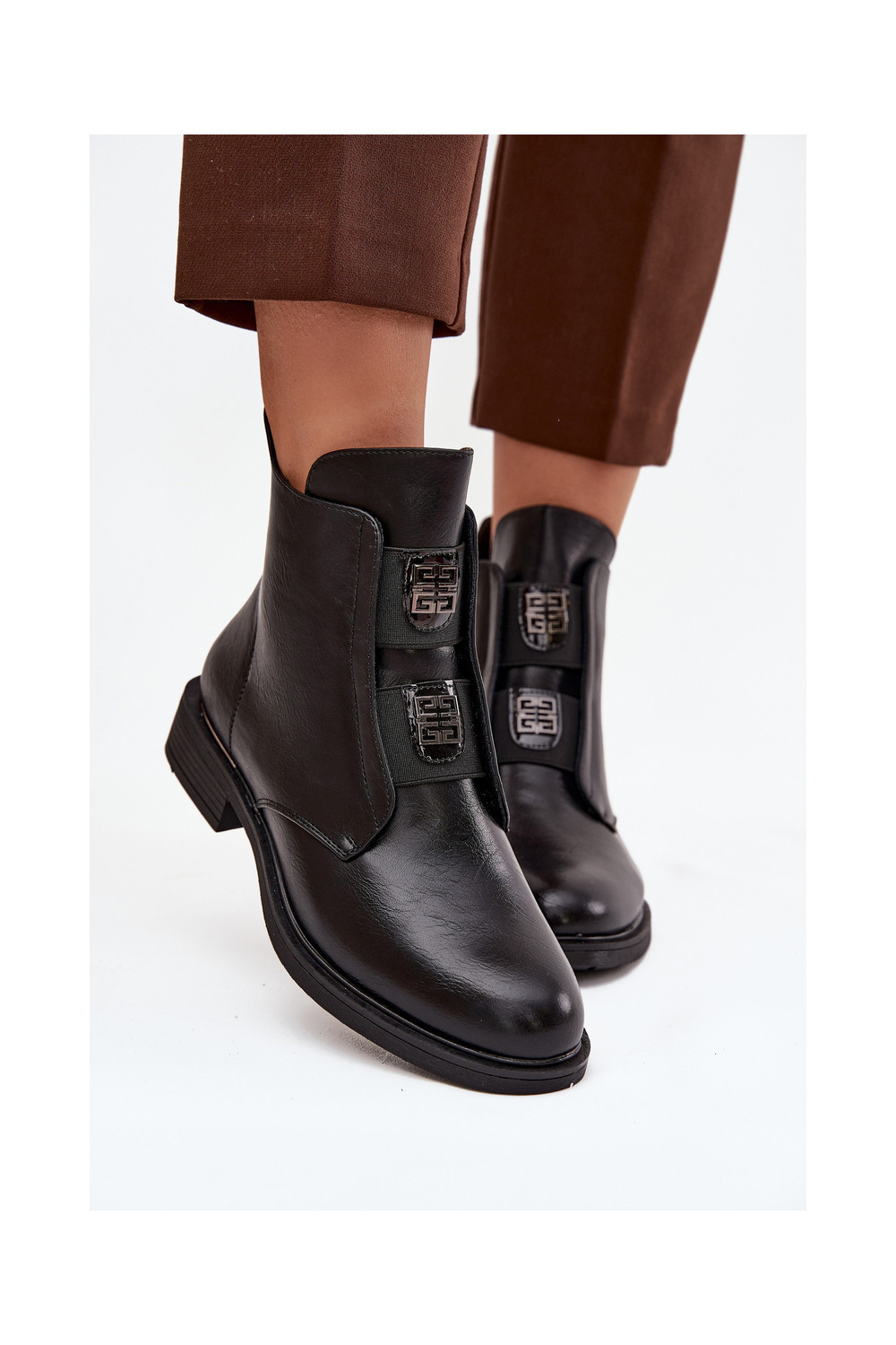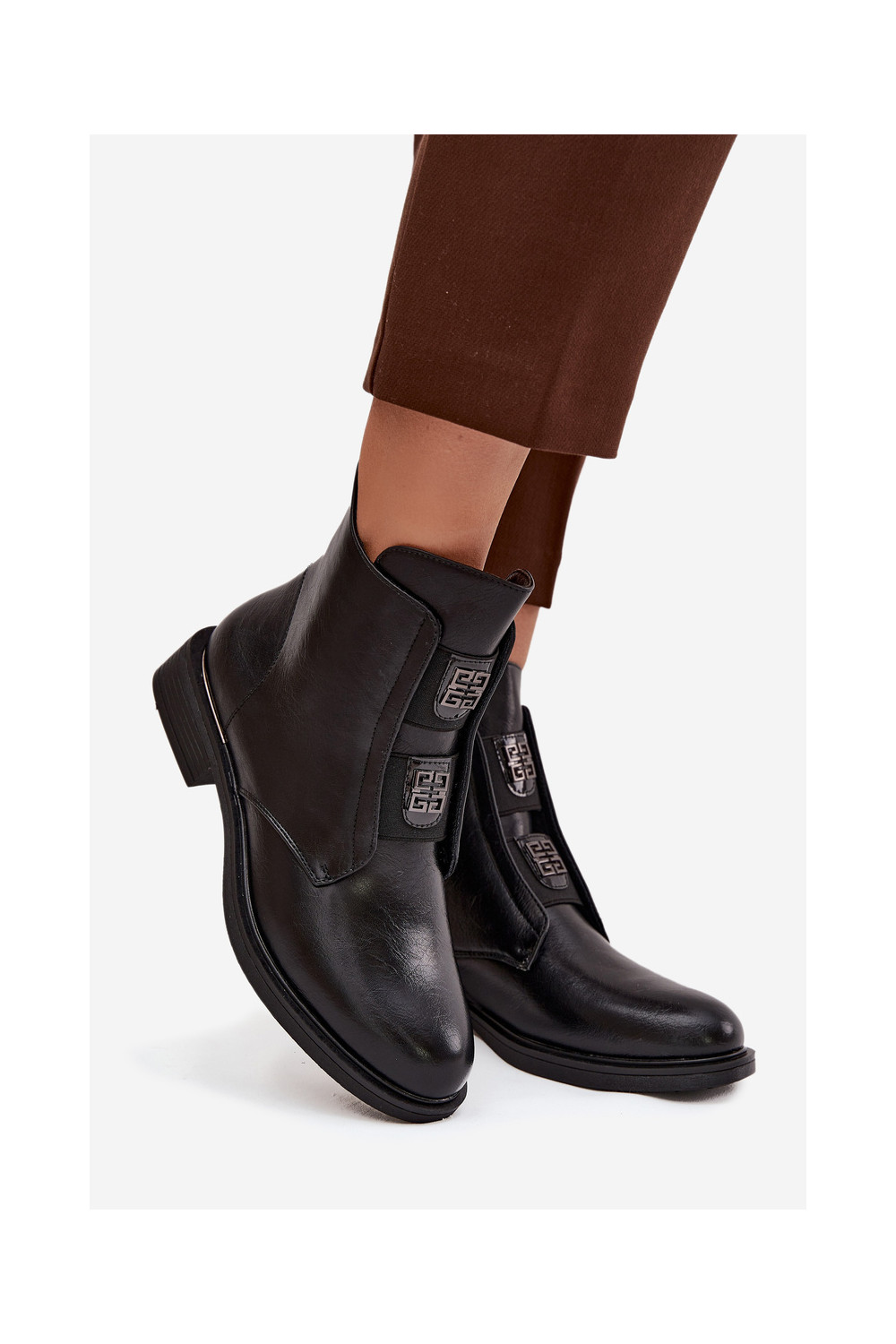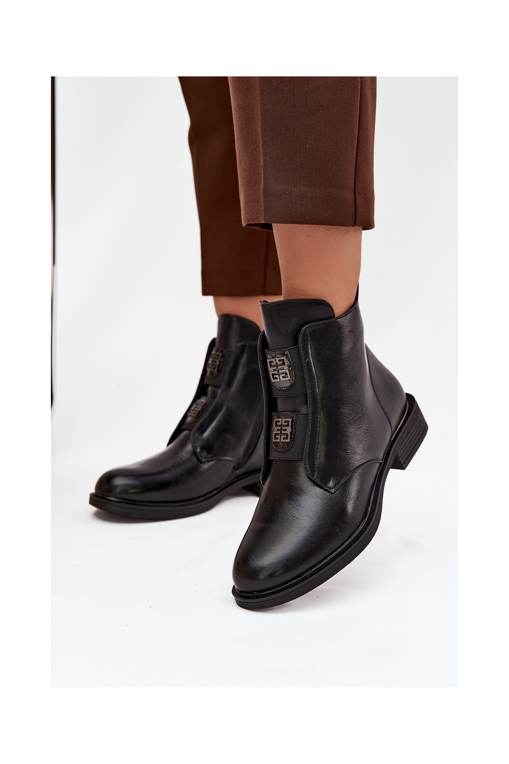 Naiste saapad madalal kontsal kaunite detailidega, soojustatud, musta värvi Tavressa