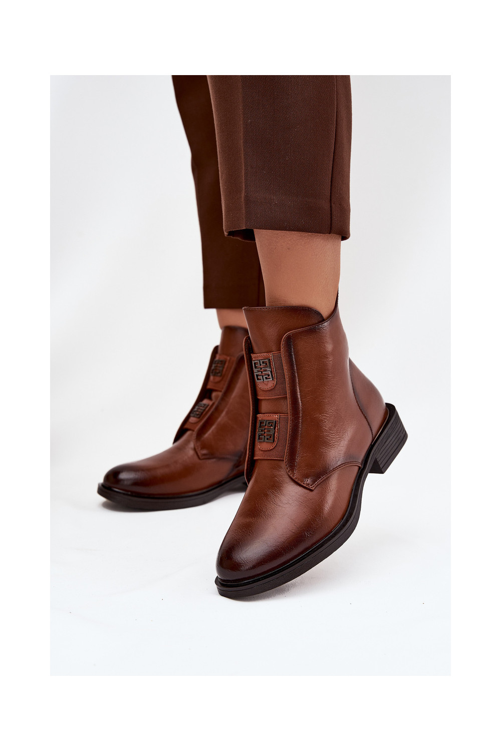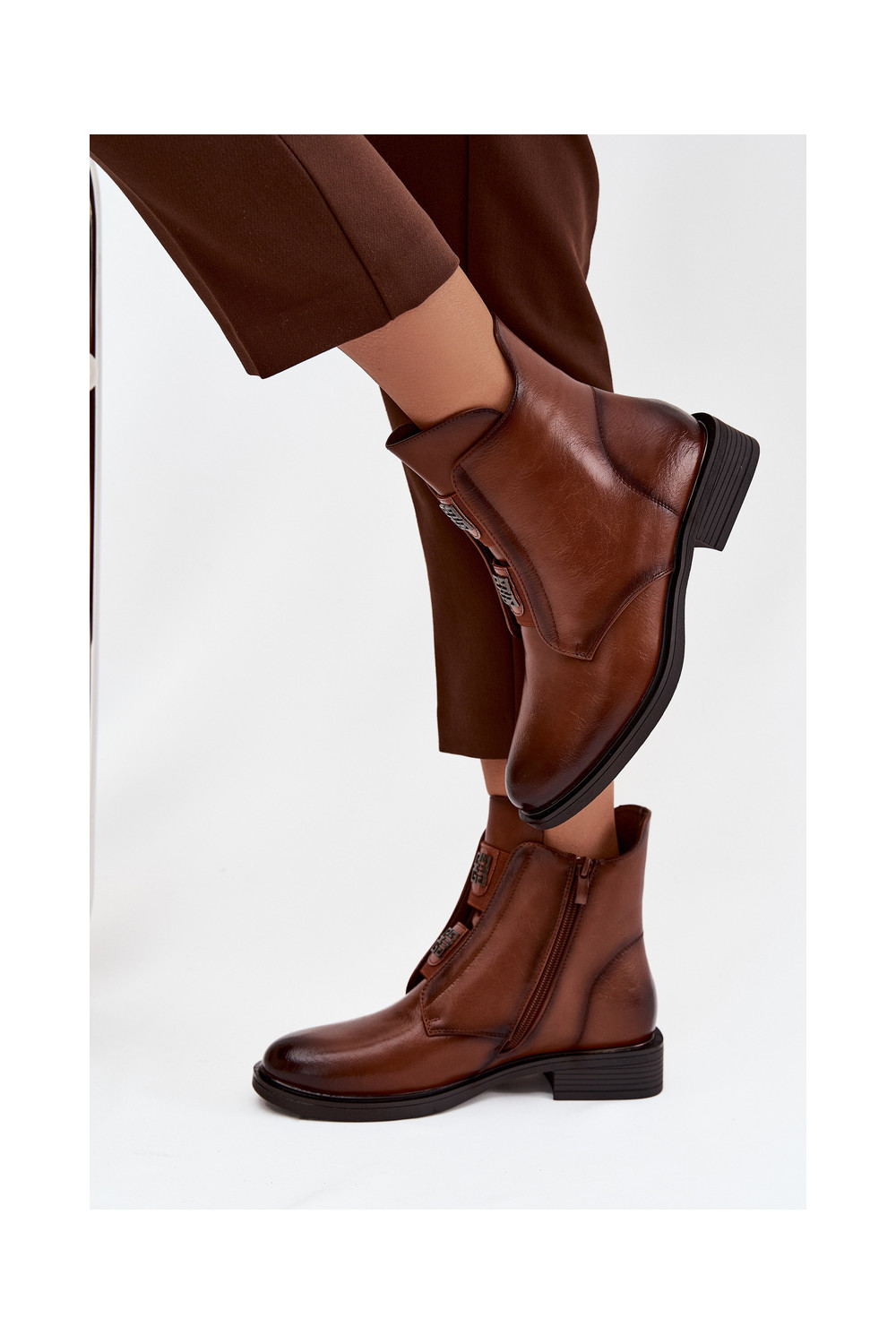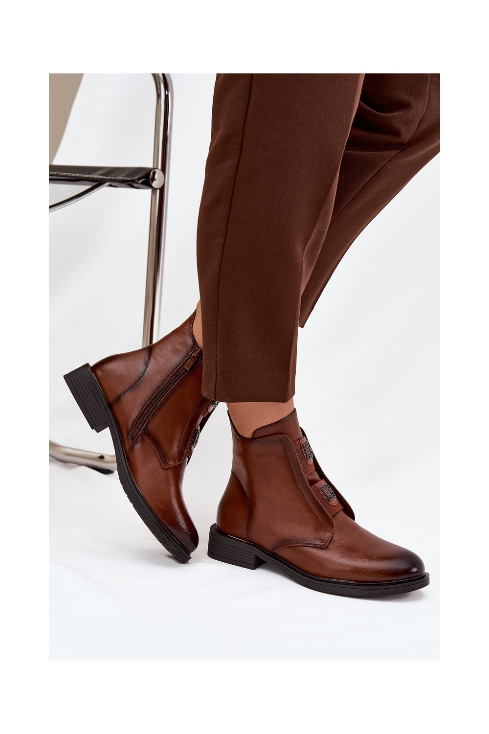 Naiste saapad madalal kontsal kaunite detailidega, soojustatud, pruuni värvi Tavressa