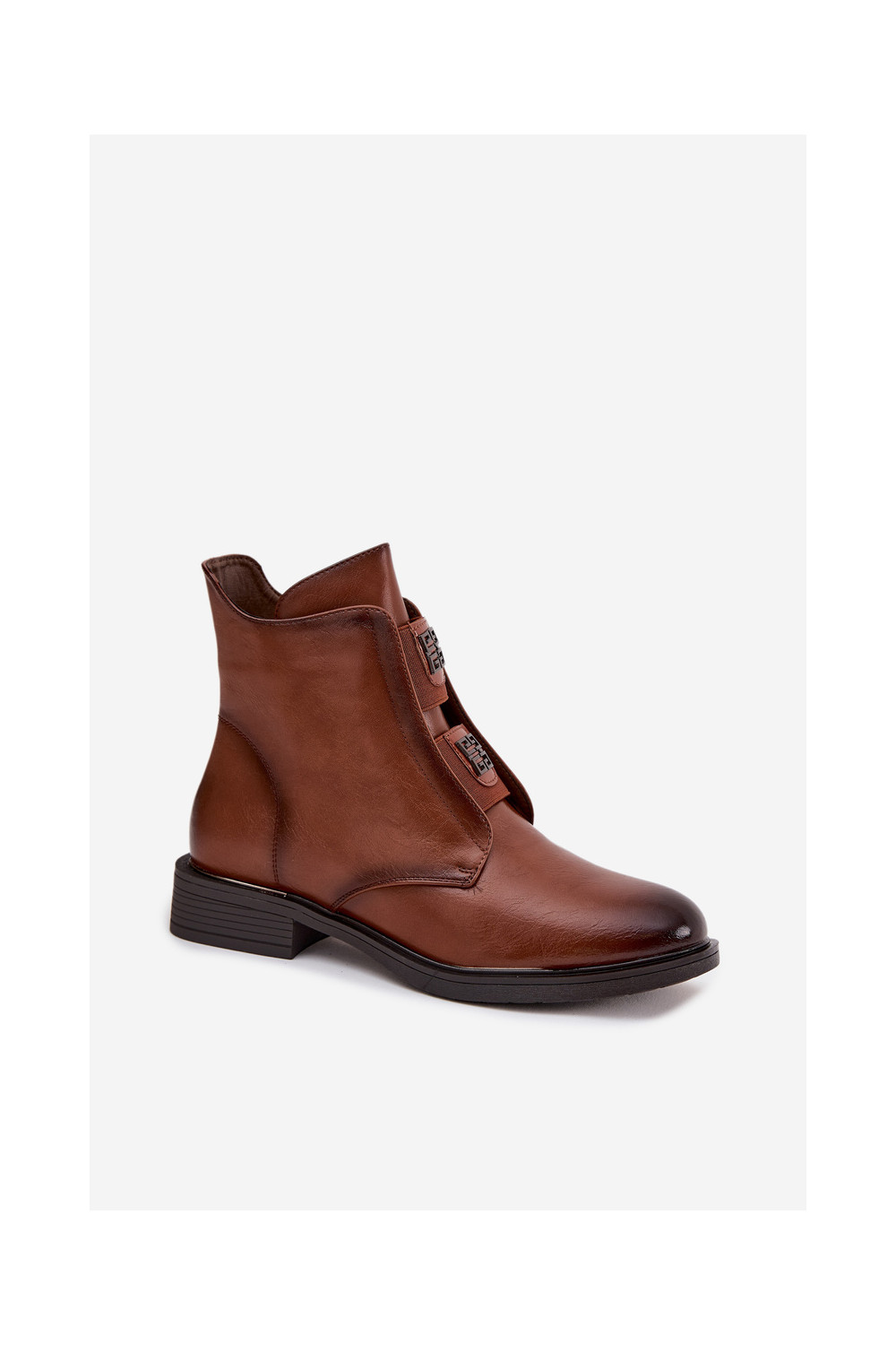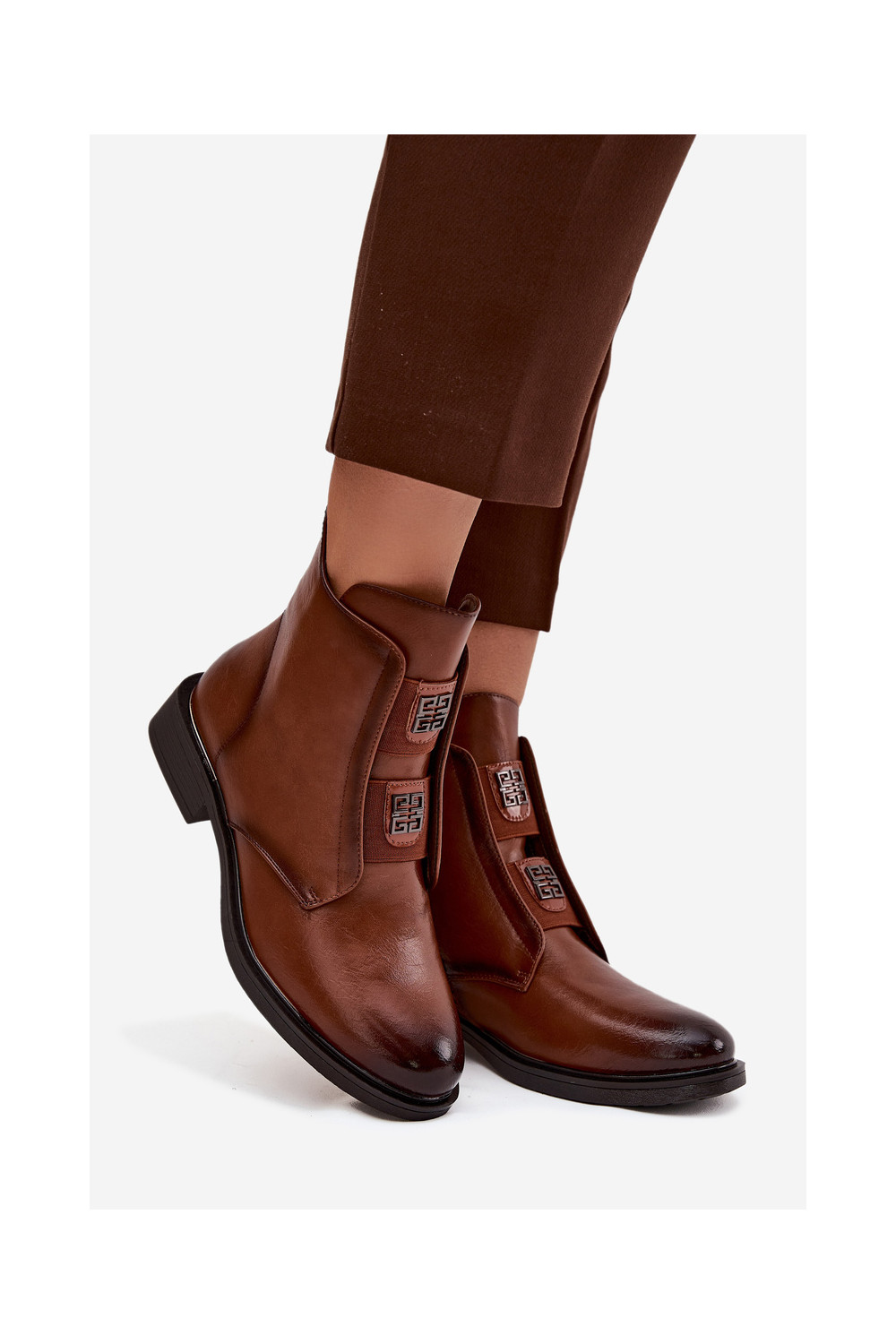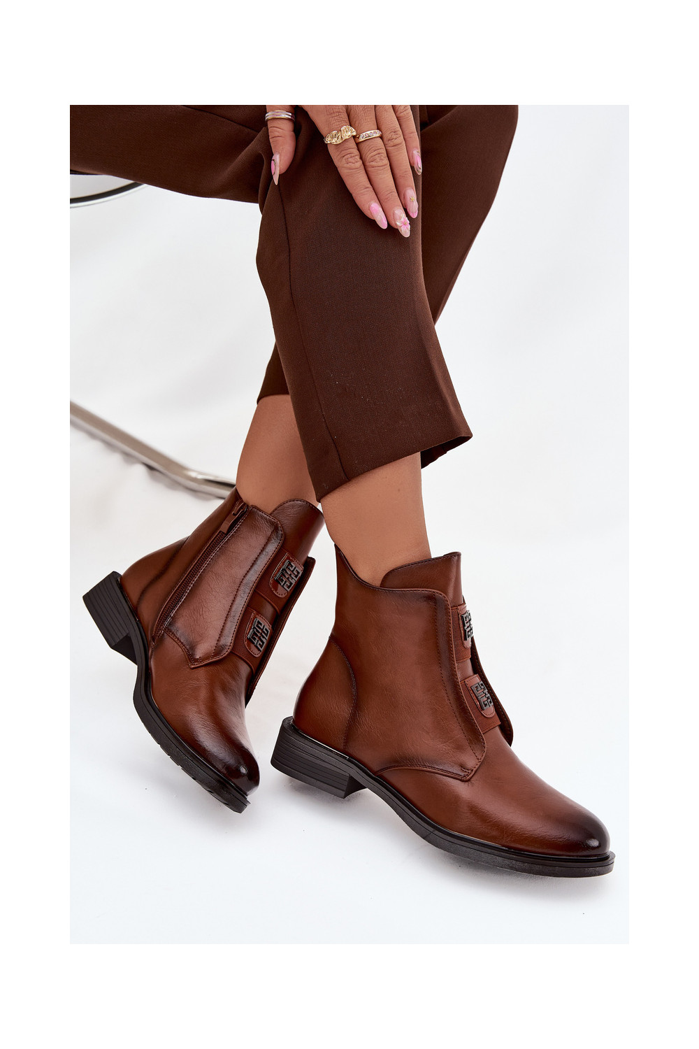 Naiste saapad madalal kontsal kaunite detailidega, soojustatud, pruuni värvi Tavressa