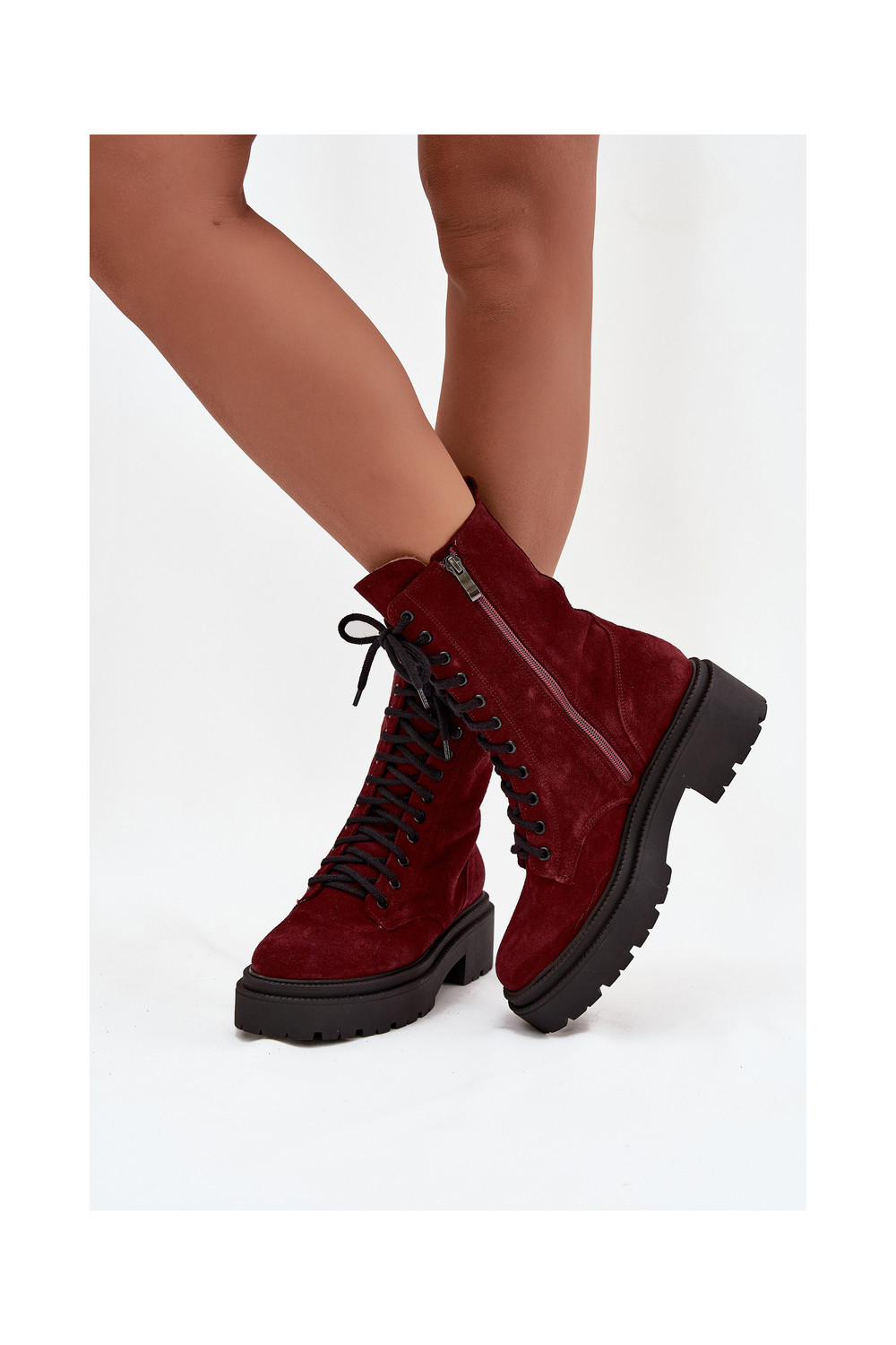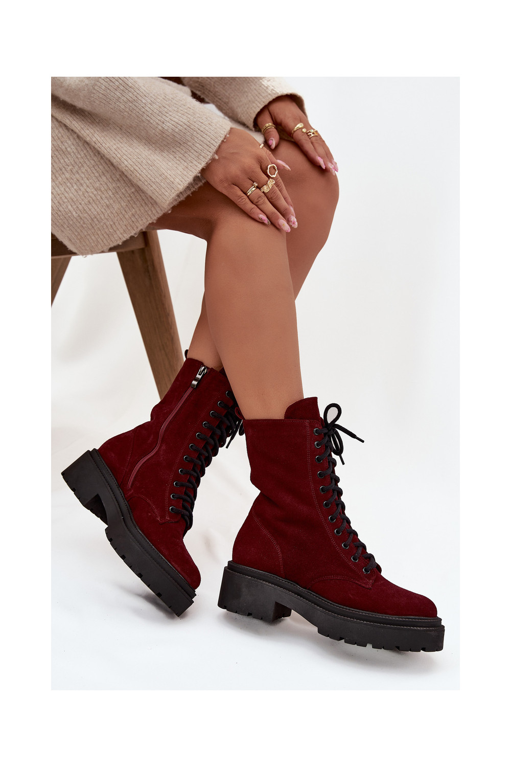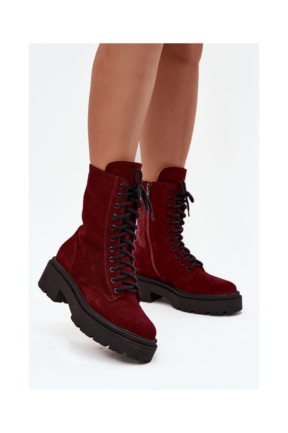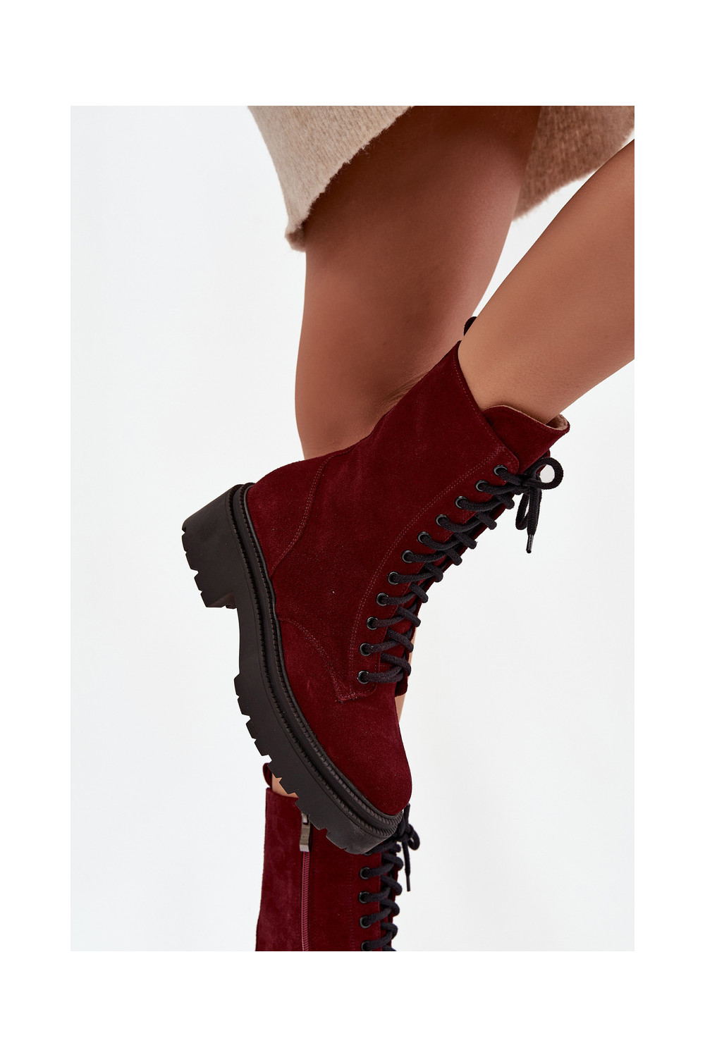 töötavad naiste pahkluu saapad naturaalsetest sametist soojustatud Zazoo 4213 bordoo värvi