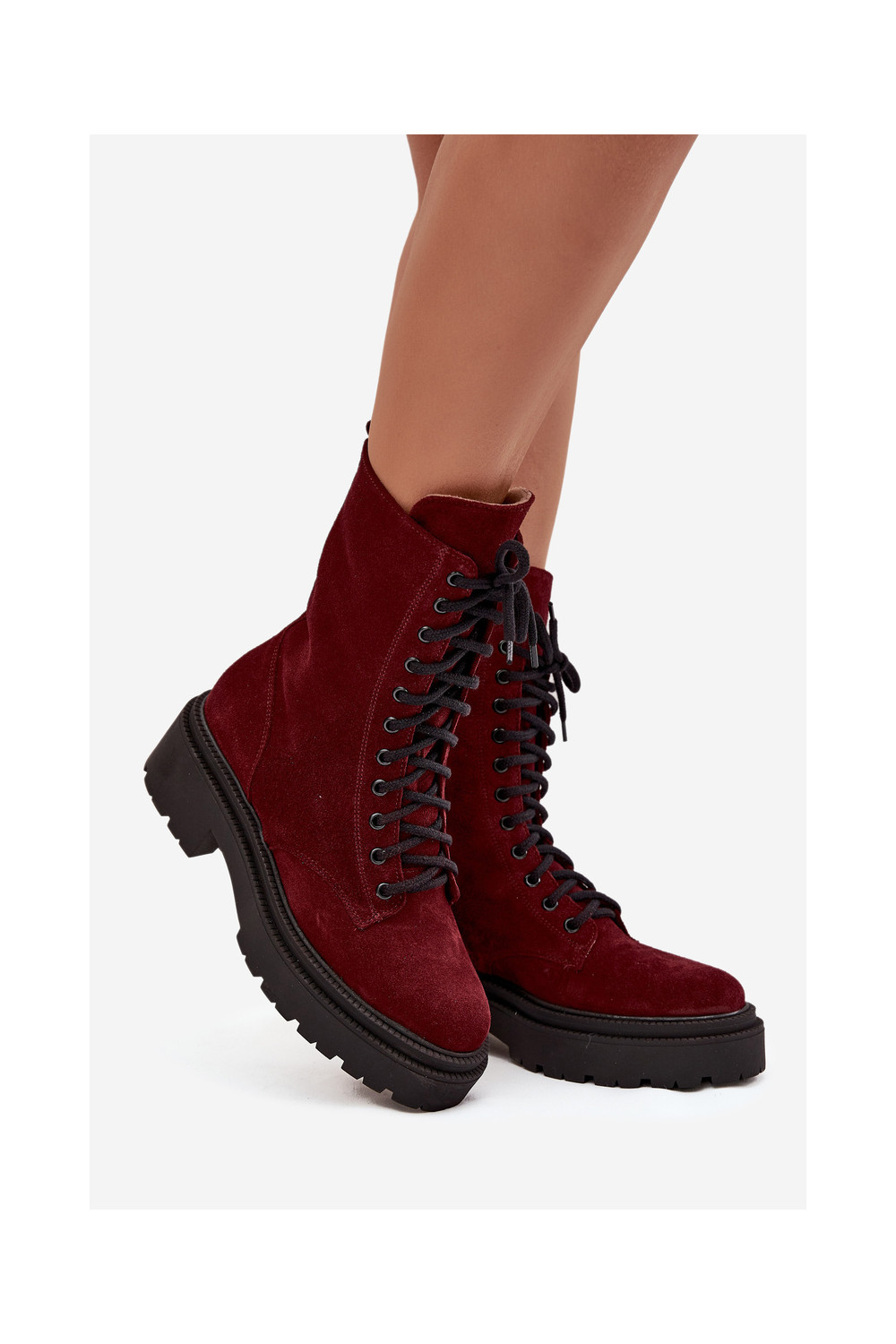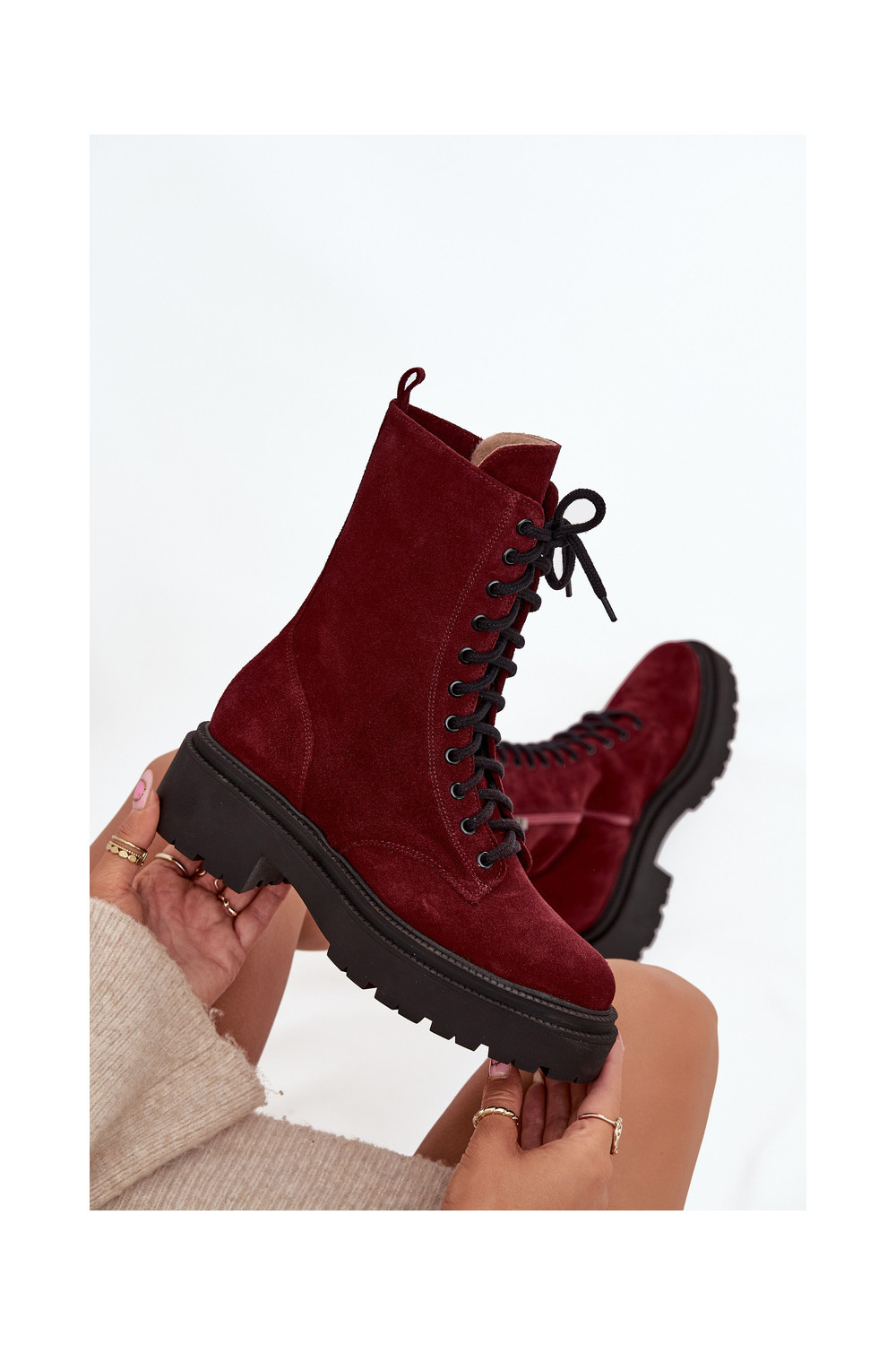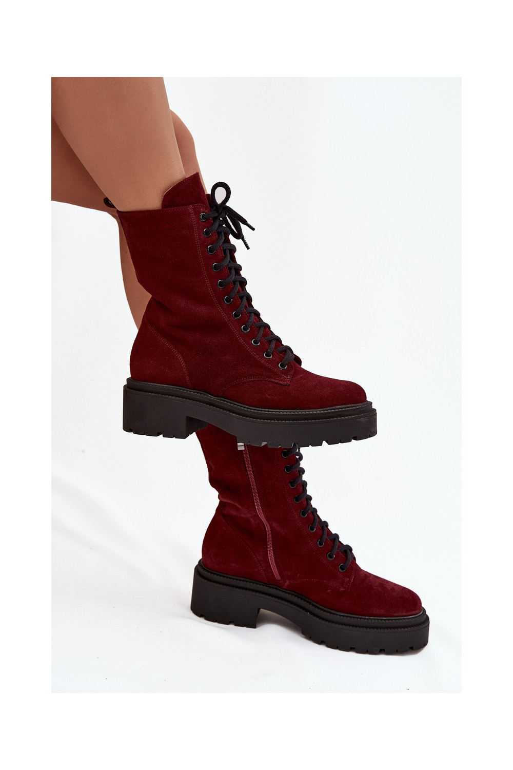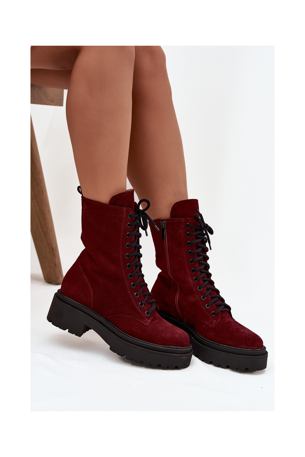töötavad naiste pahkluu saapad naturaalsetest sametist soojustatud Zazoo 4213 bordoo värvi