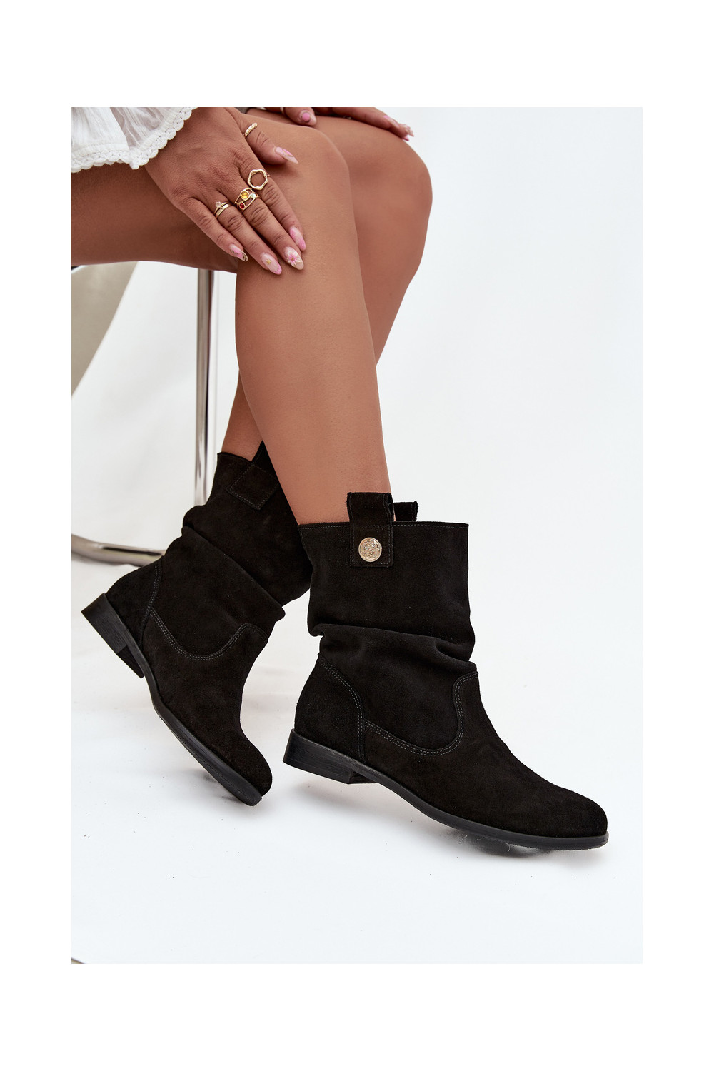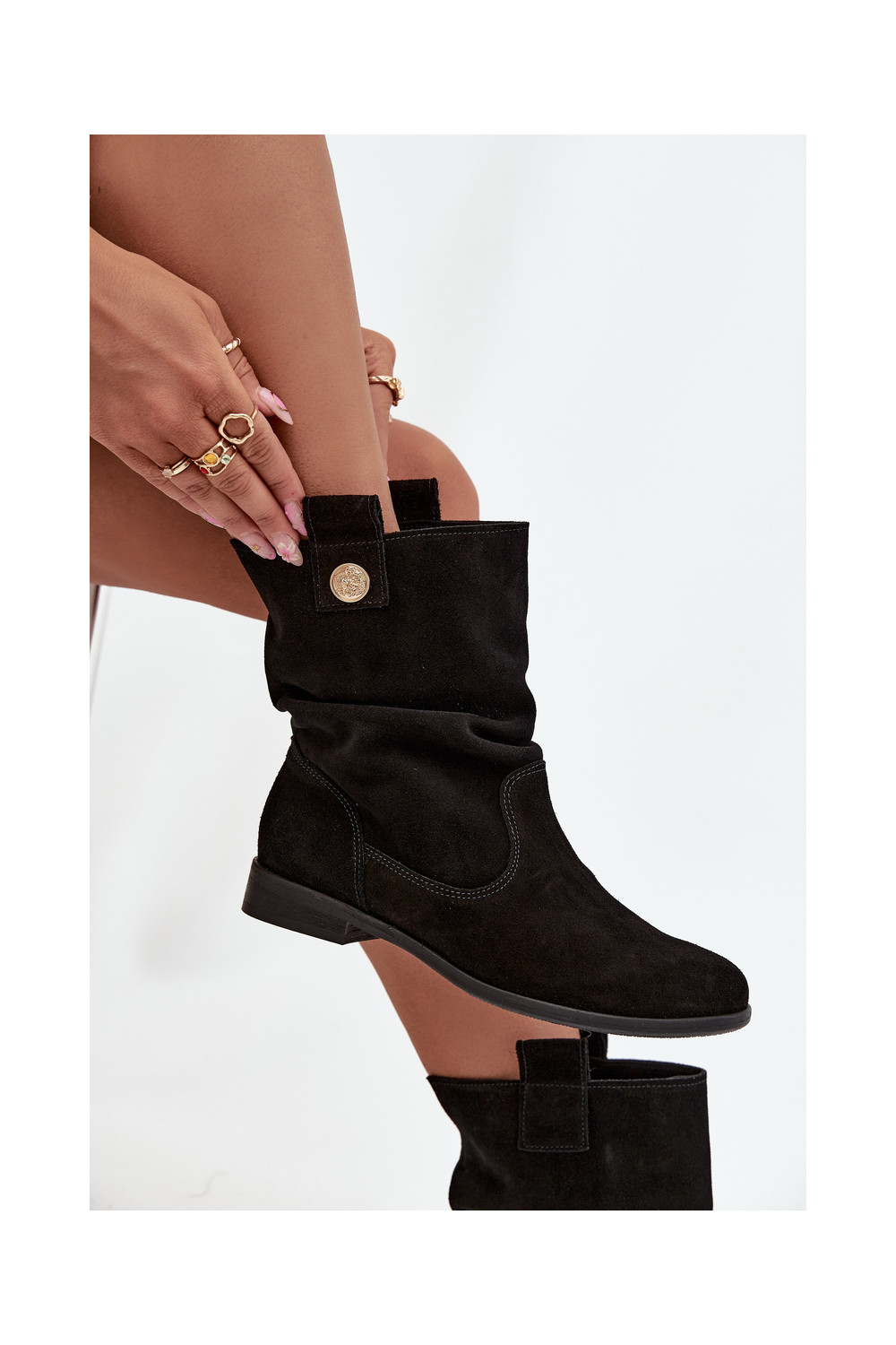 nahast naiste sametist saapad volangidega soojustatud Zazoo 4210 musta värvi