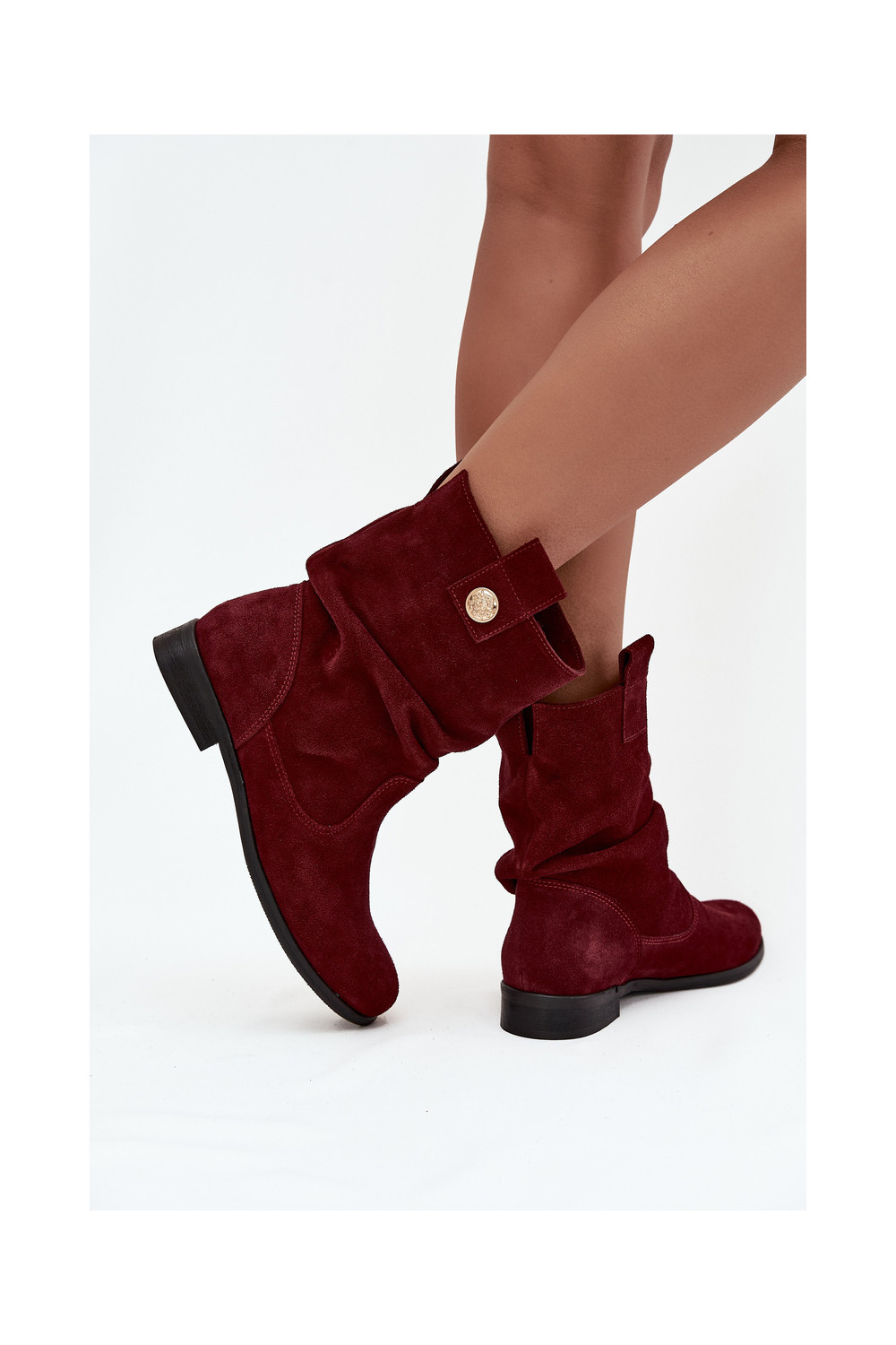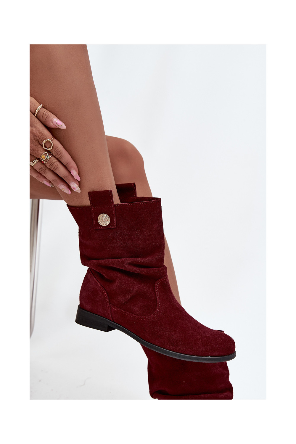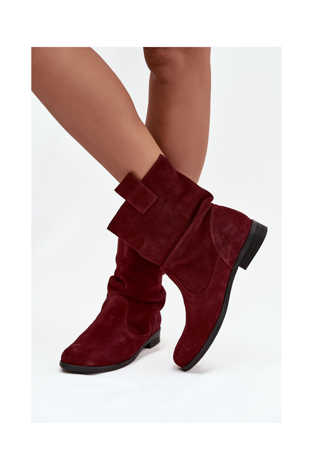 nahast naiste sametist saapad volangidega soojustatud Zazoo 4210 bordoo värvi