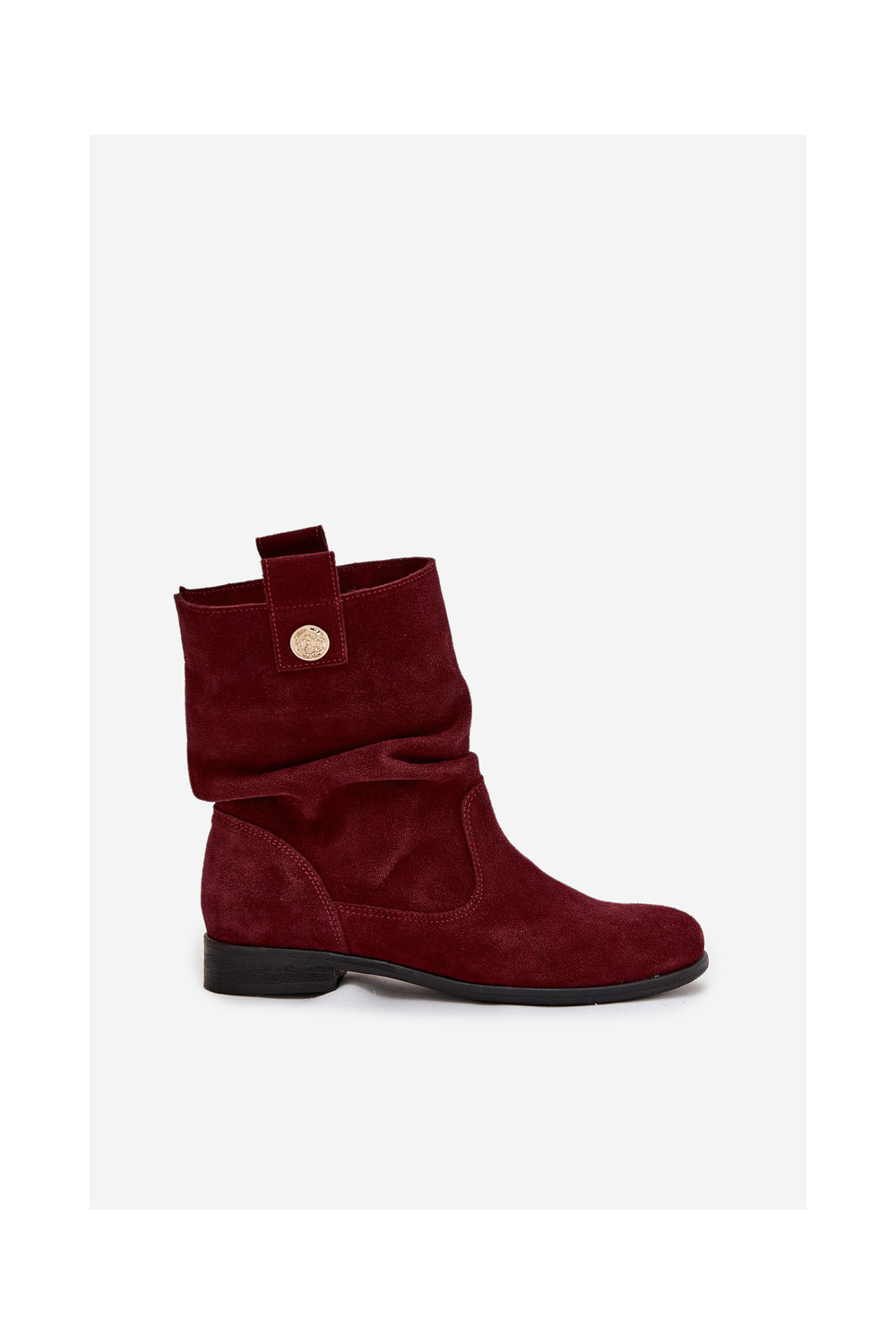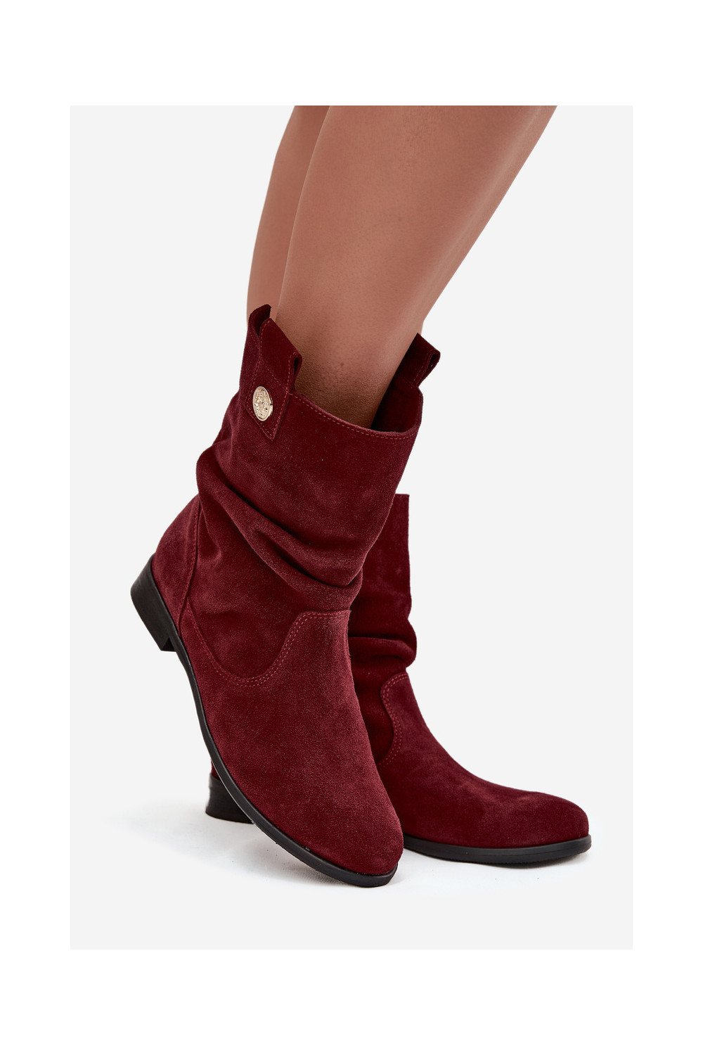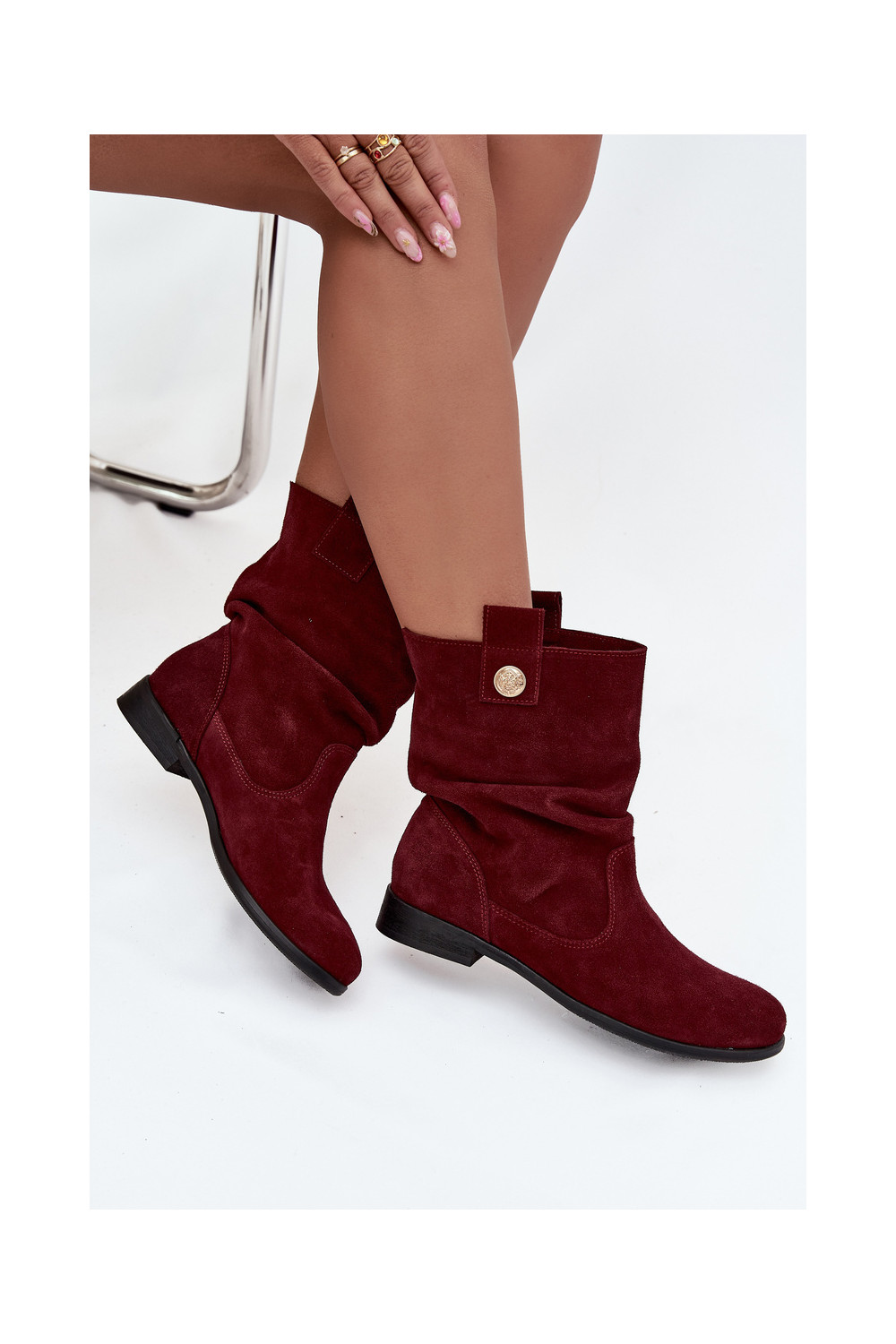 nahast naiste sametist saapad volangidega soojustatud Zazoo 4210 bordoo värvi