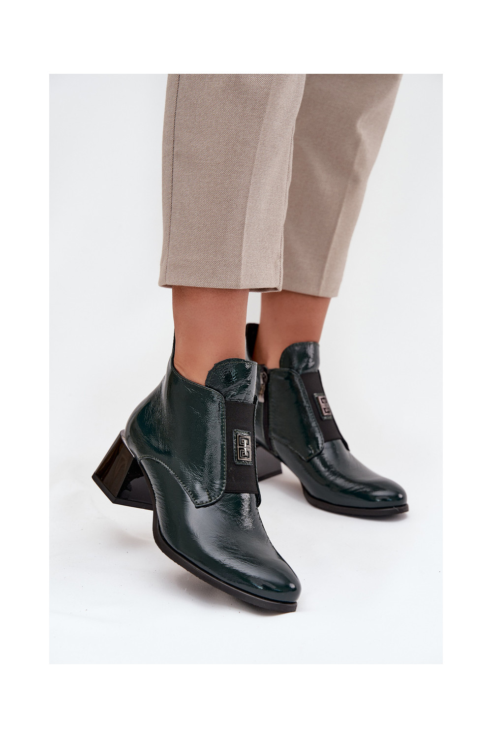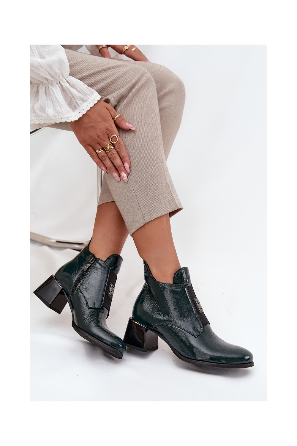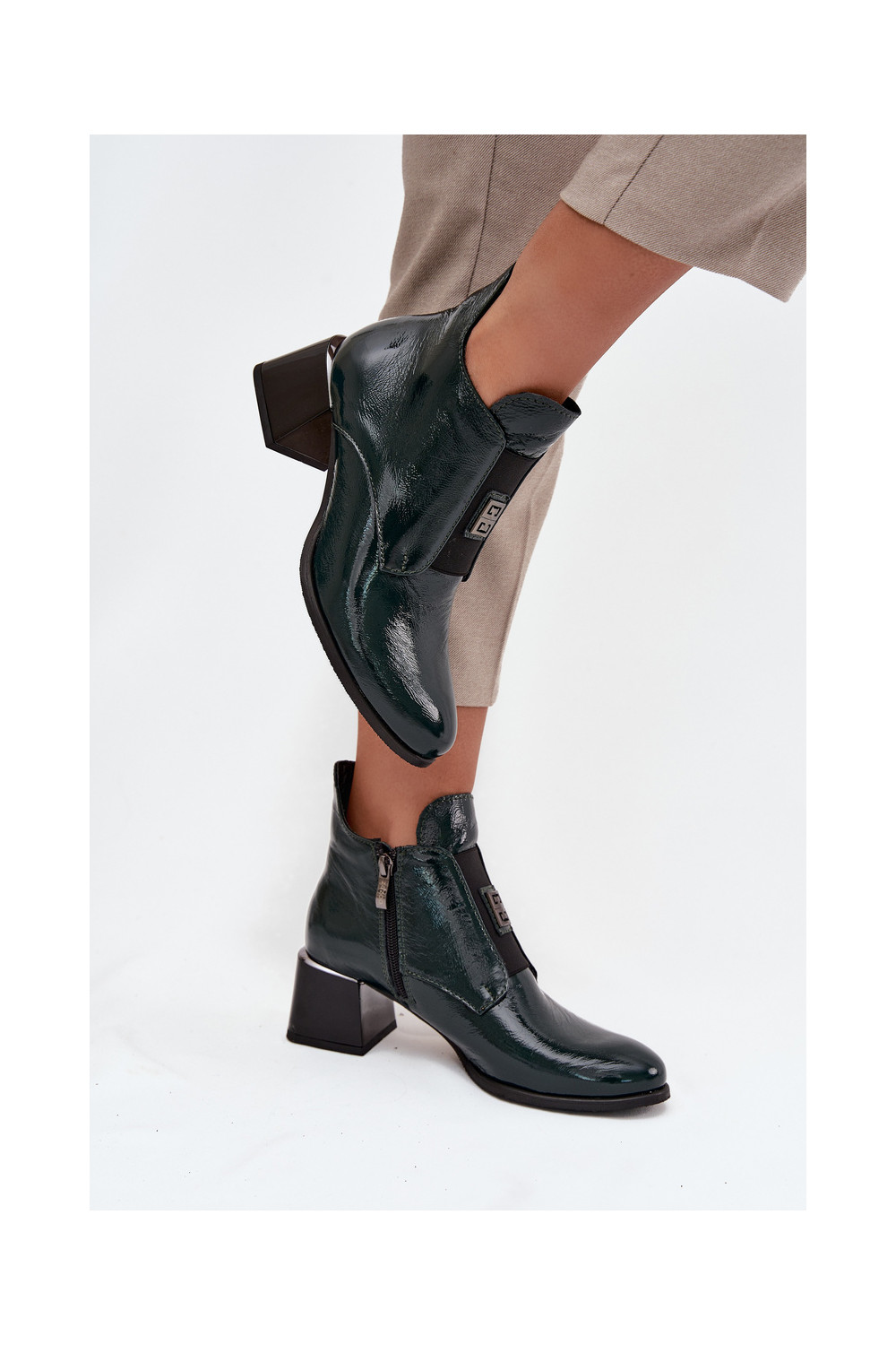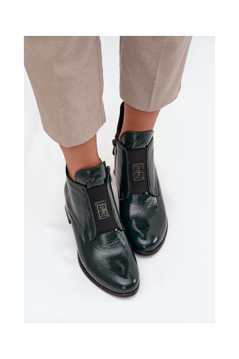 nahast lakkpinnaga saapad Klocke dekoratiivsete detailidega soojustatud Zazoo 60560 khaki värvi