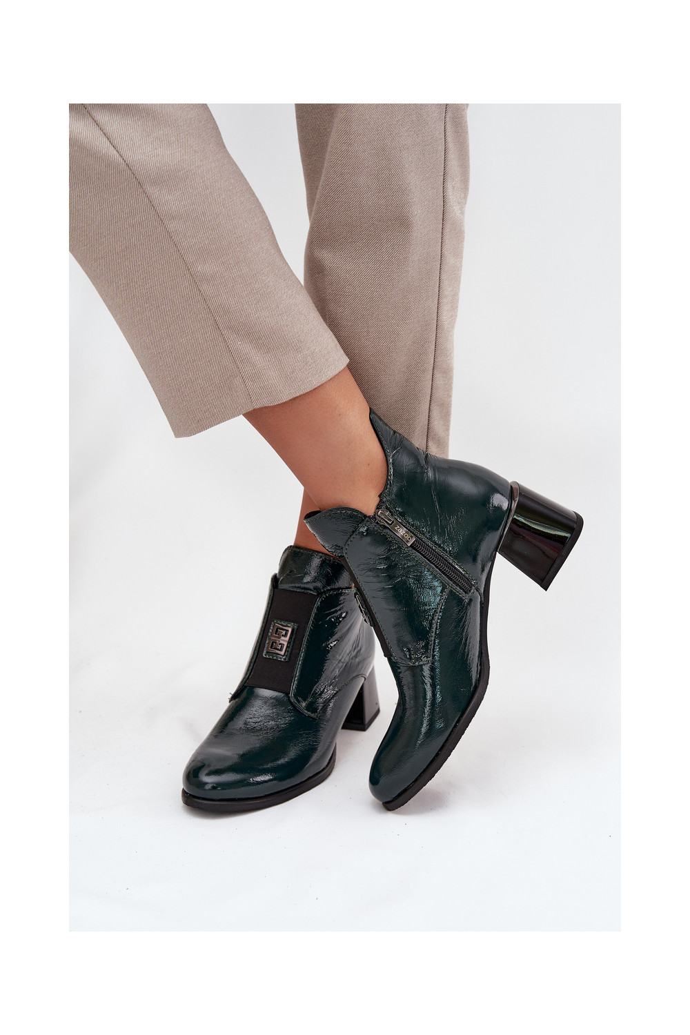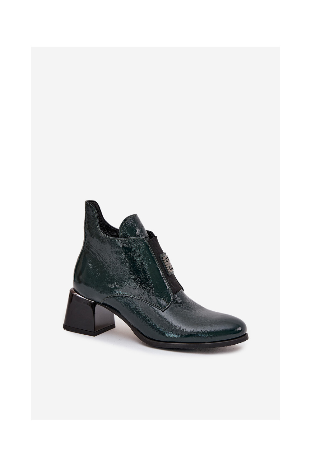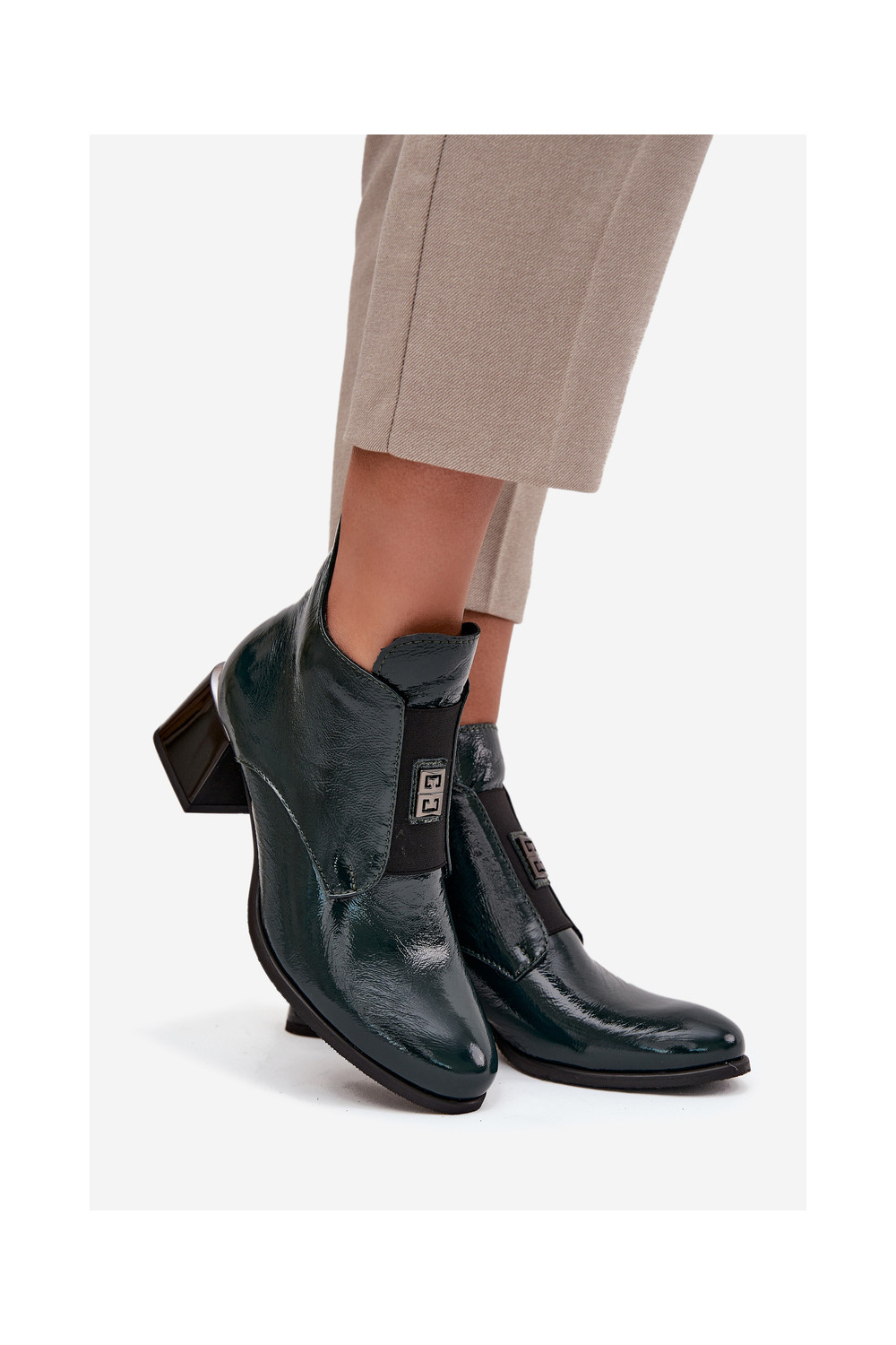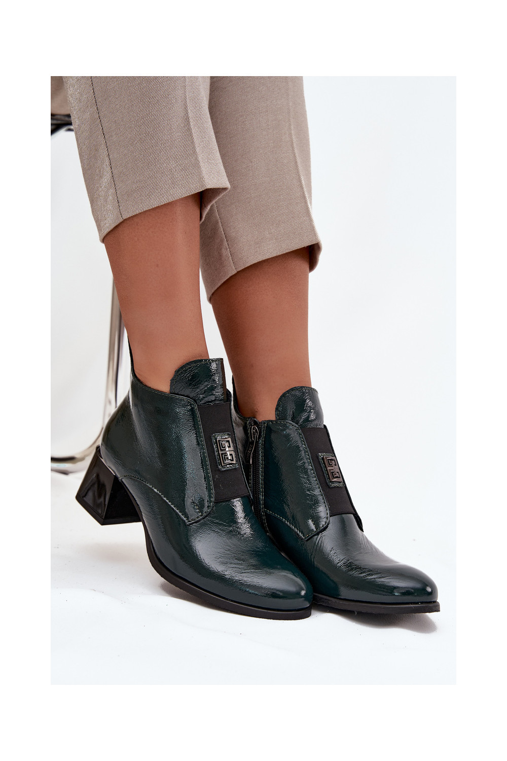nahast lakkpinnaga saapad Klocke dekoratiivsete detailidega soojustatud Zazoo 60560 khaki värvi
