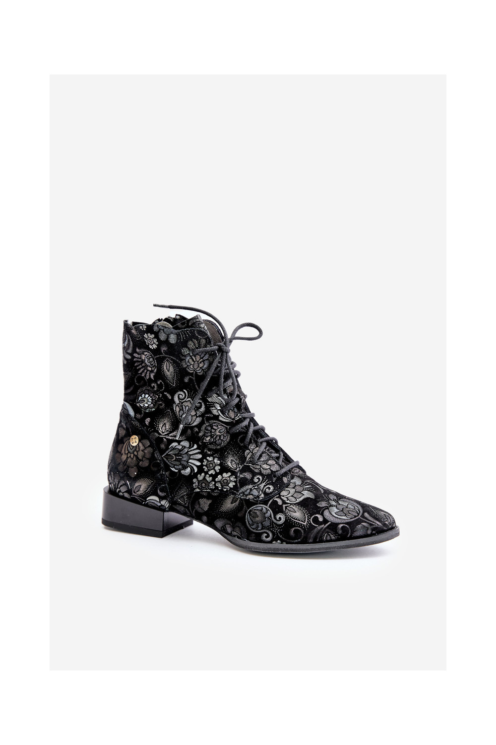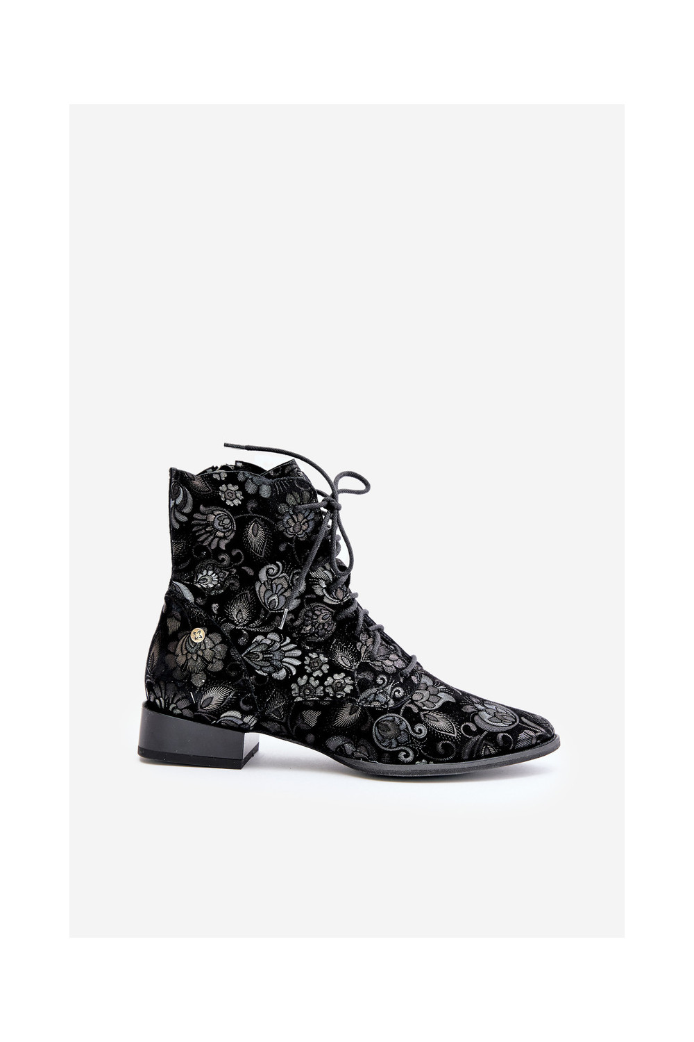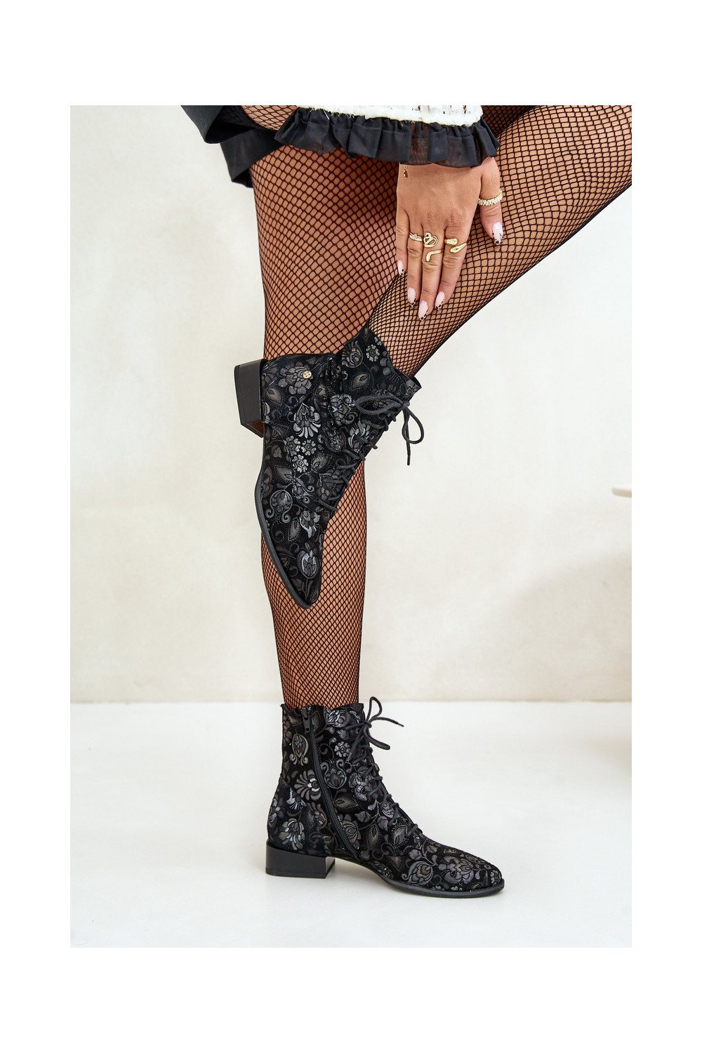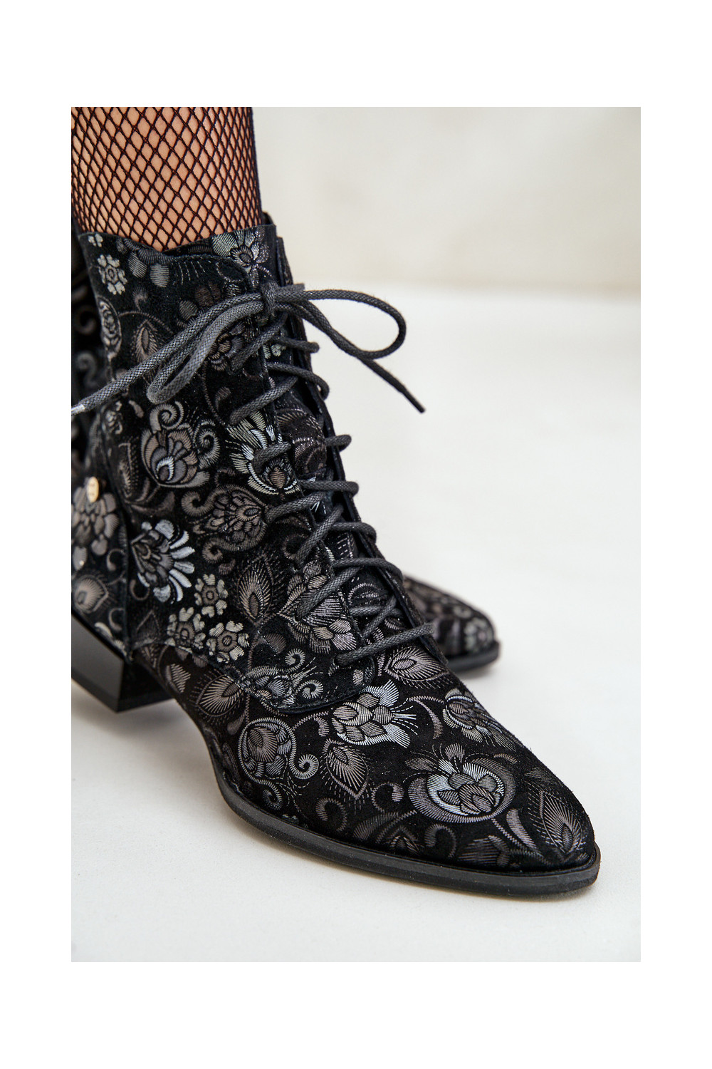 Mustrilised sametised kingad laia kontsaga "Tai turiciejka" 06391-01 musta värviga