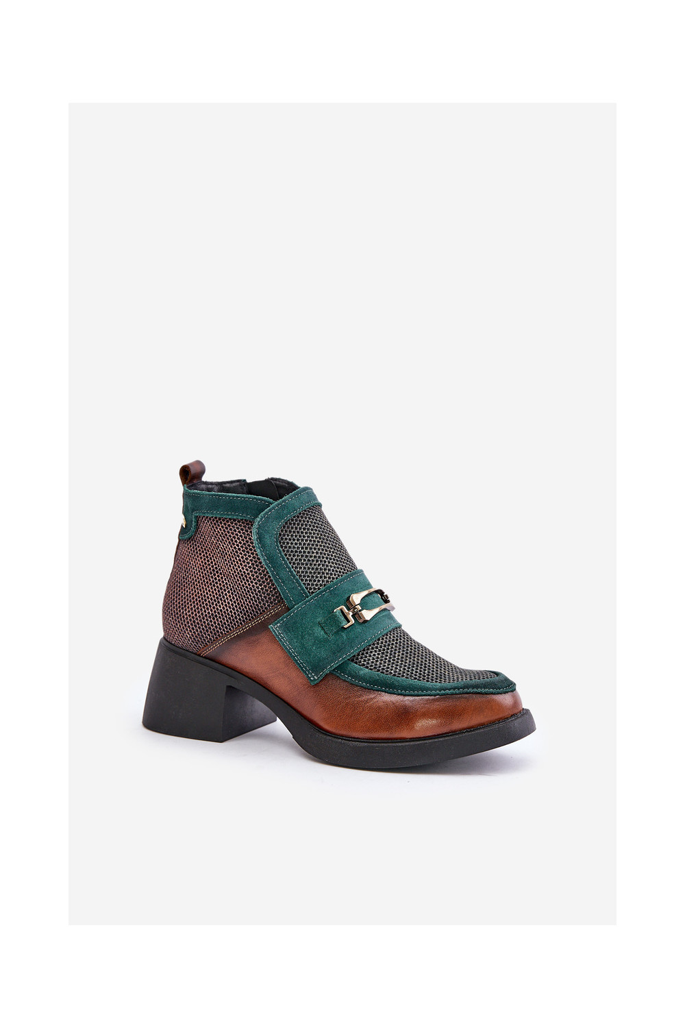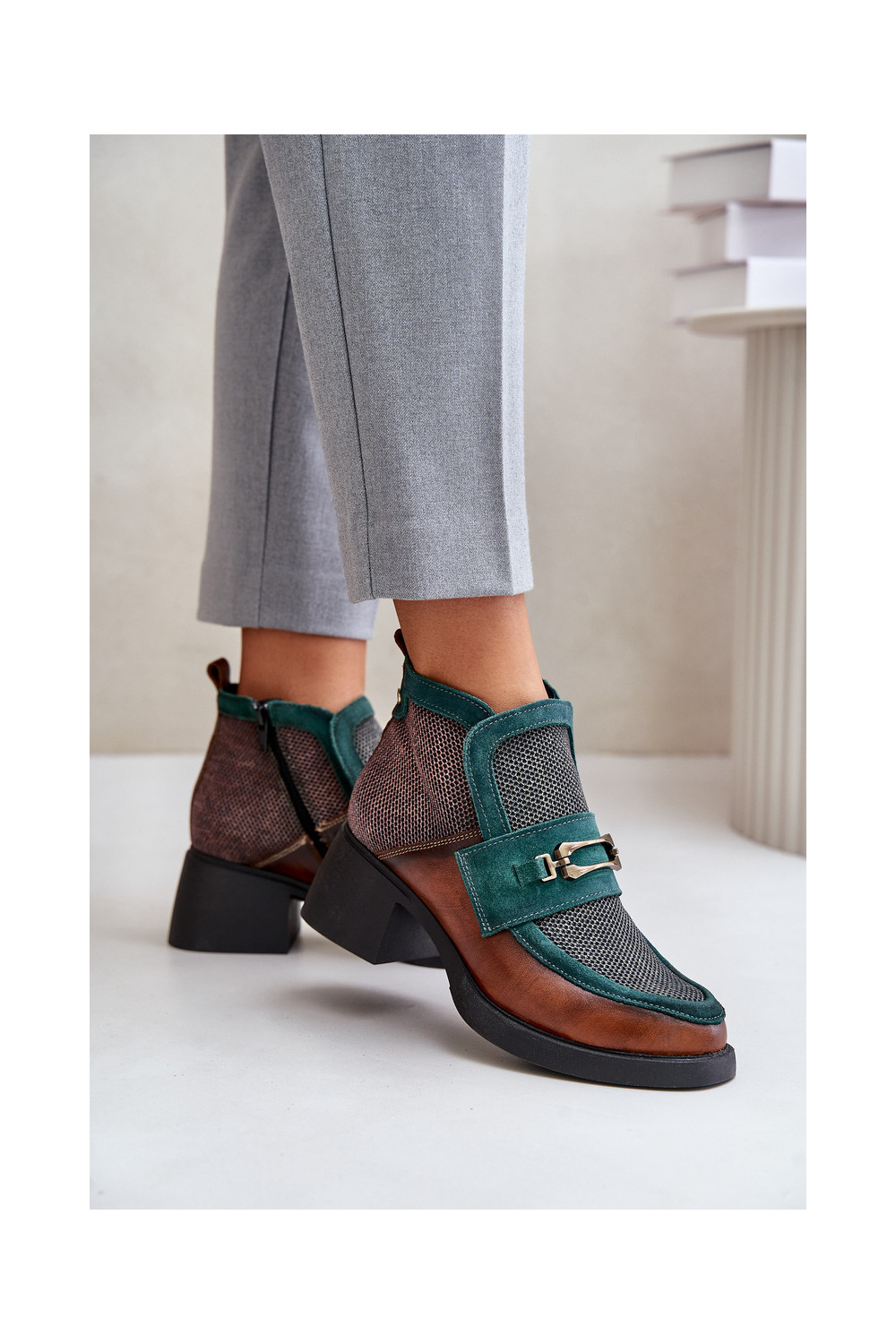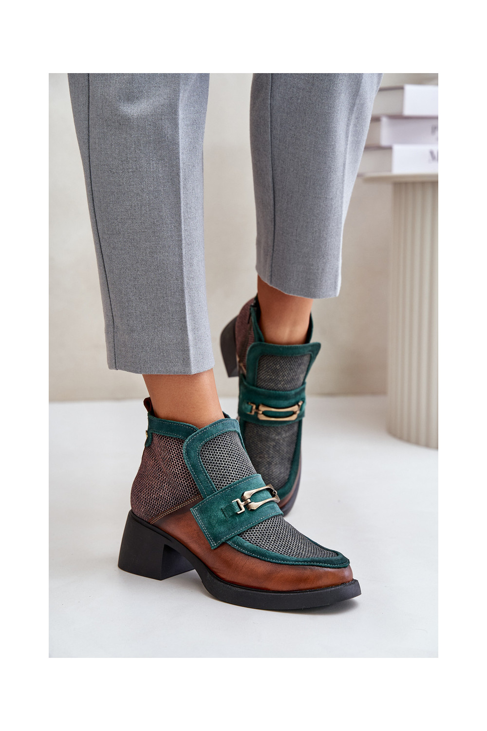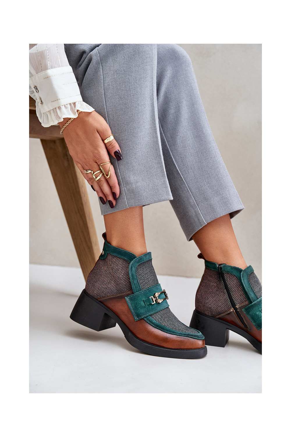 Nahast naiste kingad paksu kontsaga ornamentidega "Tai turiciejka" A6747-29 pruun-rohelise värviga