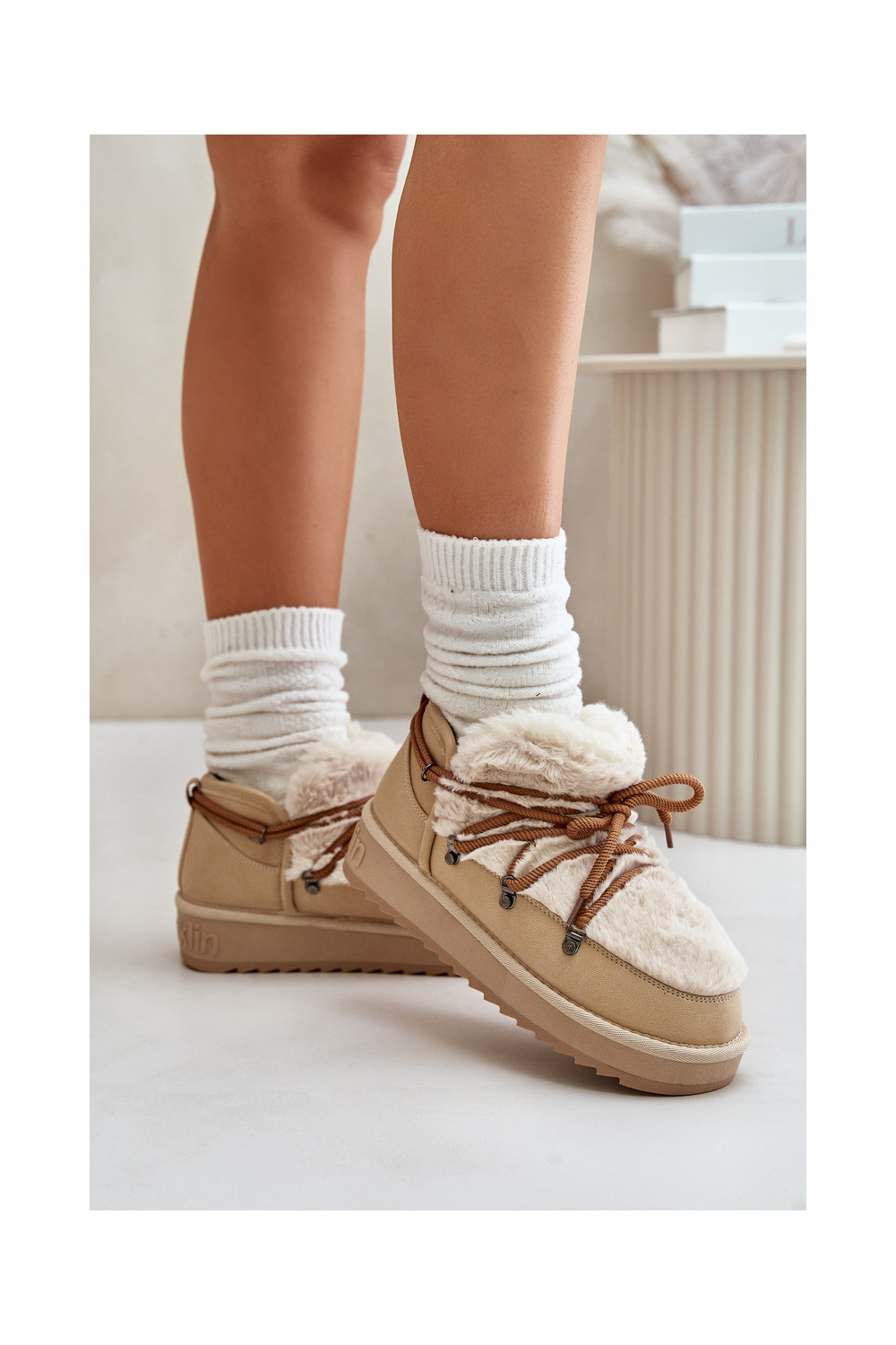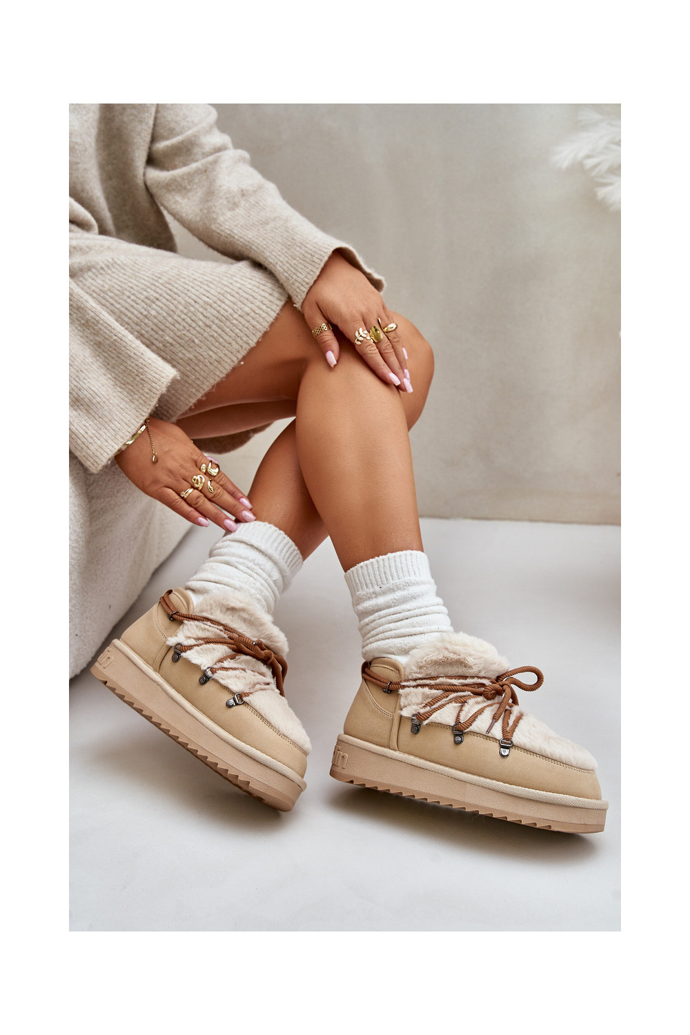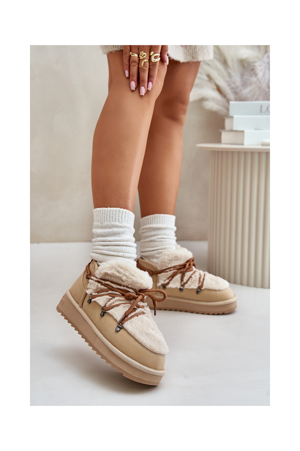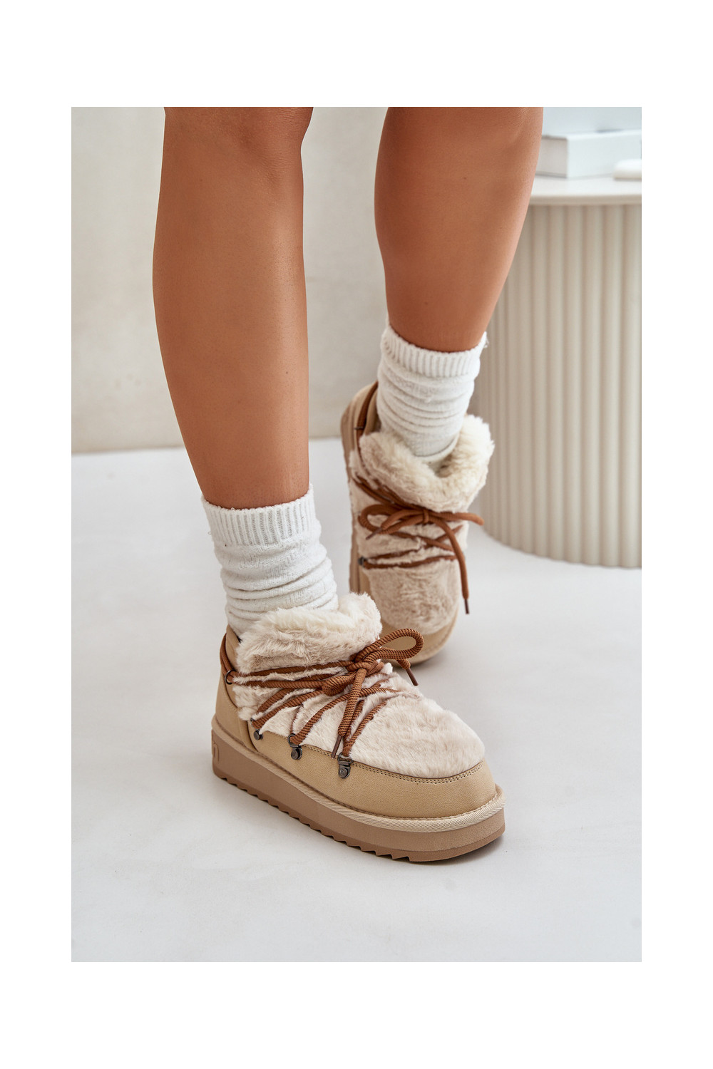nööpidega lumesaapad Laste jalanõud Noorus karusnahaga D.Franklin DFSH370011 beeži värvi