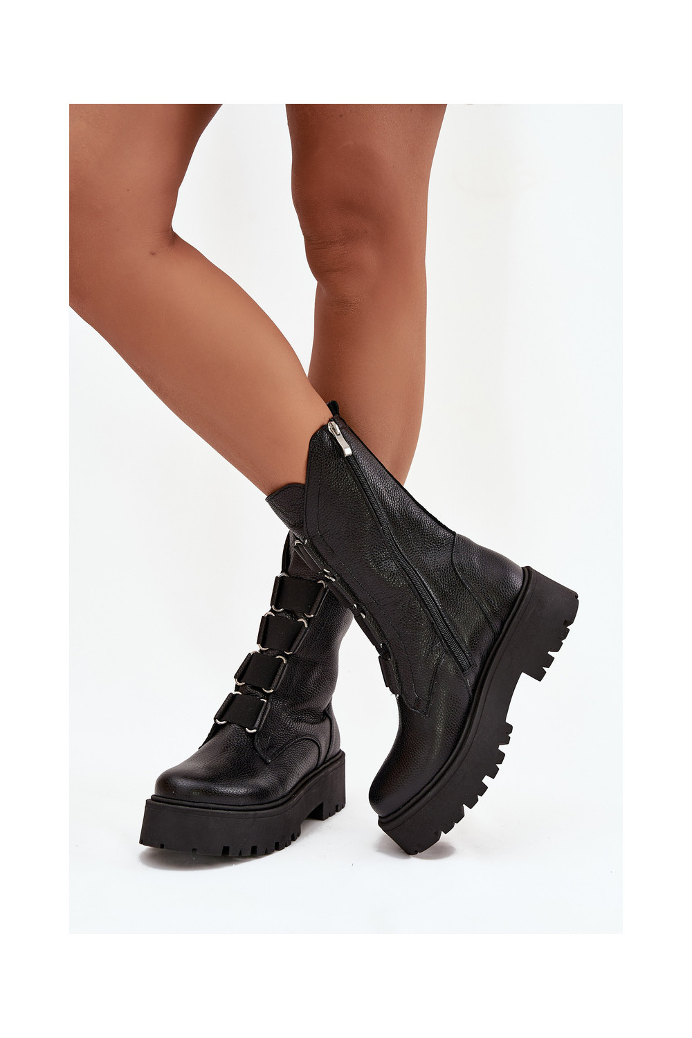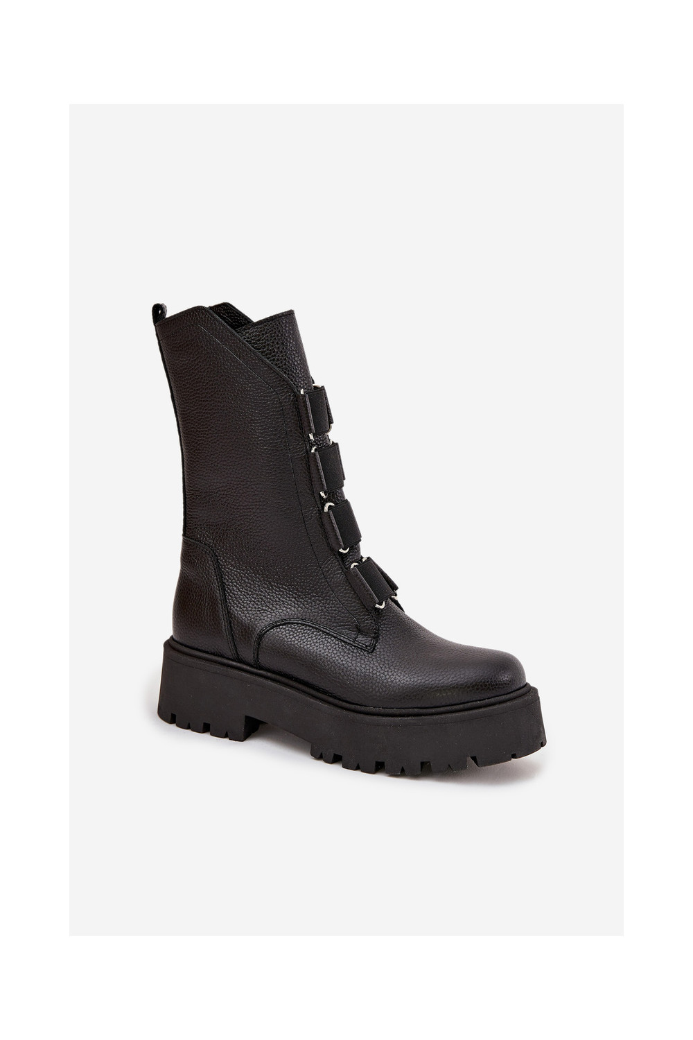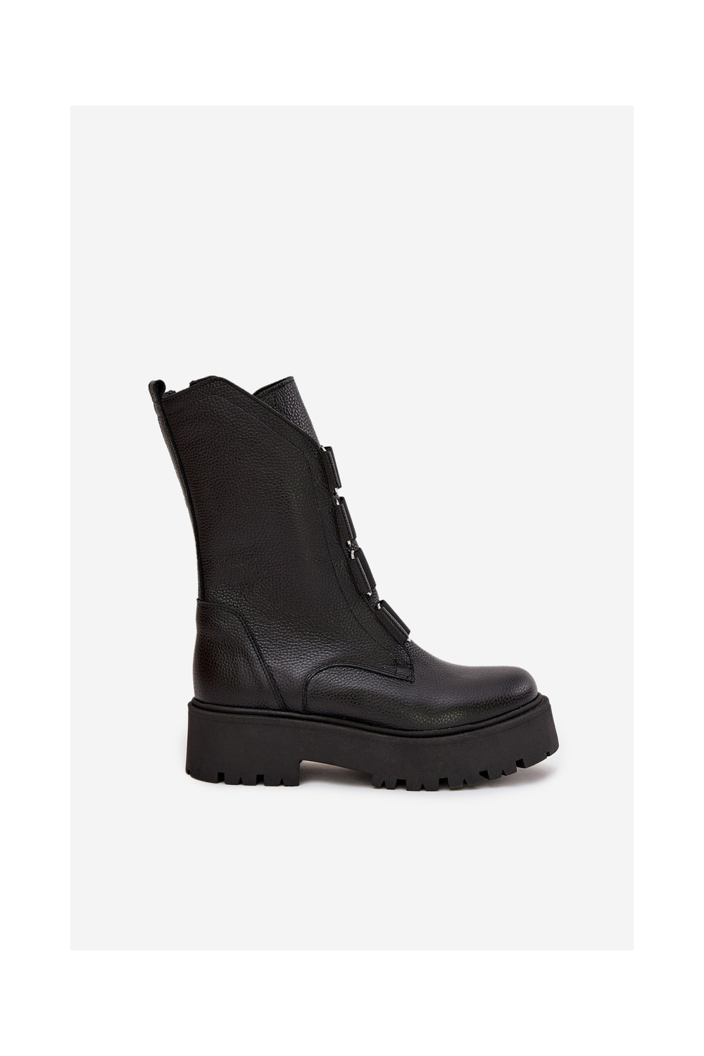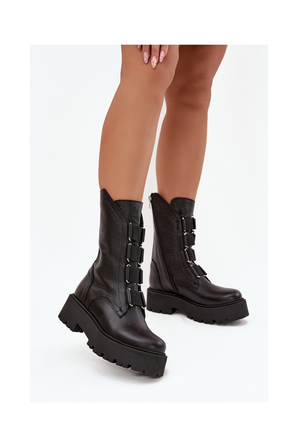 Naiste naturaalsest nahast saapad platvormiga Zazoo 3795 musta värvi