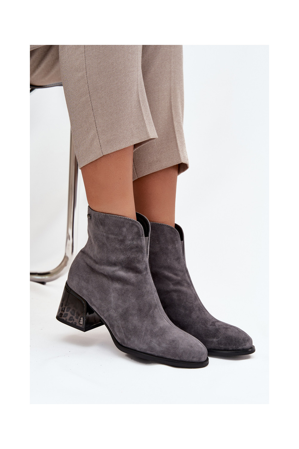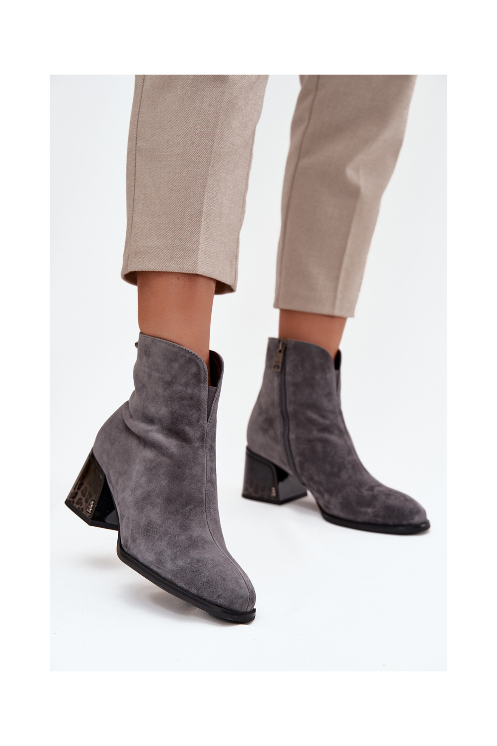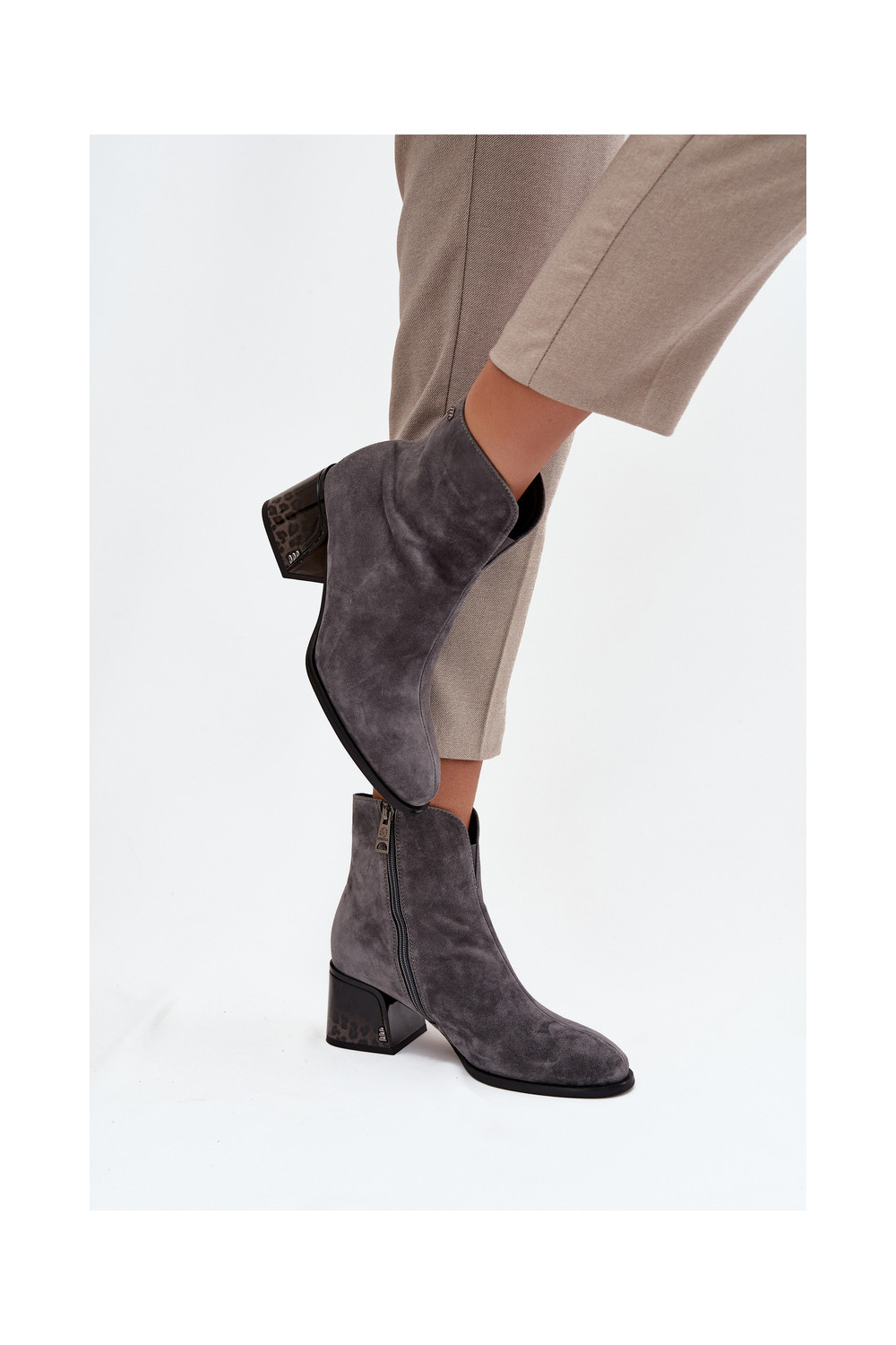Naiste naturaalsest sametist saapad kontsaga isoleeritud Vinceza 66806 halli värvi