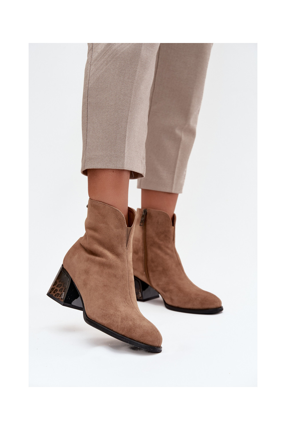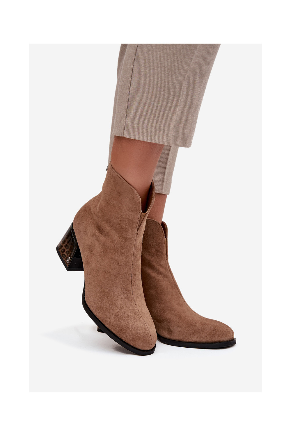 Naiste naturaalsest sametist saapad kontsaga isoleeritud Vinceza 66806 pruuni värvi