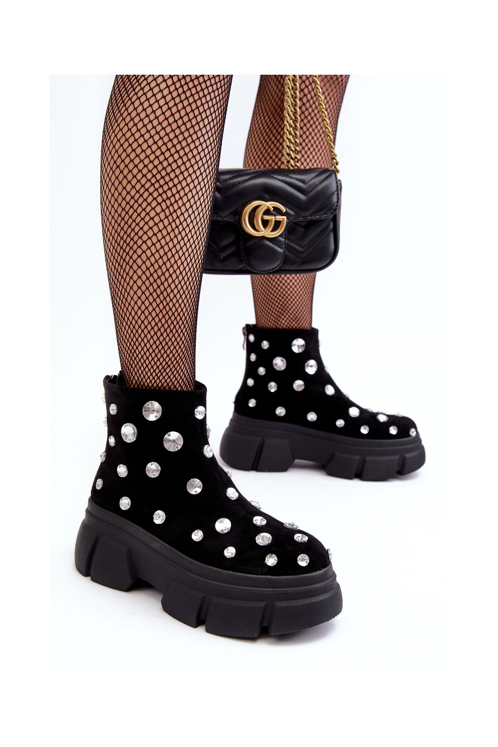 Sametist isoleeritud saapad säravate aukudega D&A MR52-205 musta värvi