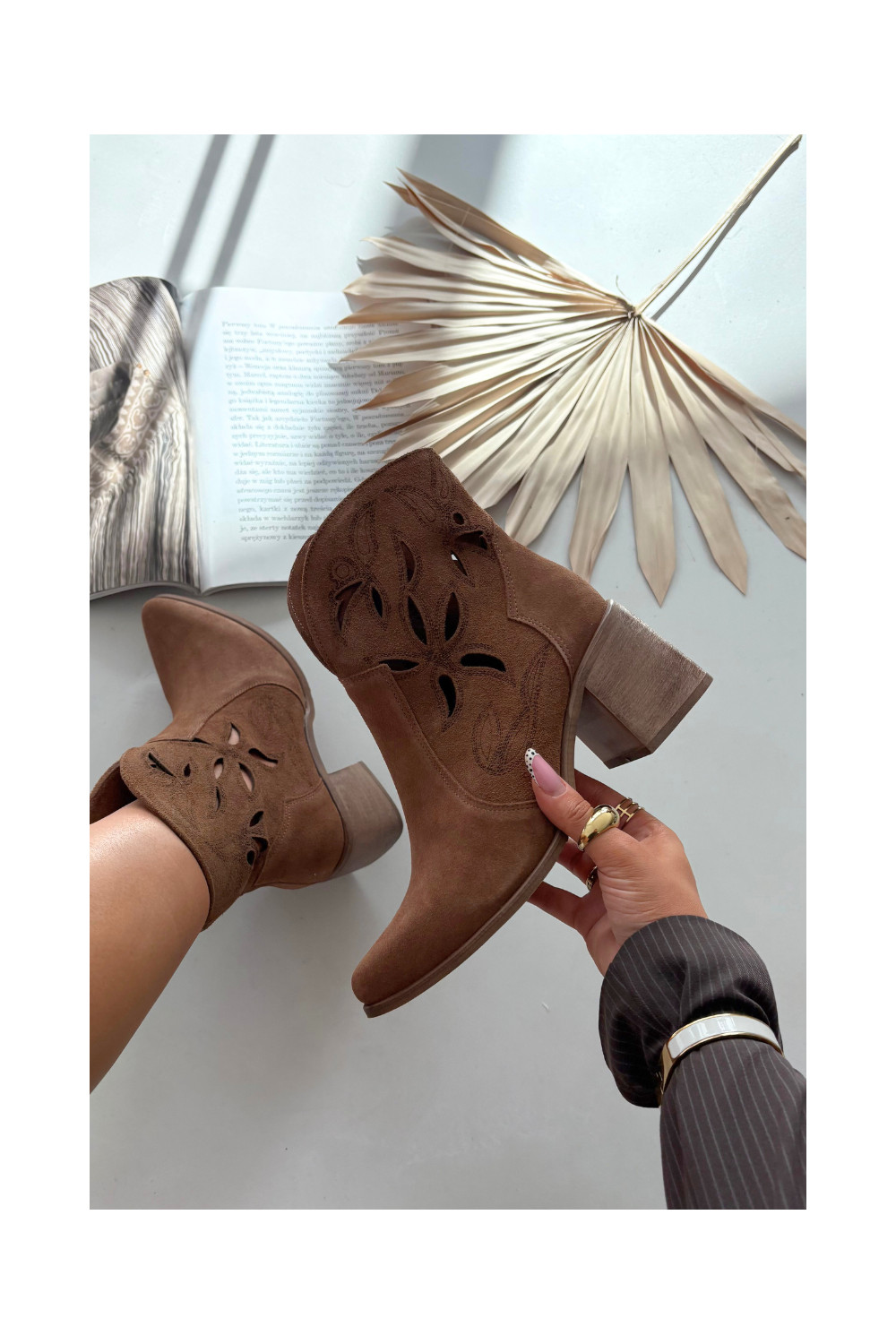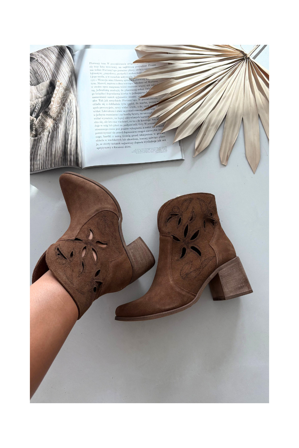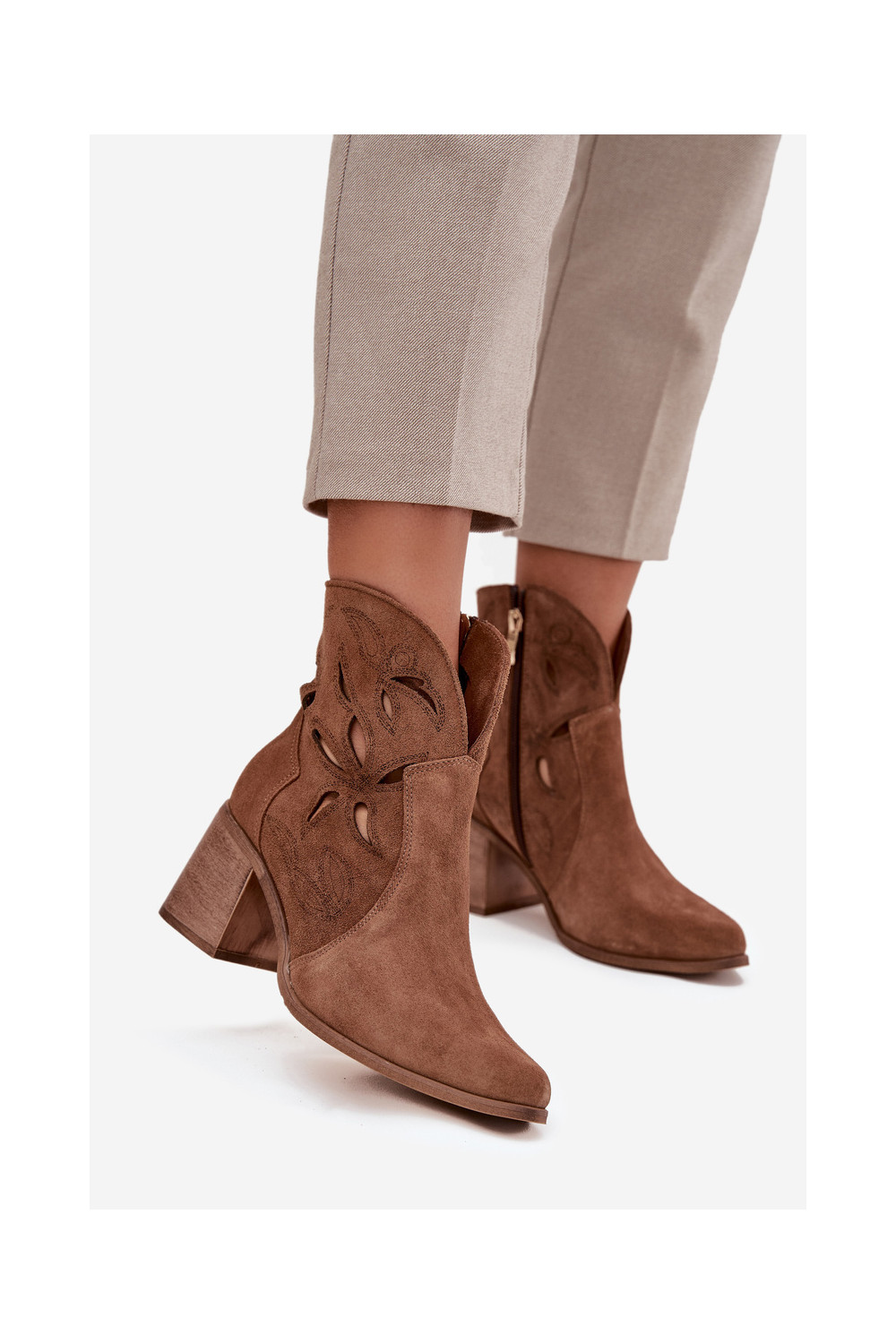 Naiste saapad aukude elementidega naturaalsest seemisnahast kontsadega Zazoo 3690 pruunid