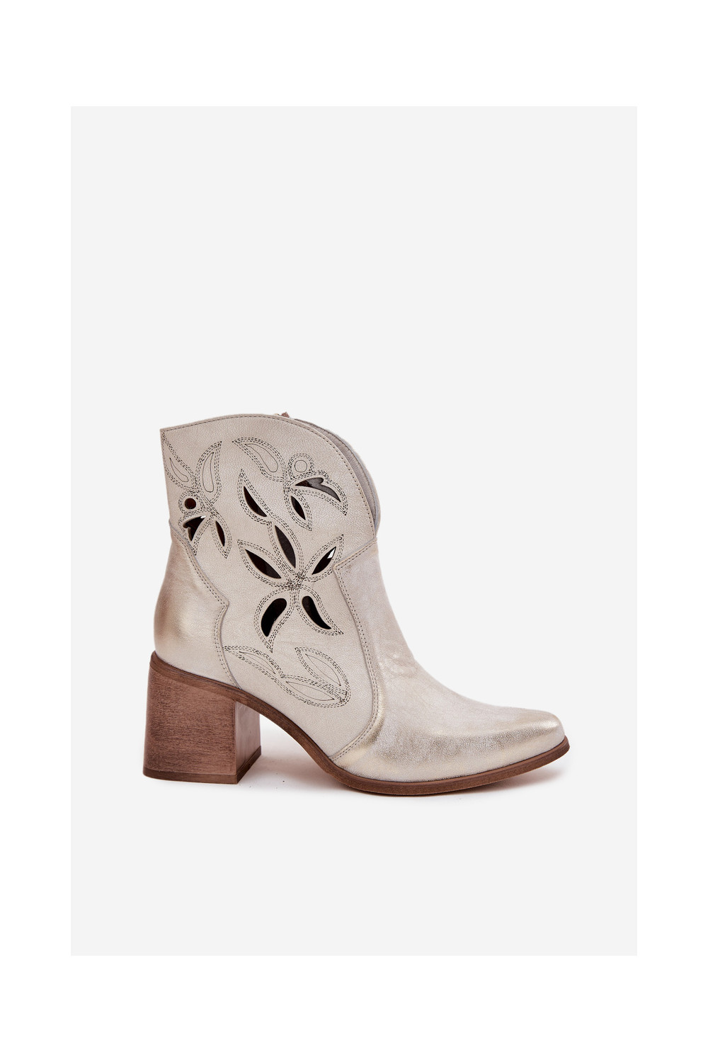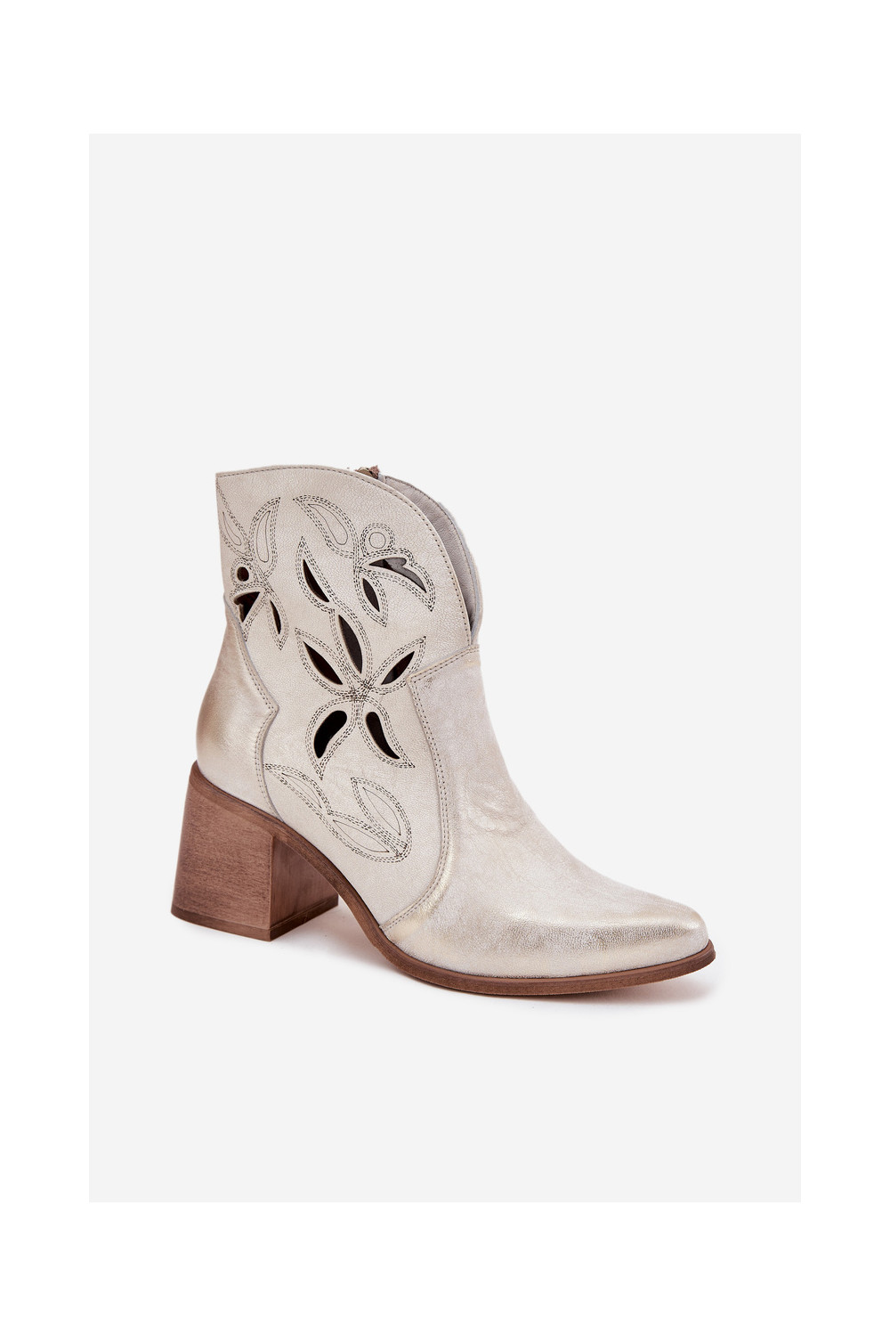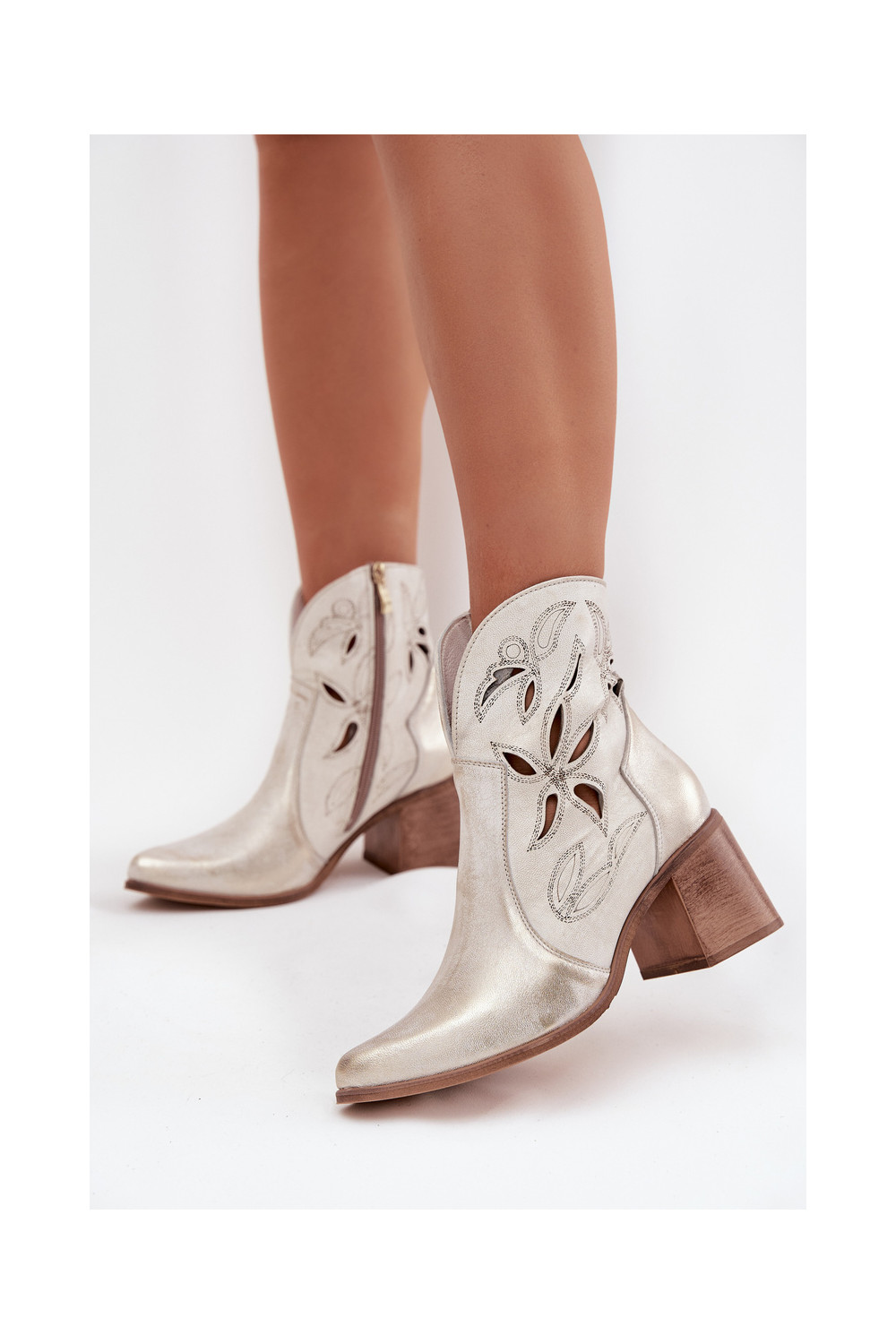 Naiste saapad aukude elementidega naturaalsest nahast kontsadega Zazoo 3690 kuldsed kuldse efektiga