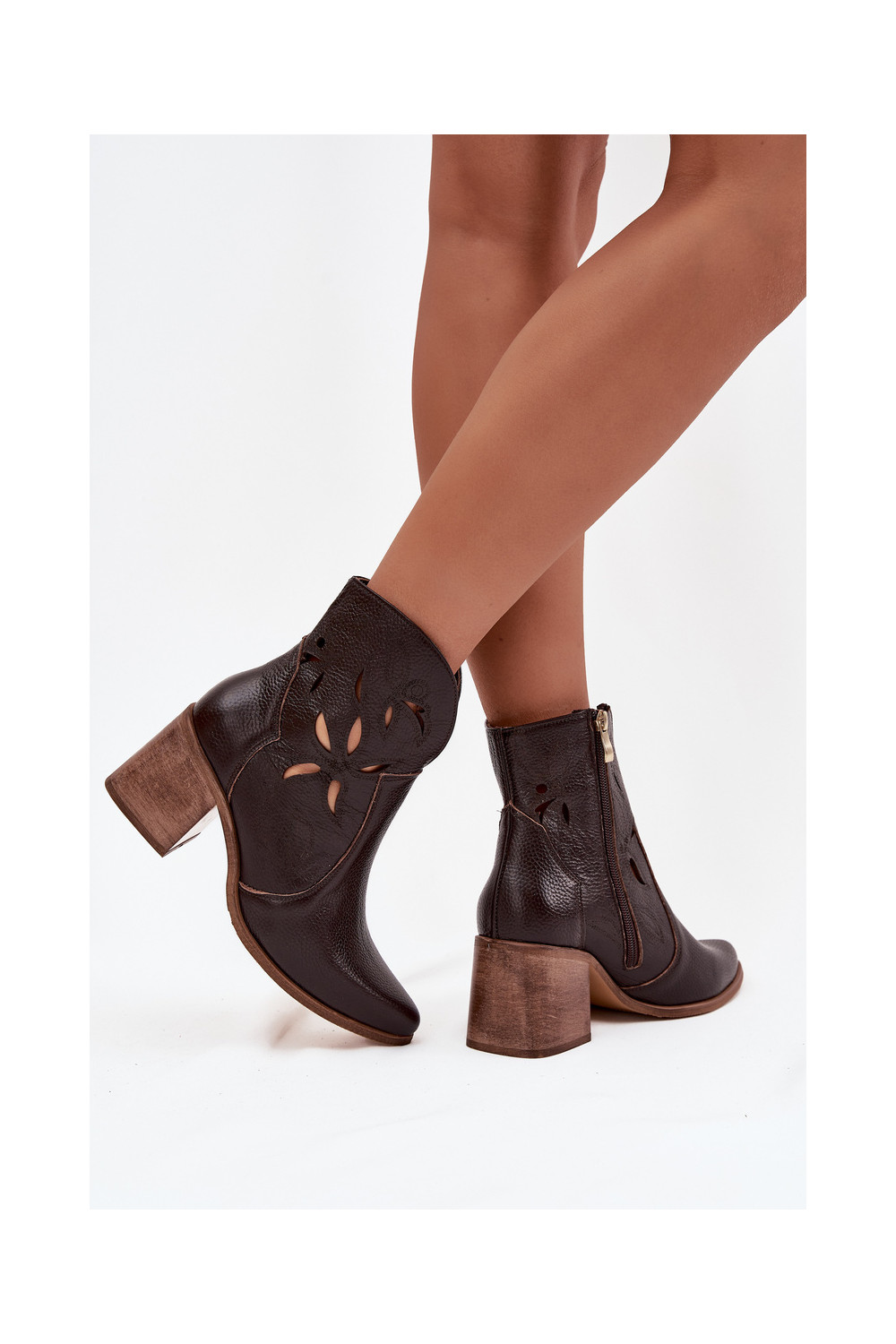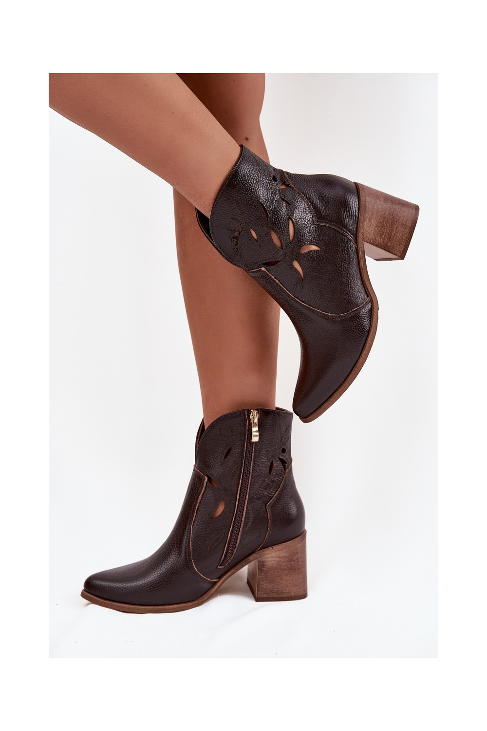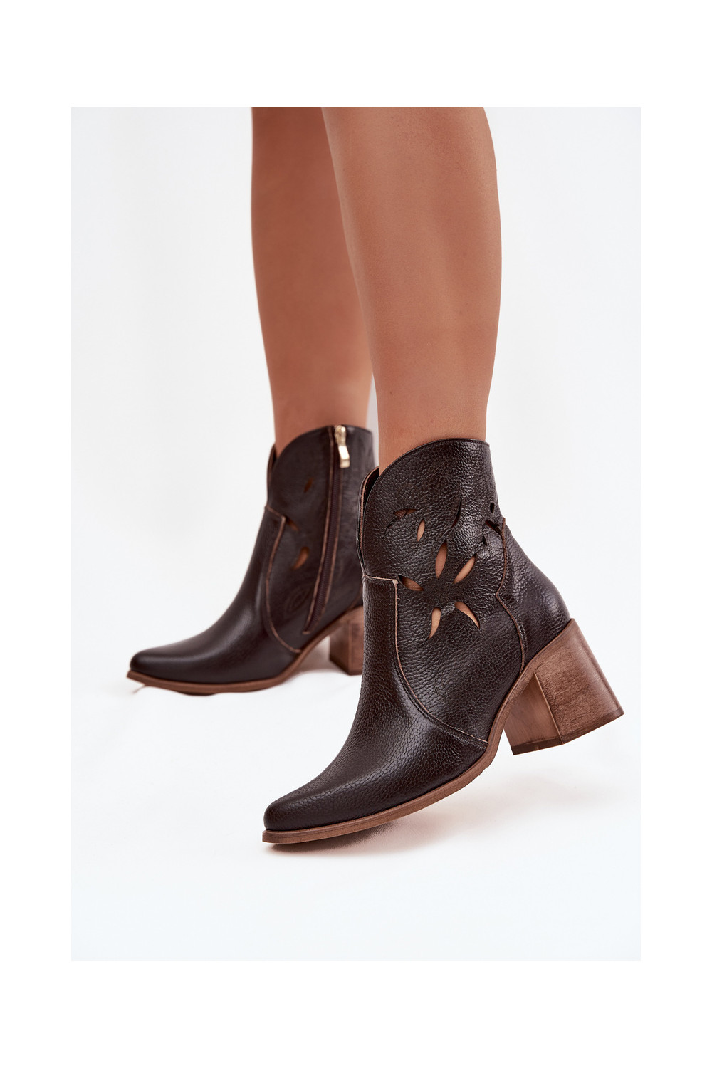 Naiste saapad aukude elementidega naturaalsest nahast kontsadega Zazoo 3690 šokolaadised
