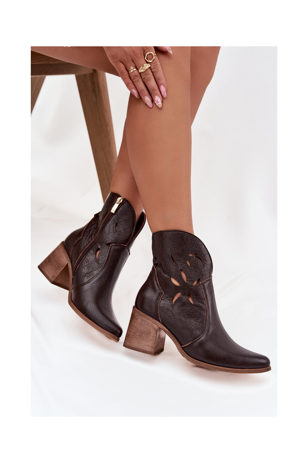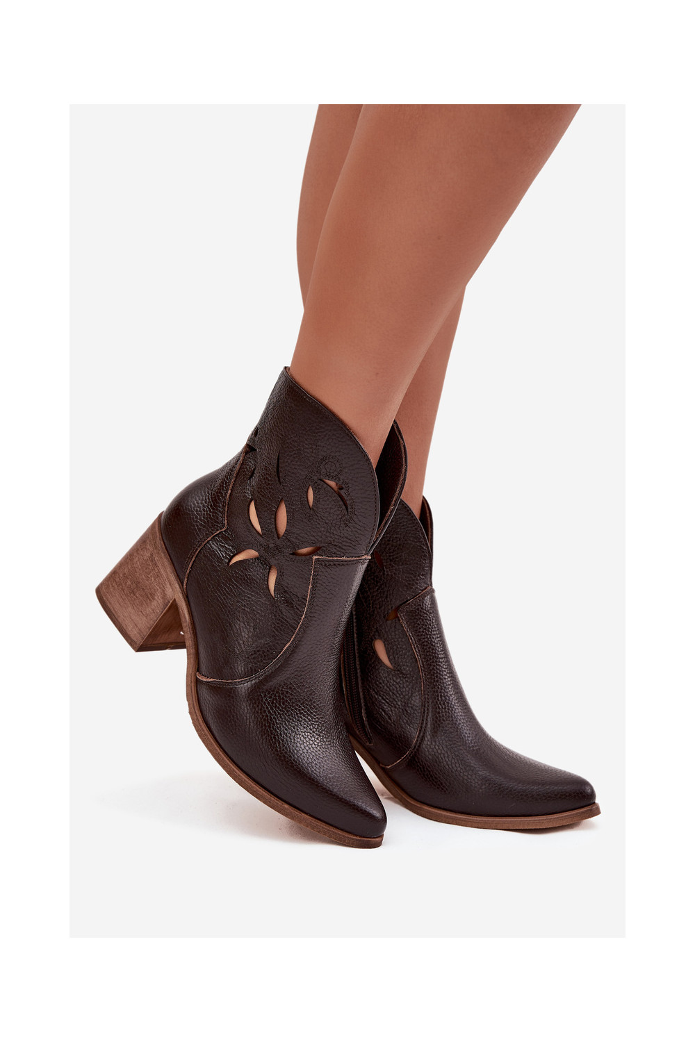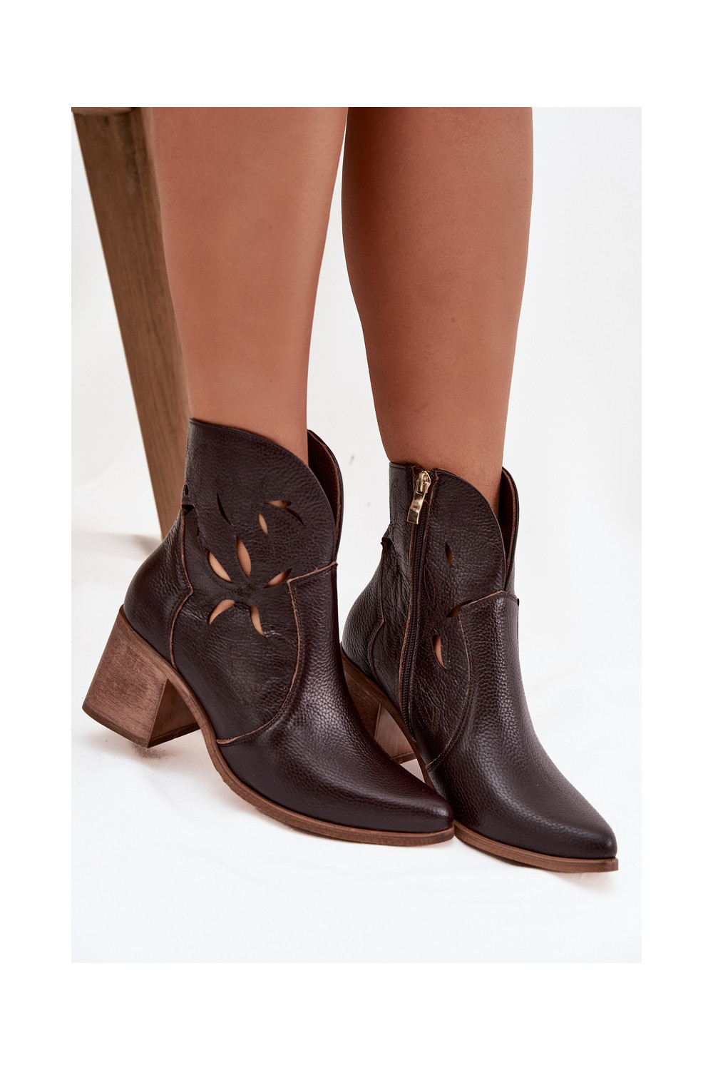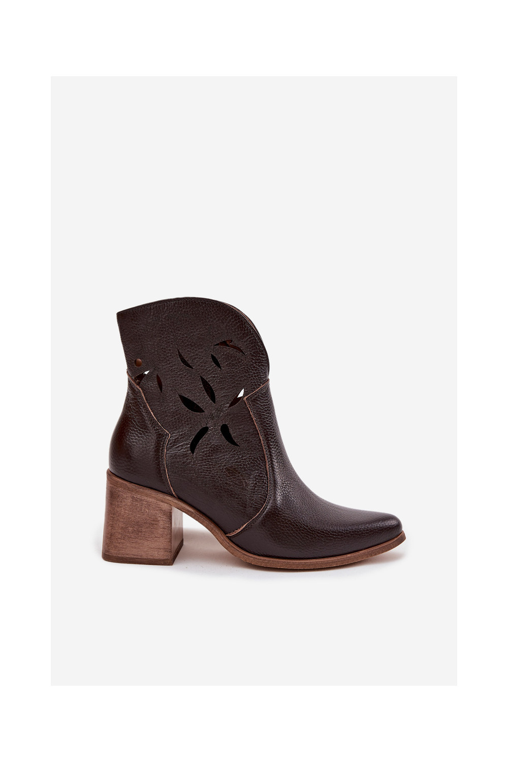 Naiste saapad aukude elementidega naturaalsest nahast kontsadega Zazoo 3690 šokolaadised