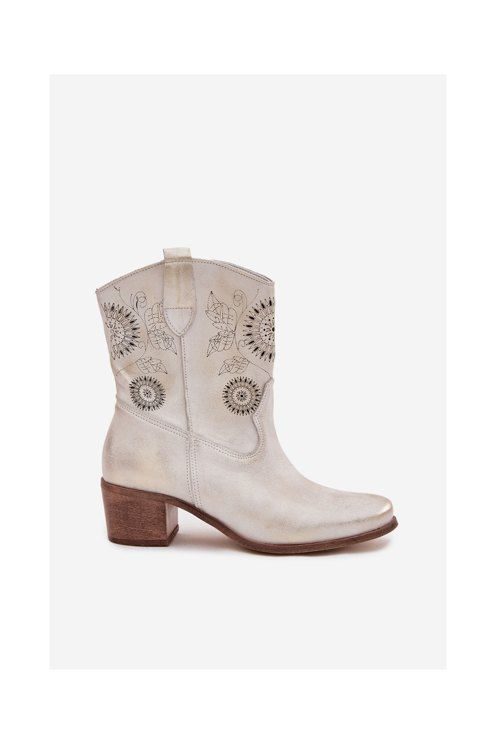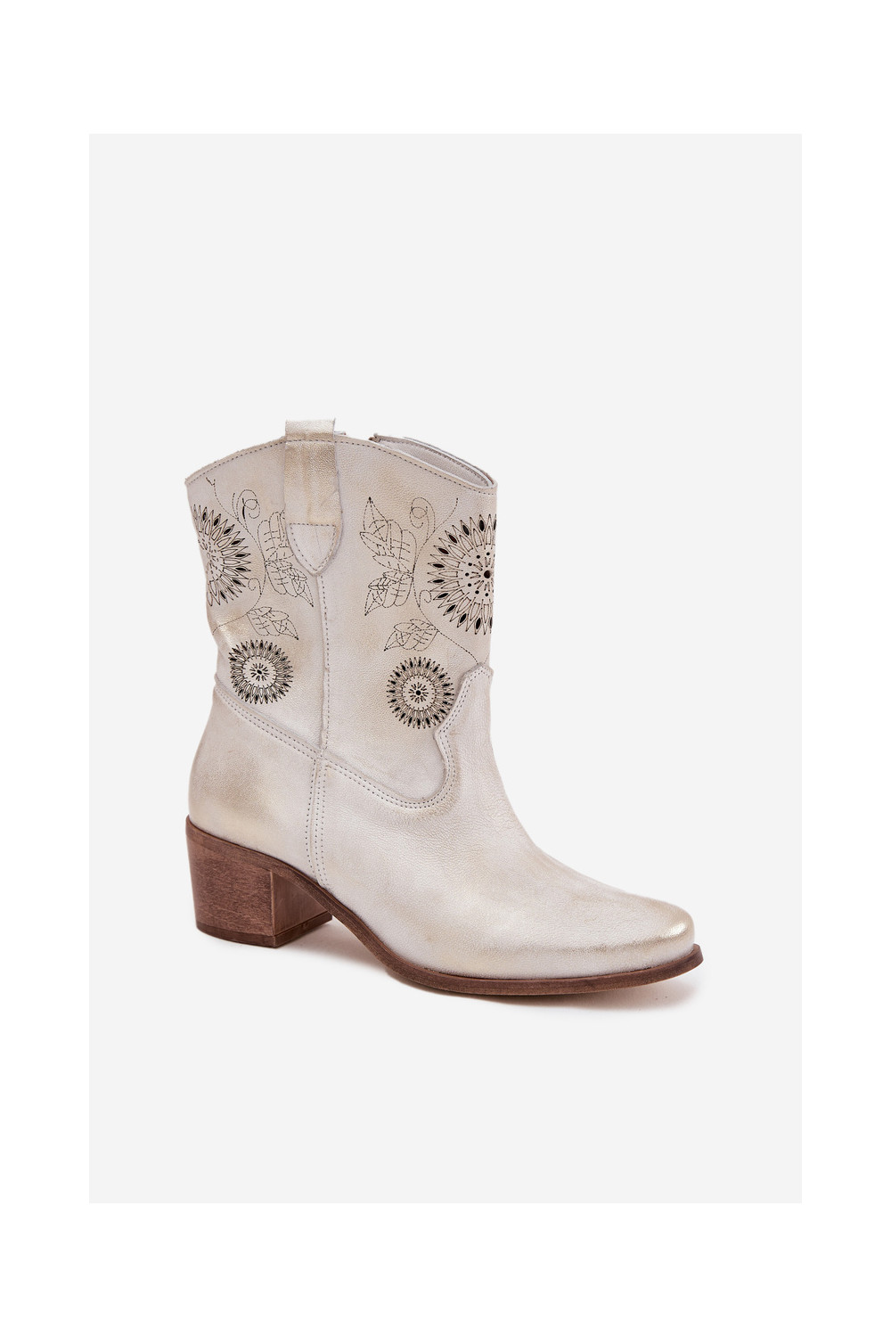 Naiste seemisnahast saapad aukude elementidega kontsadega Zazoo 3844 kuldsed kuldse efektiga
