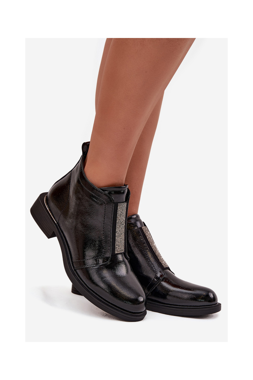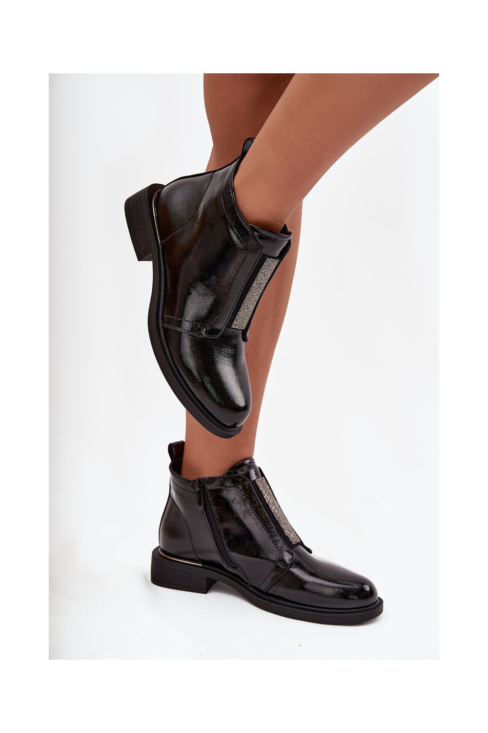 Läikivad soojad naiste saapad madala kontsaga S.Barski HY52-506 must