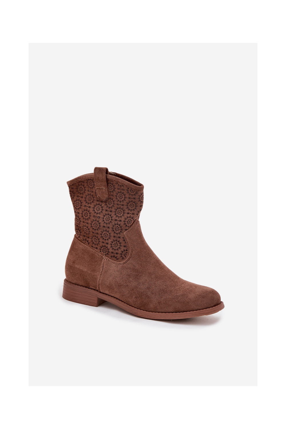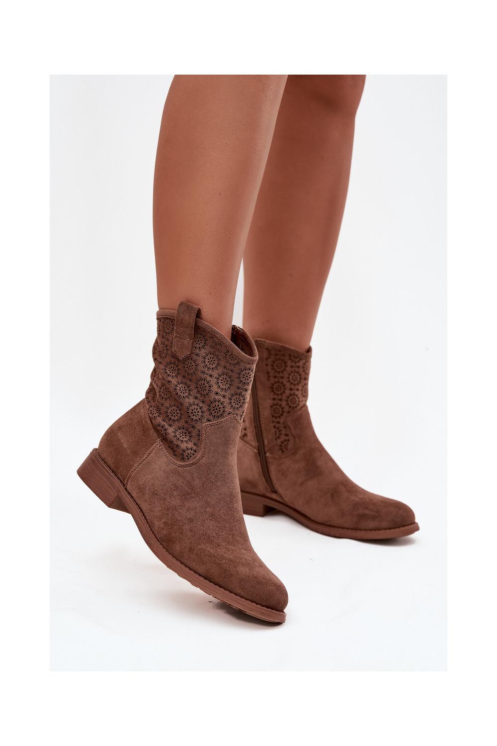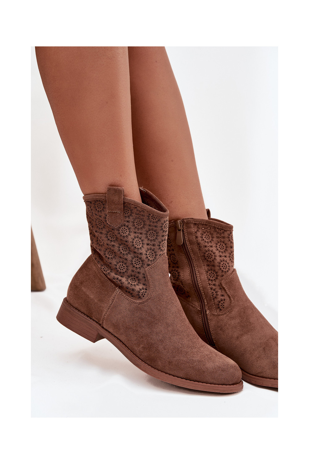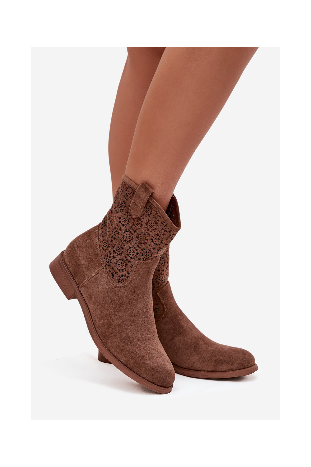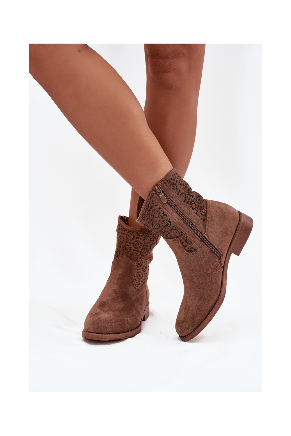 Naiste saapad laia kontsaga ja pitsilise elemendiga S.Barski HY52-530 pruun