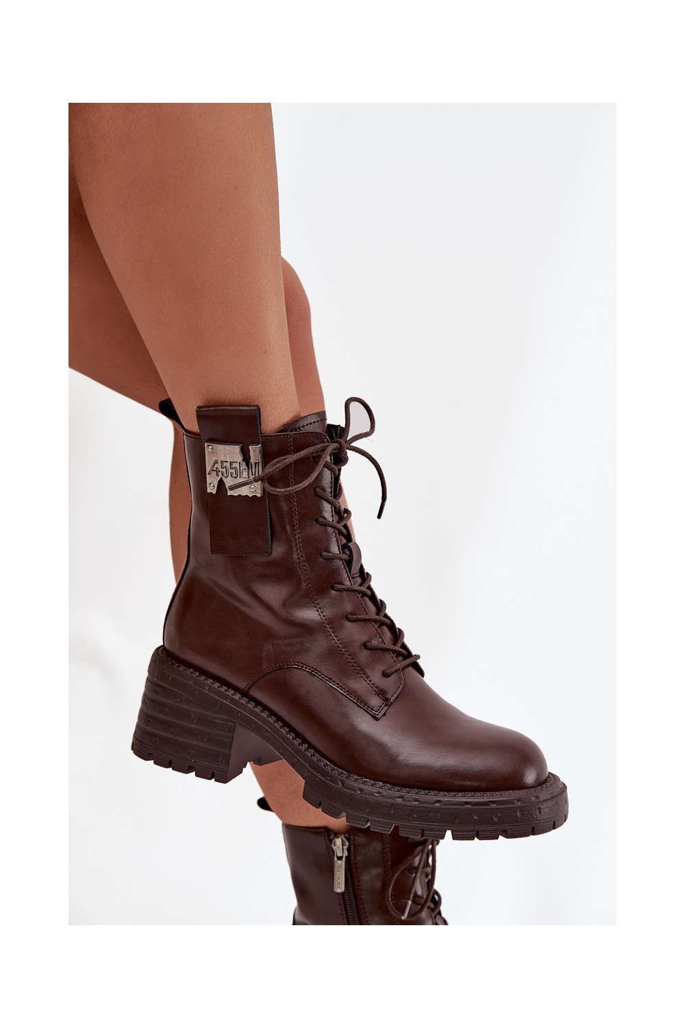 Nahast naiste töösaapad platvormiga ja kaunistustega Artiker 57C0213 pruun