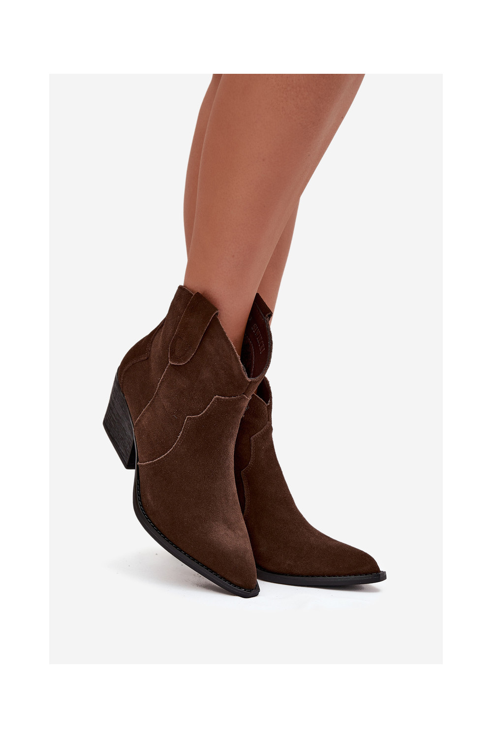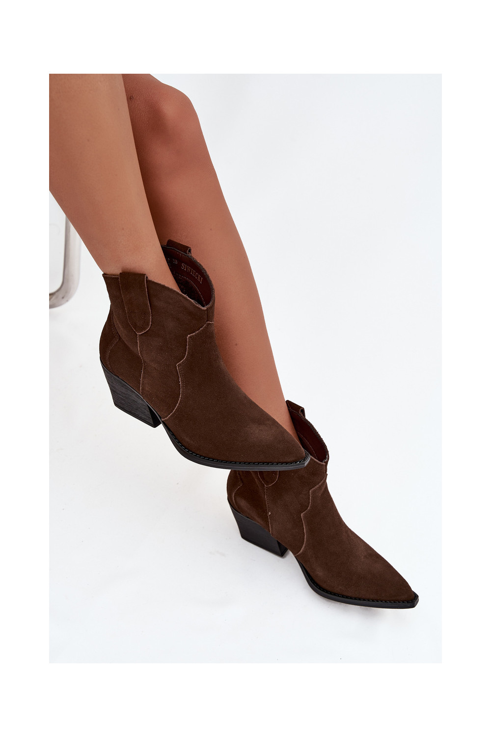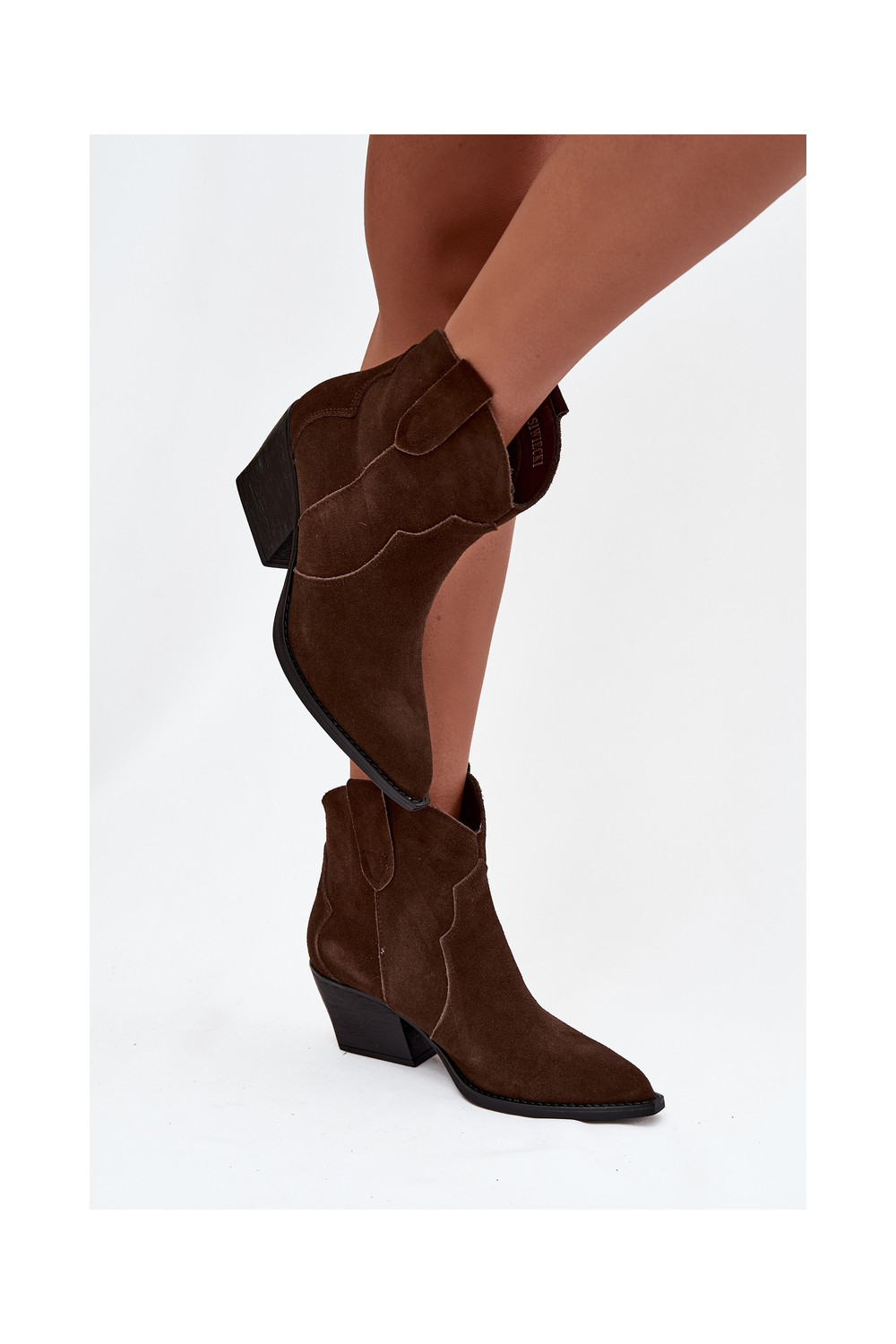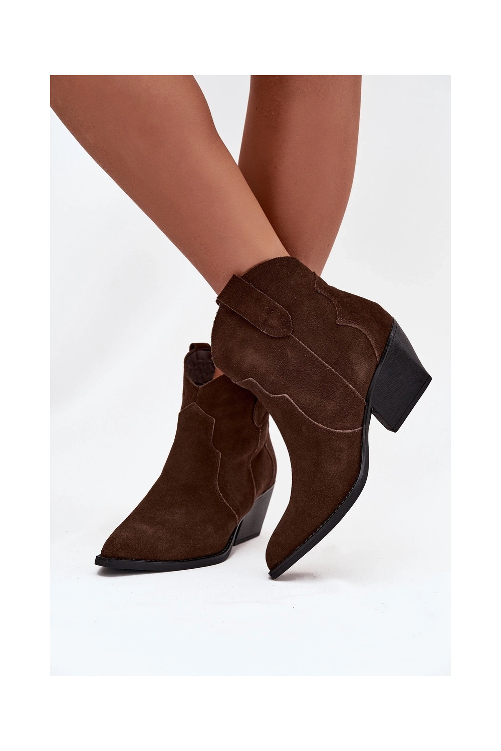 Keenud kauboistiilis naiste saapad naturaalsest sametist Beretta šokolaadipruun