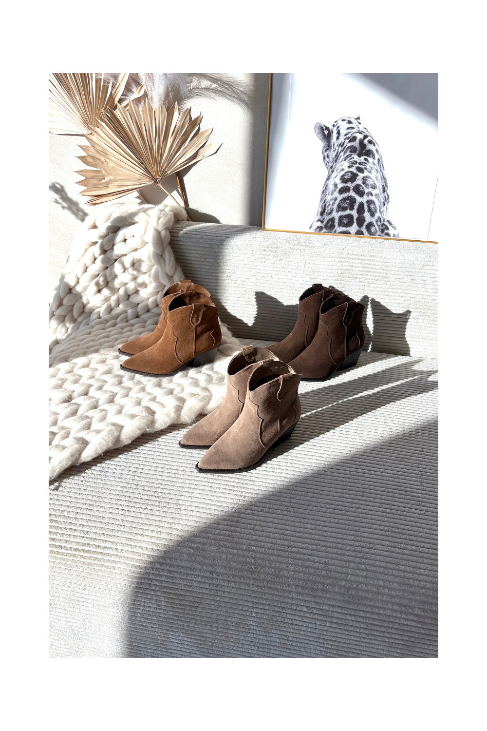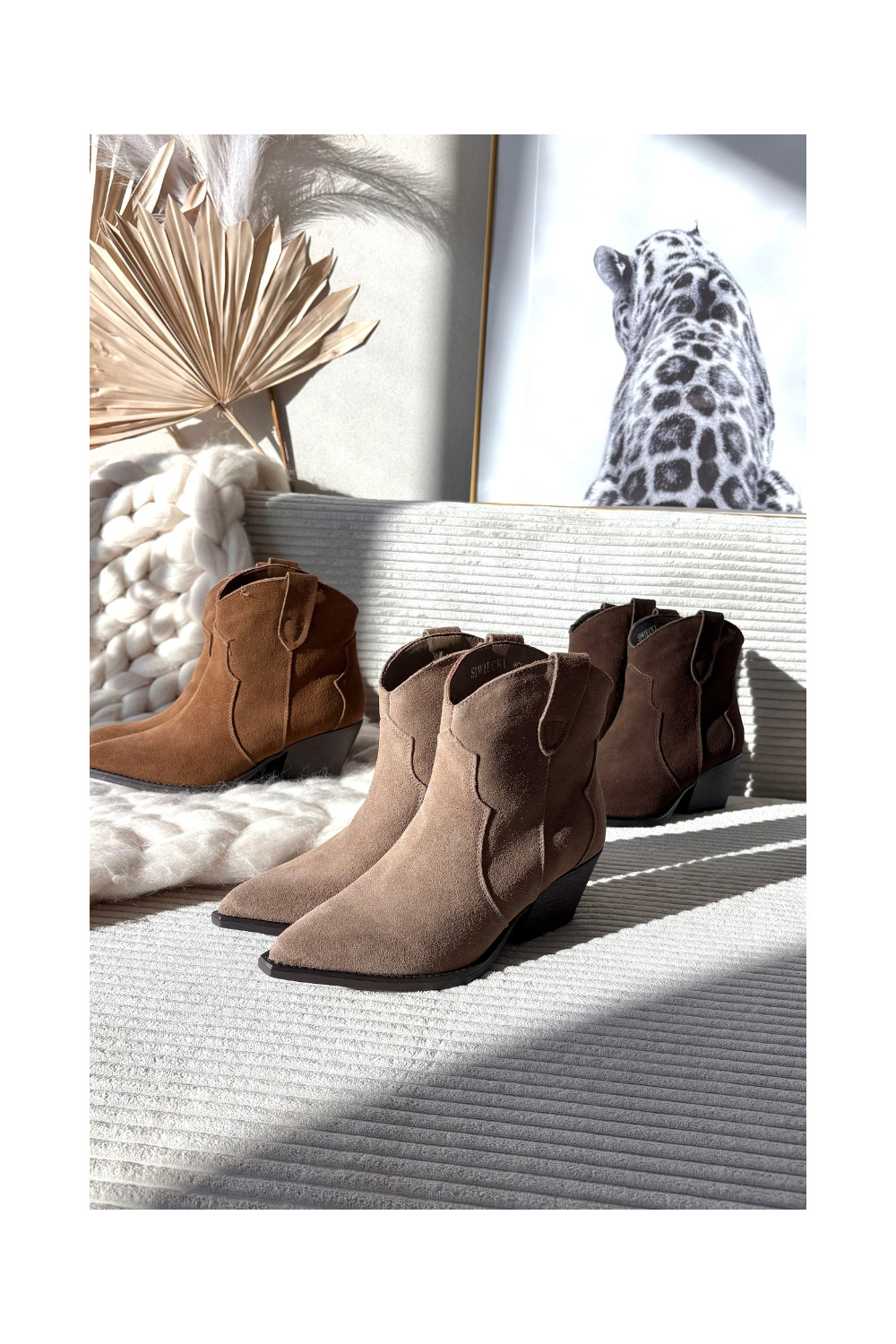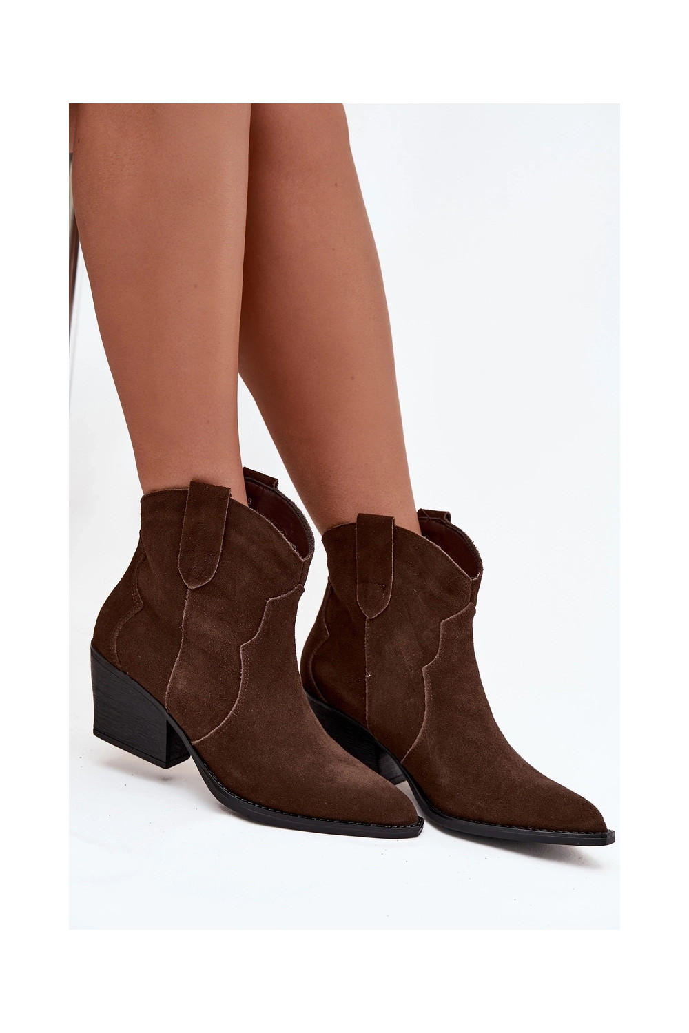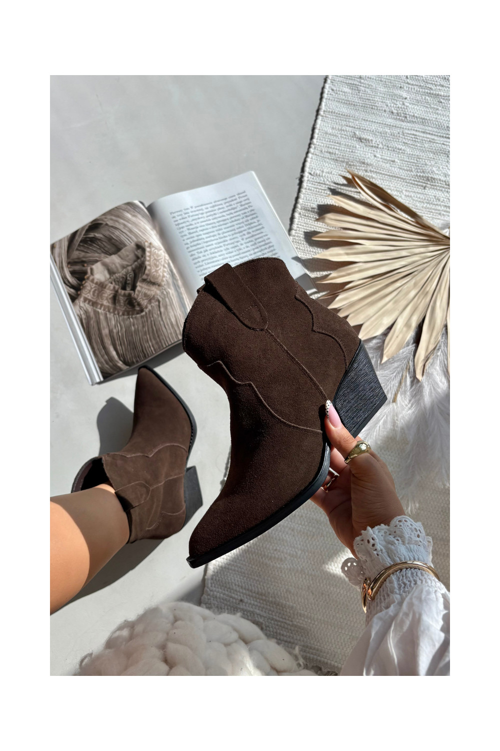 Keenud kauboistiilis naiste saapad naturaalsest sametist Beretta šokolaadipruun