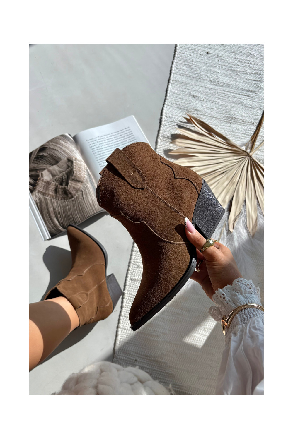 Keenud kauboistiilis naiste saapad naturaalsest sametist Beretta pruun
