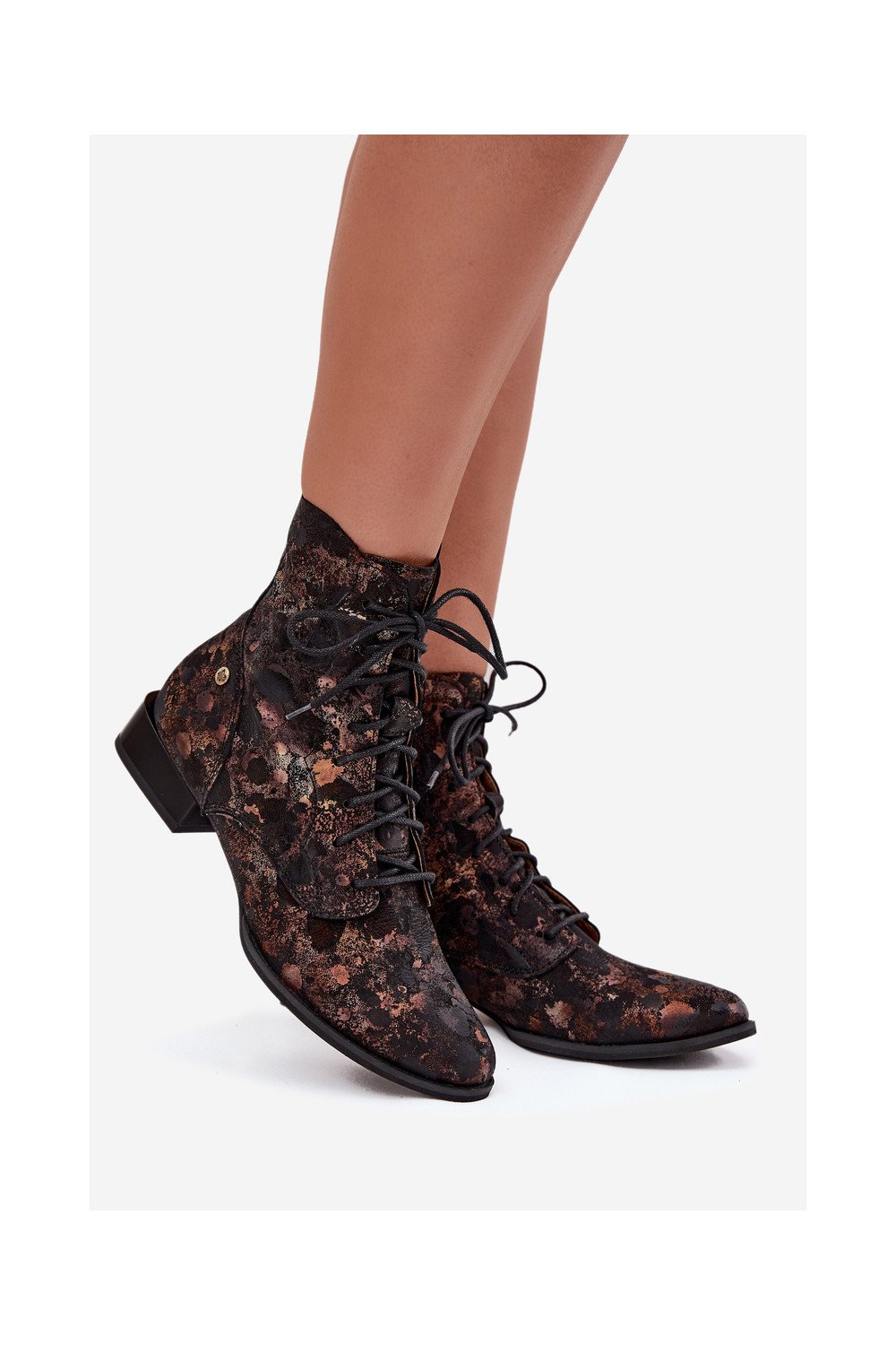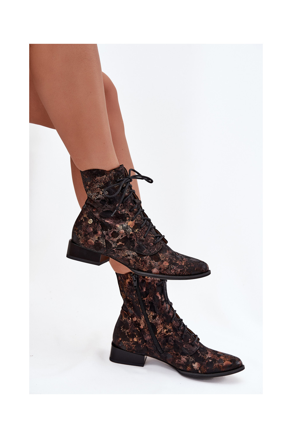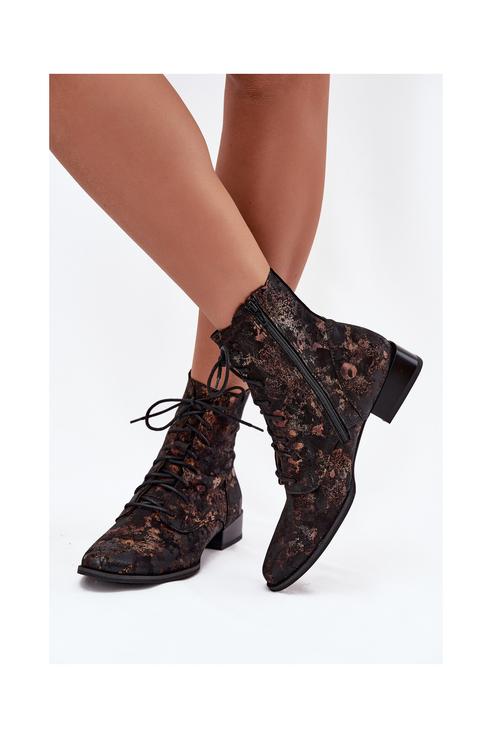 Mustriga sametised poolsaapad laia kontsaga Tai turiciejka 06391-02 musta ja kuldse värviga