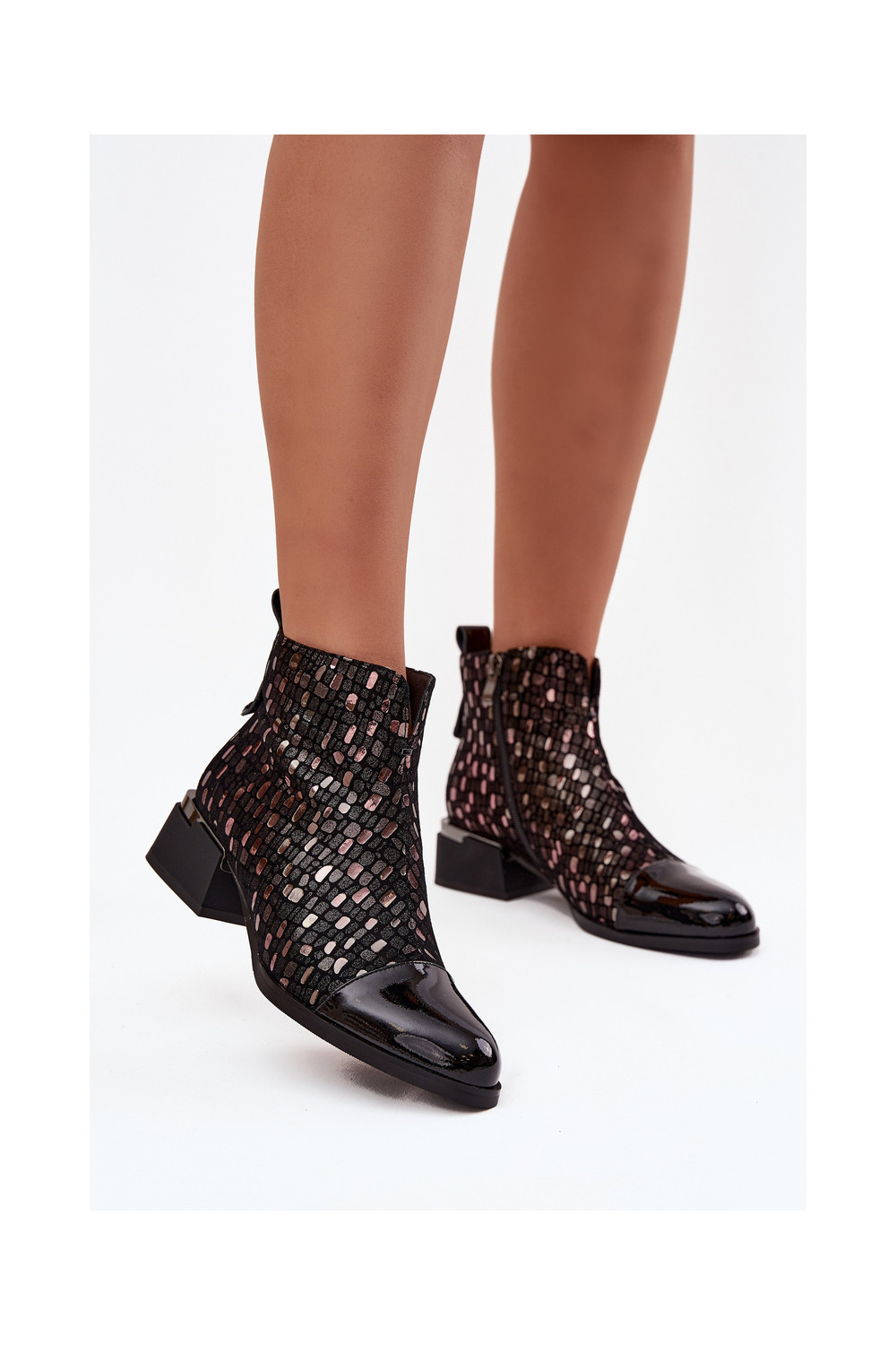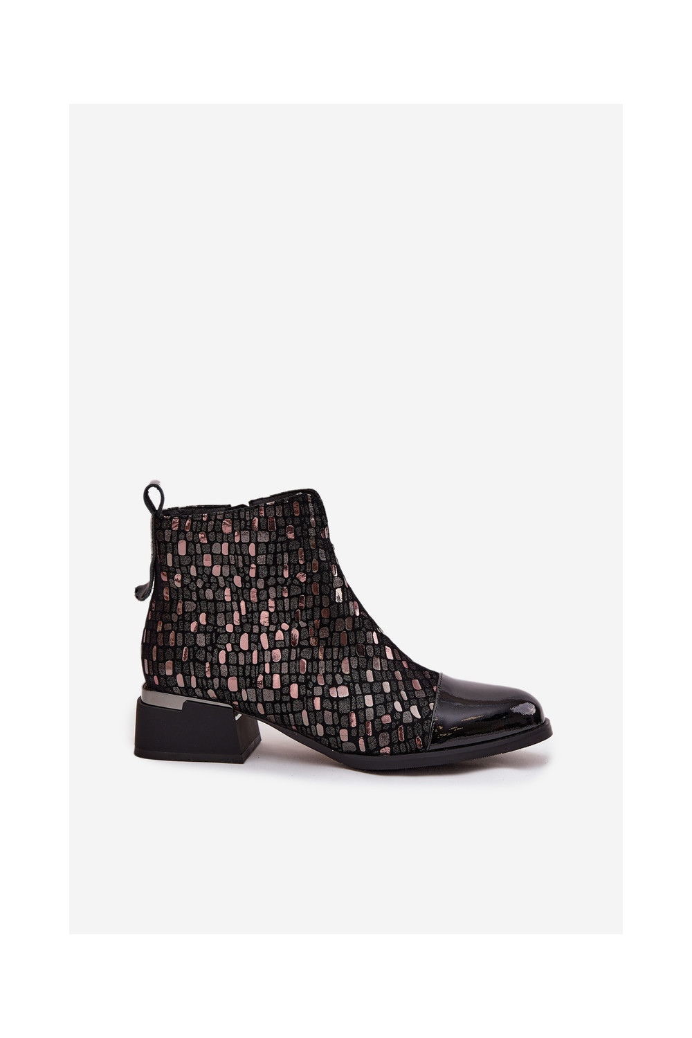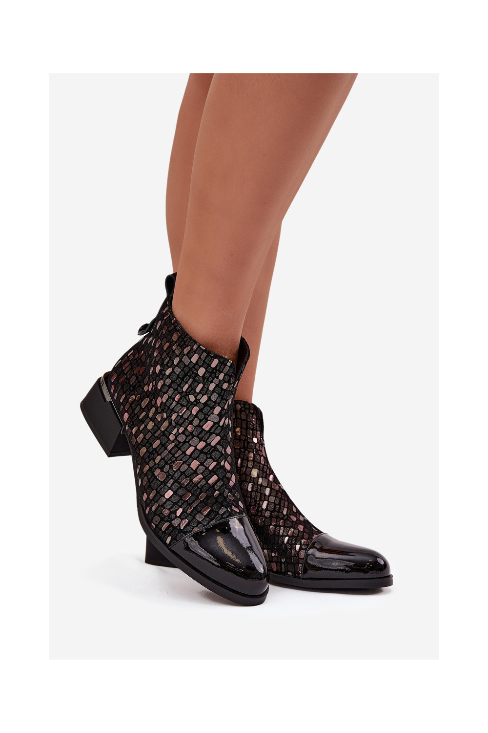 Naiste saapad naturaalsetest nahast lakiefektiga madala kontsaga D&A LZ52-960 musta värvi