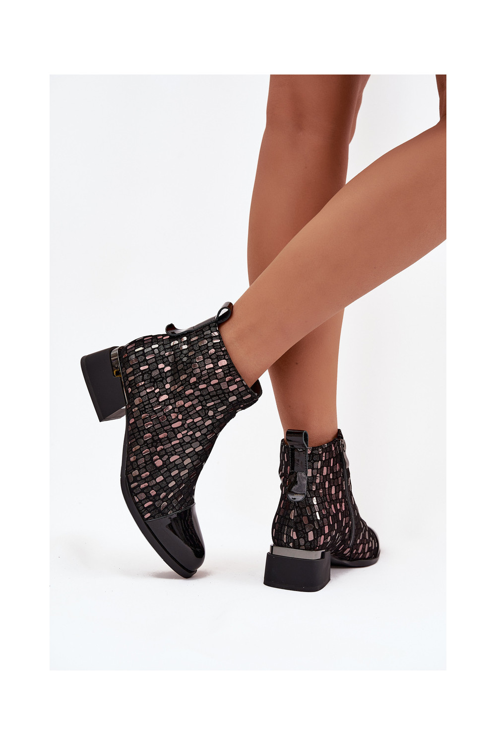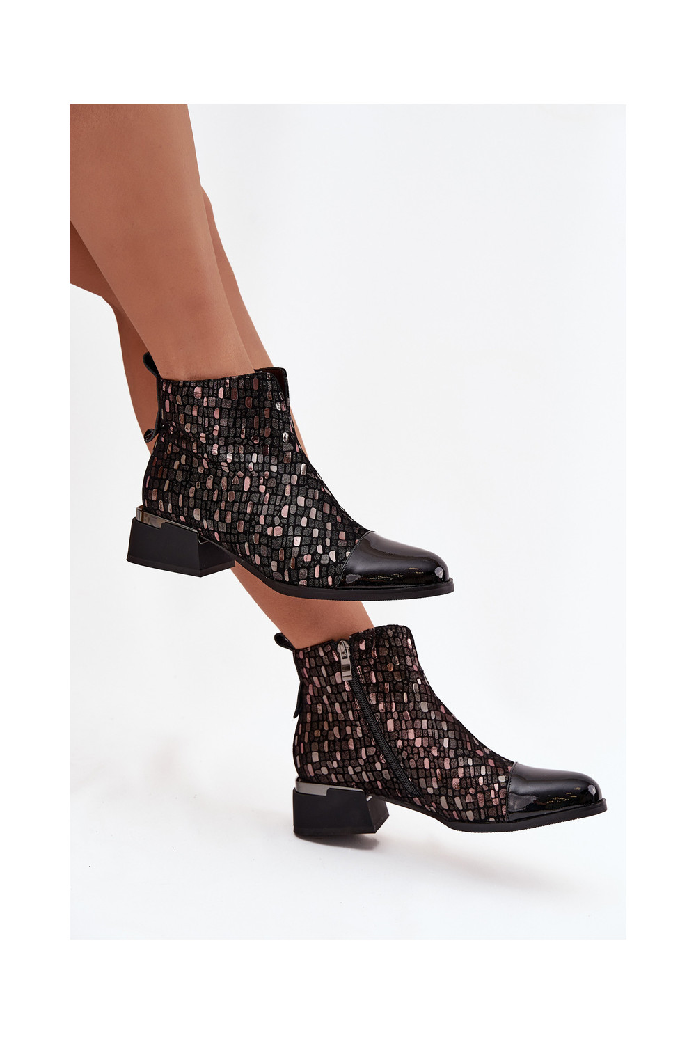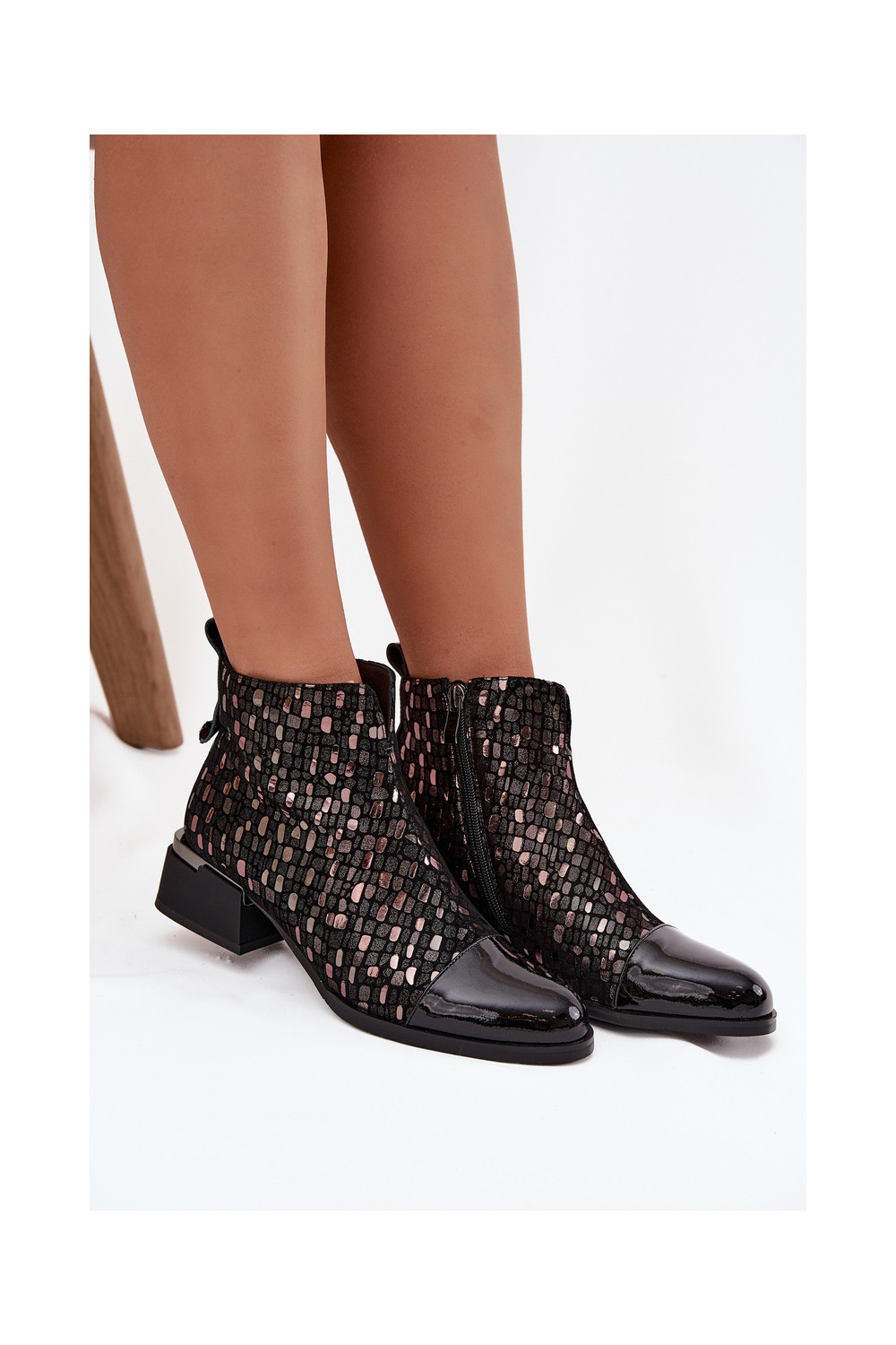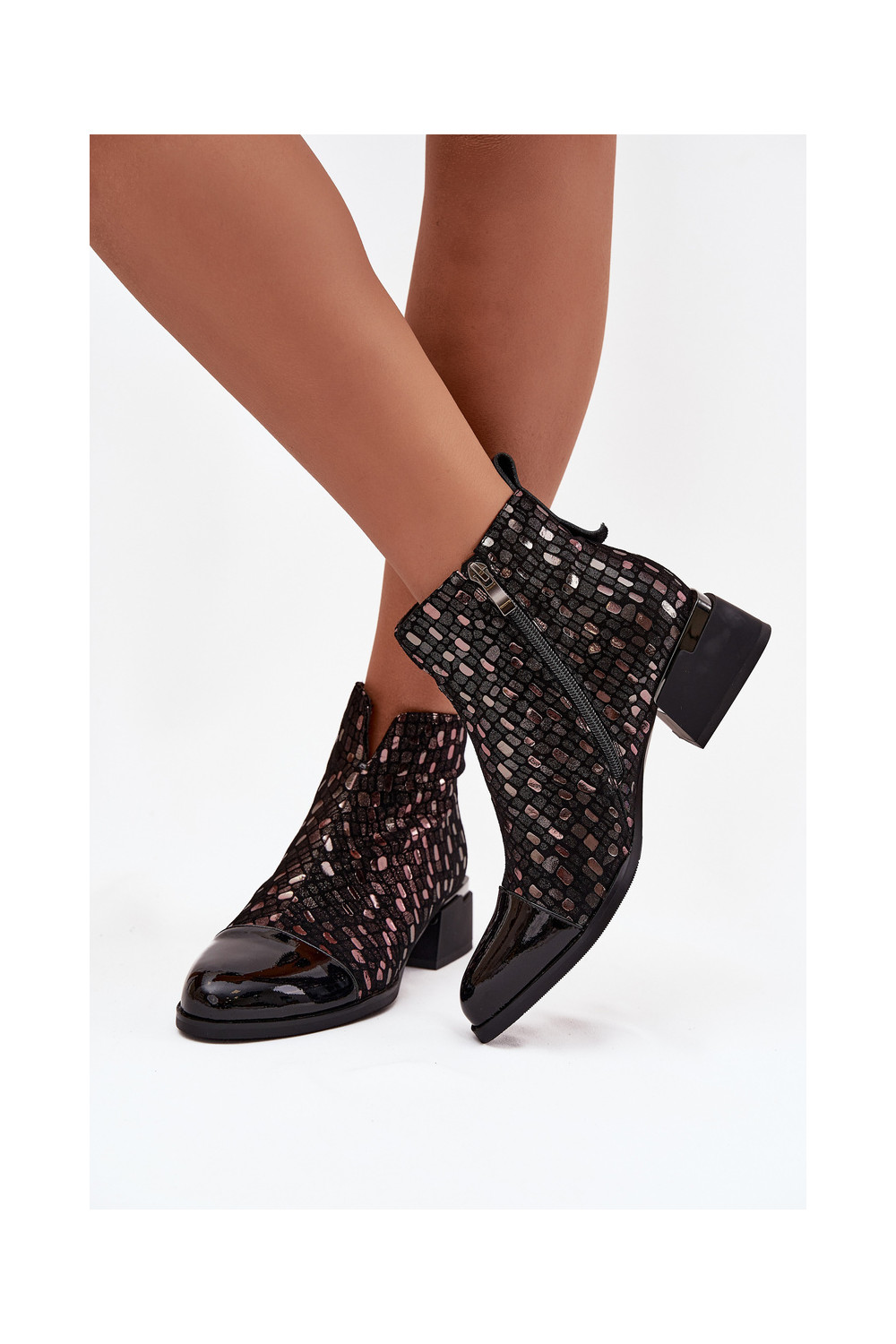Naiste saapad naturaalsetest nahast lakiefektiga madala kontsaga D&A LZ52-960 musta värvi